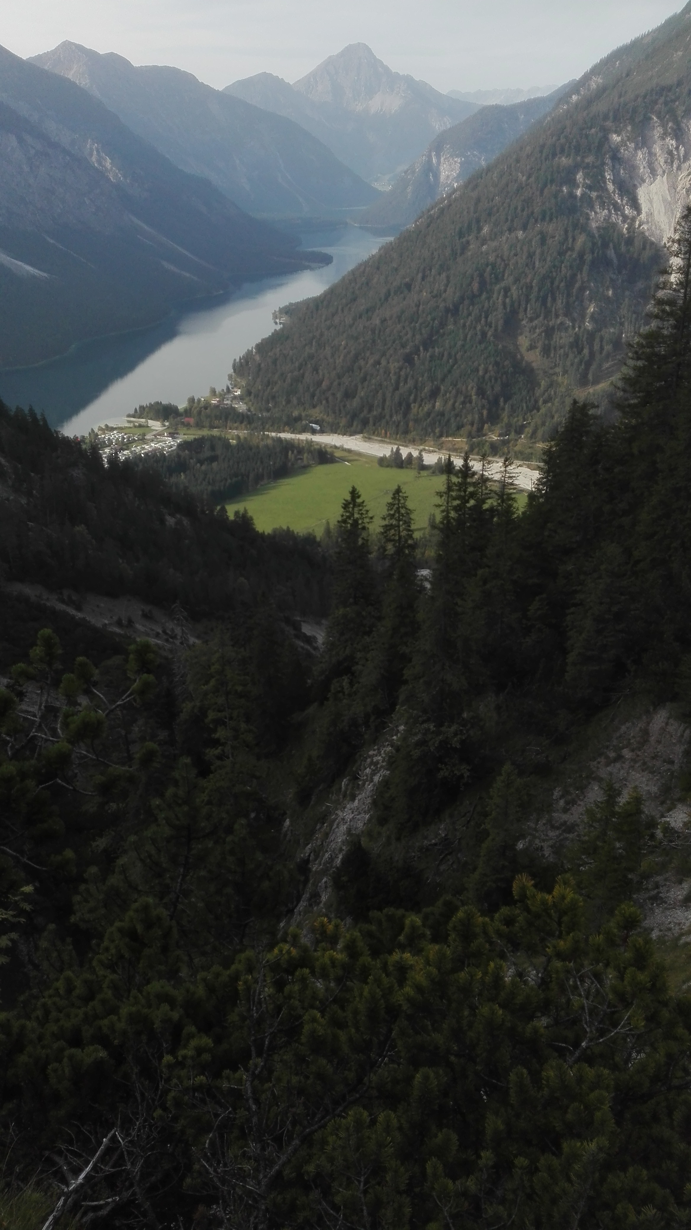 Tourenverhältnisse: Vom P auf markiertem Weg Nr. 243 zunächst steil durch Wald auf die bewaldete Hochfläche des Zwerchenberg, hier etwa 30Hm bergab und zur Zwerchenberghütte auf 1580m. Von dort weiter auf markiertem Steig zum Westgipfel. Einzelne Stellen I. Vom Westgipfel Abstecher über den Grat zum Hauptgipfel und wieder zurück. Auch hier allenfalls einzelne Stellen I, sonst Gehgelände auf fußwegbreitem Grat oder daneben bzw. von der Scharte vor dem Hauptgipfel auf diesen auf teilweise schwachen Steigspuren, aber mit Steinmännchen, durch eine schrofige Flanke hoch. Auf gleichem Weg zurück zum Westgipfel und runter zur Zwerchenberghütte. Am Zwerchenberg dann Abzweig Richtung Schönjöchl (Achtung: Aufpassen, sonst übersieht man den Abzweig!) und nochmals ca. 100Hm auf dieses rauf. Anschließend Abstieg durch Wald, zunächst noch relativ flach, dann wieder durch sehr steiles Gelände, immer auf kleinem, markierten Pfad zum östlichen Ende des Plansee. Von dort auf Forststraße den See entlang ca. 15 Minuten zum P zurück.