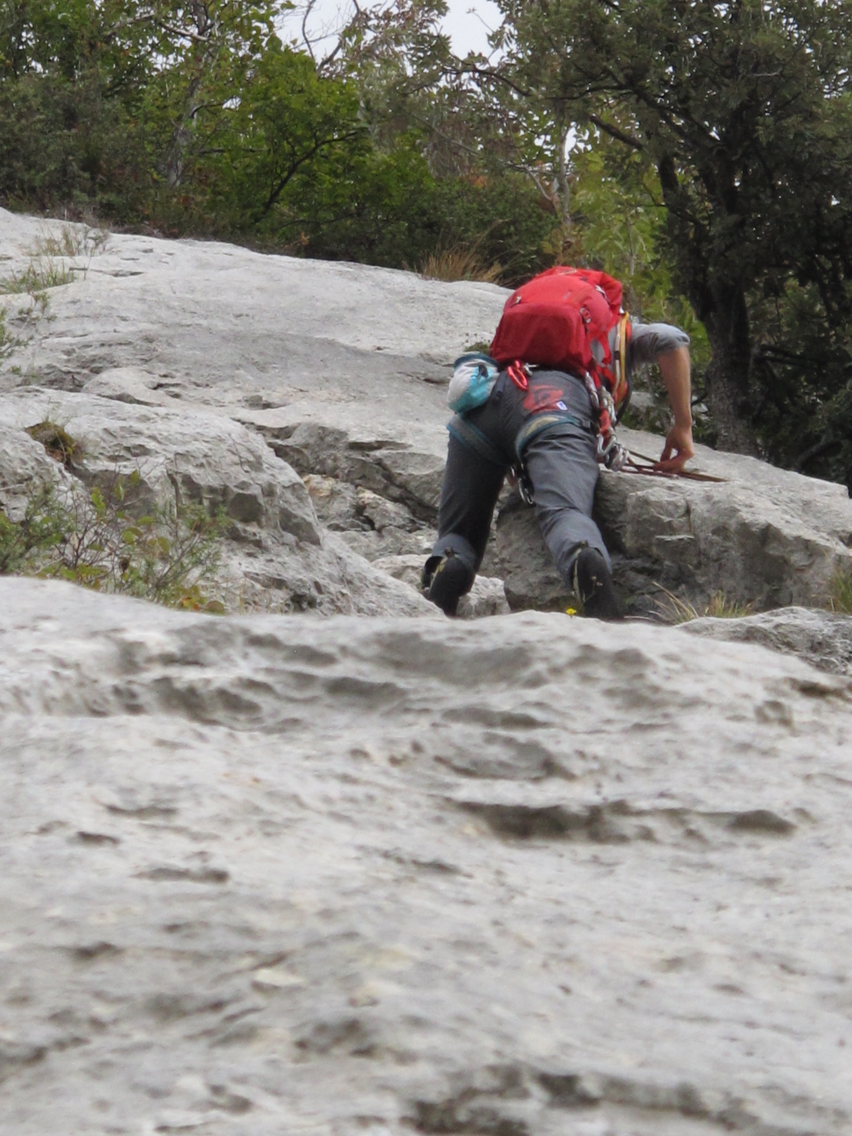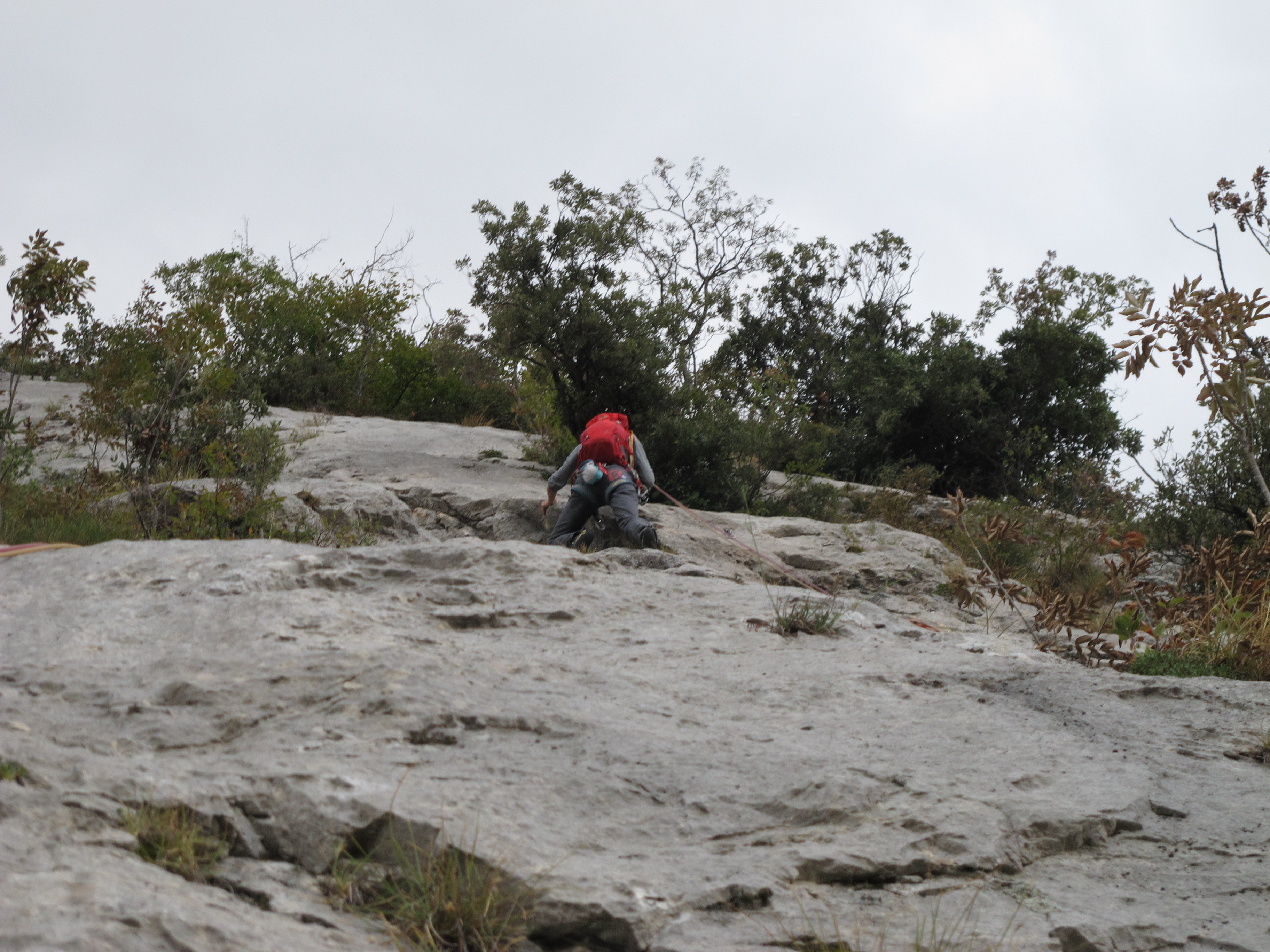 Die Tour trifft in der vorletzten Seillänge auf die "Cane Trippa" und geht eine Seillänge gemeinsam mit dieser. In diesem Bereich viele Sanduhrmöglichkeiten, aber weitere Hakenabstände.(ab vorletztem Stand)