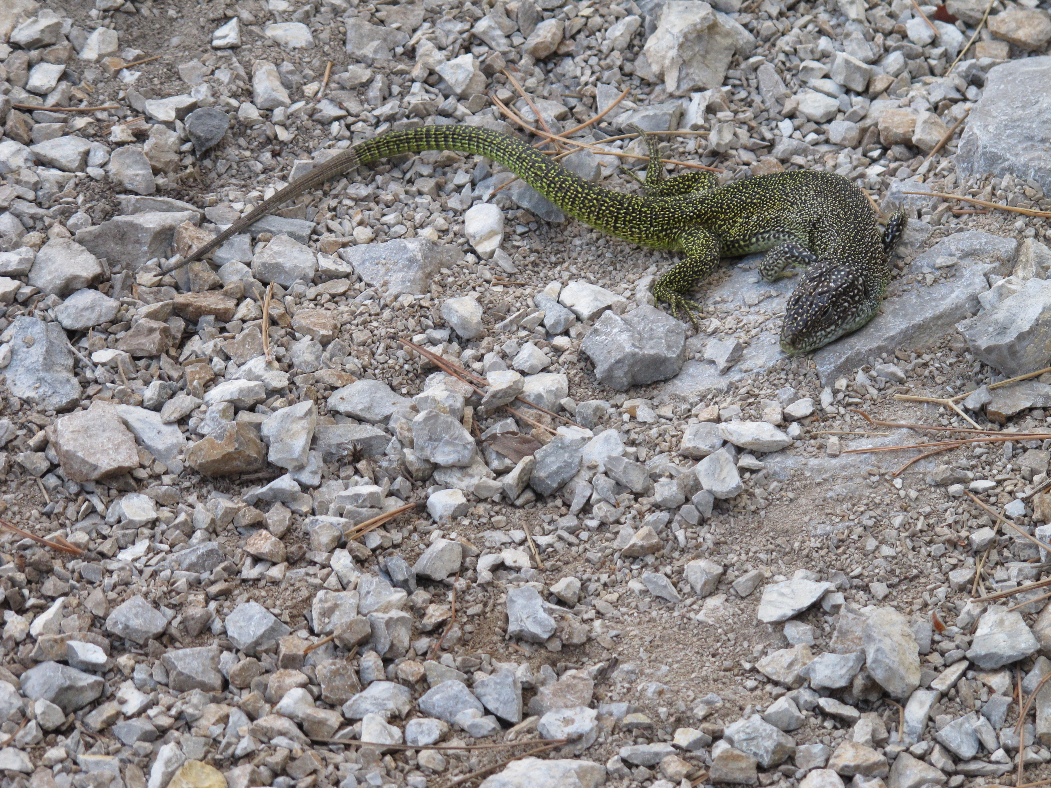 Bilder / GPS-Track: diese Eidechse habe ich im Abstieg fotografiert. es dürfte sich um eine "Östliche Smaragdeidechse" handeln.