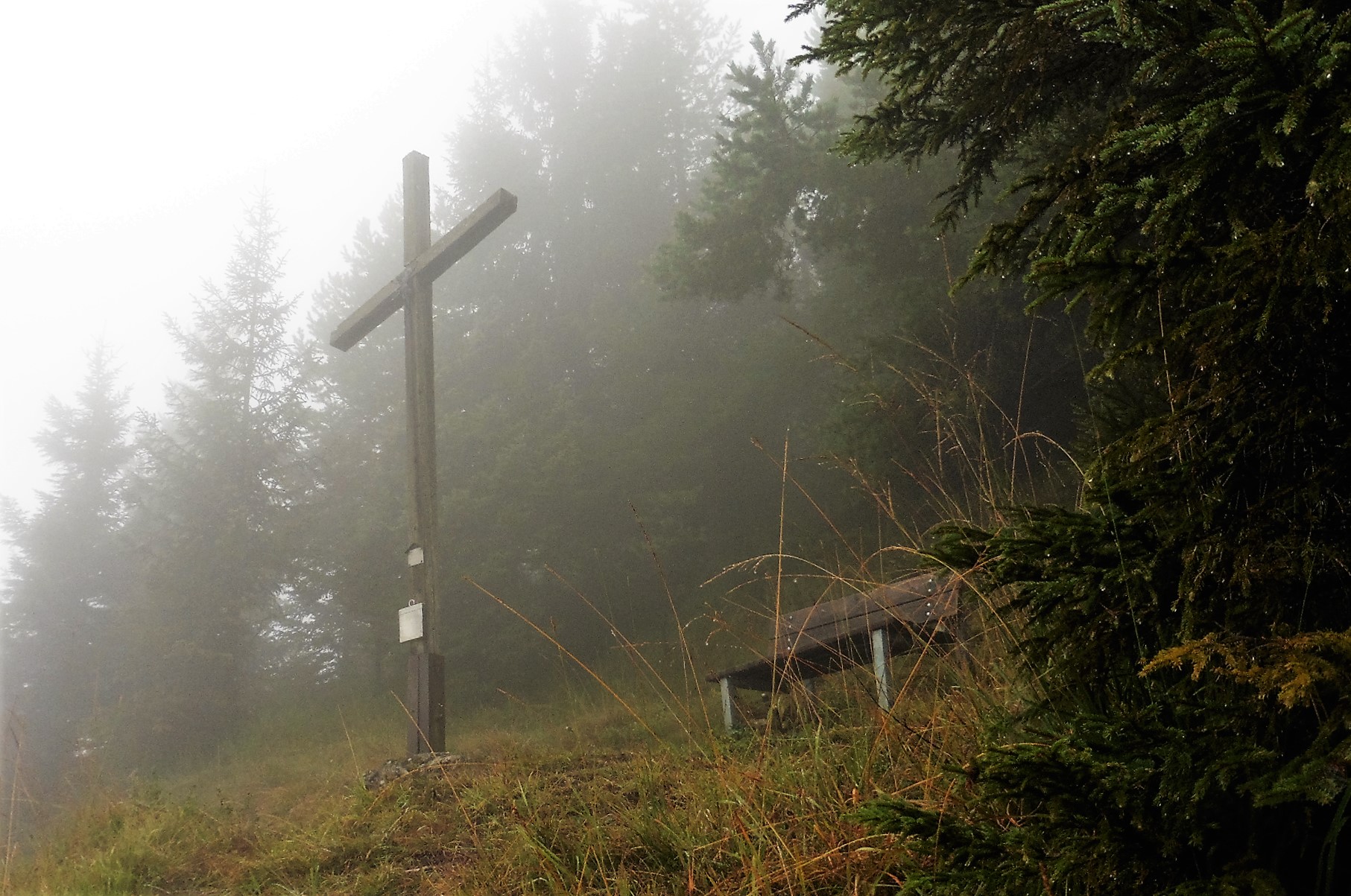 zu Bild 1: der Pfrontner Berg (erst gegen Mittag lichtete sich zögerlich der Nebel;