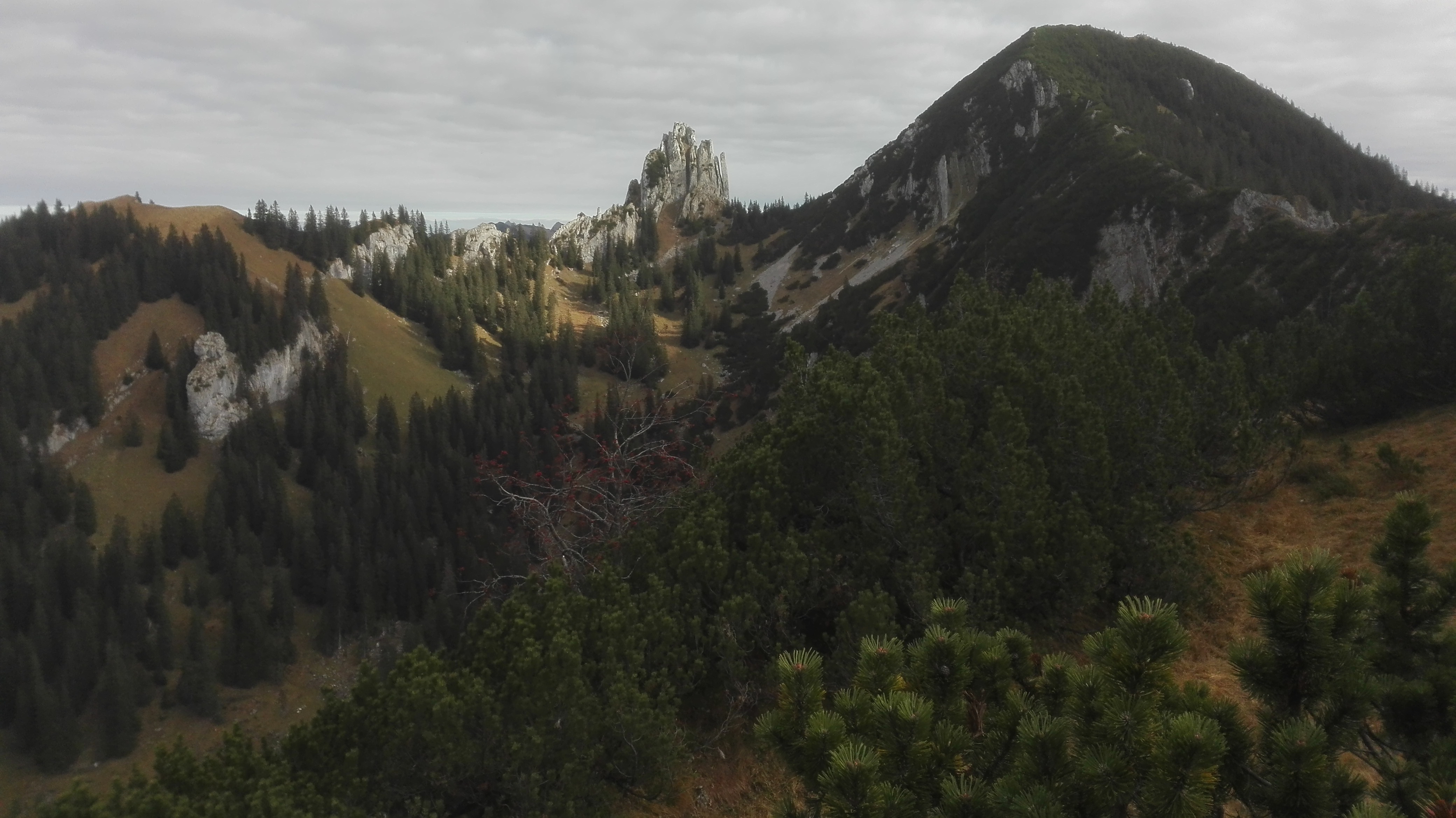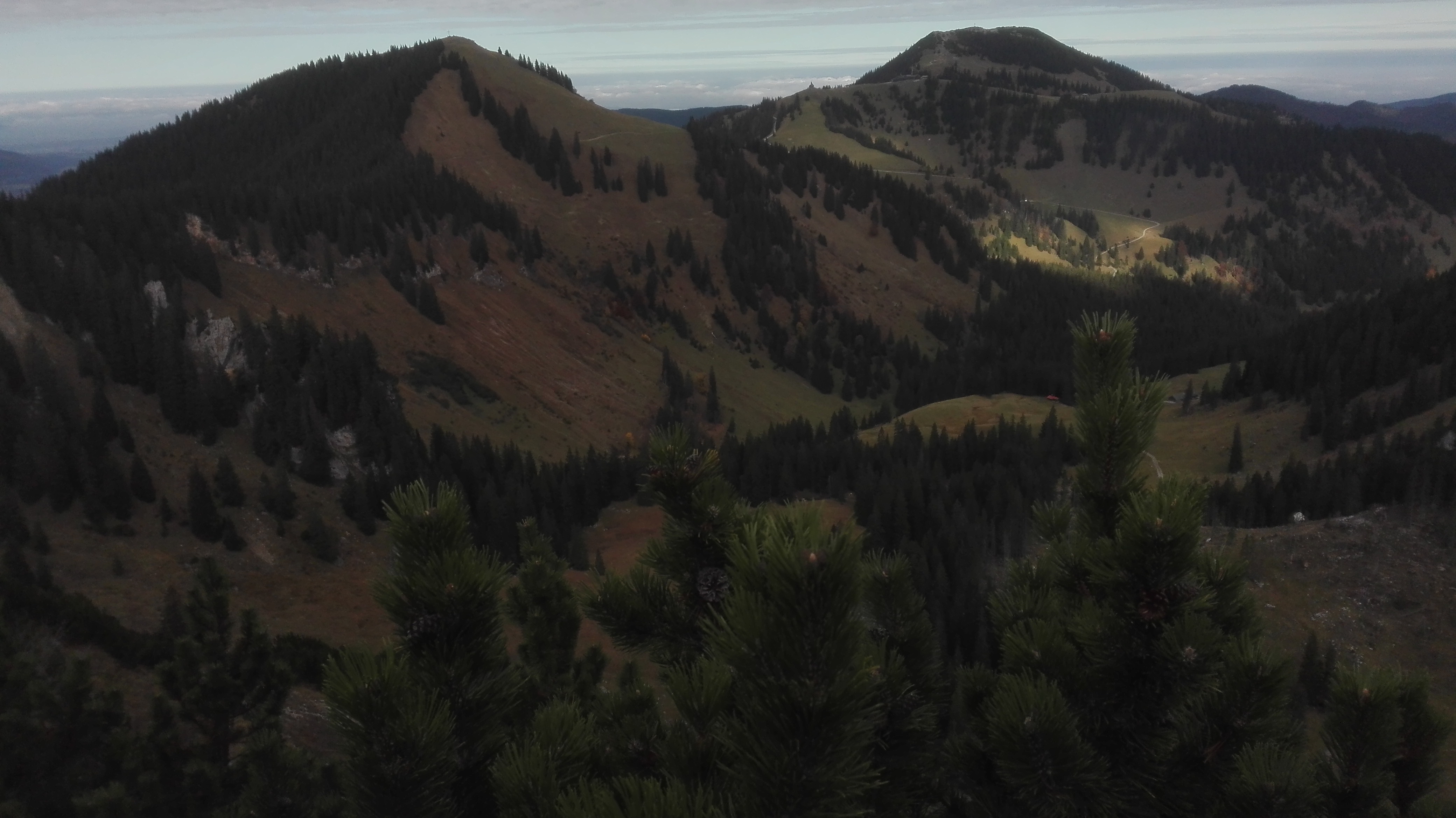 Tourenverhältnisse: Aufstieg über die Ableitenalm zum Westgrat und über diesen zum Gipfel. Abstieg über den Südgrat zur Rißalm (verfallen) und wieder zurück zur Ableiten- und Schwaigeralm. Beste Verhältnisse, alles trocken, Sonne erst am Nachmittag, vorher bedeckt.