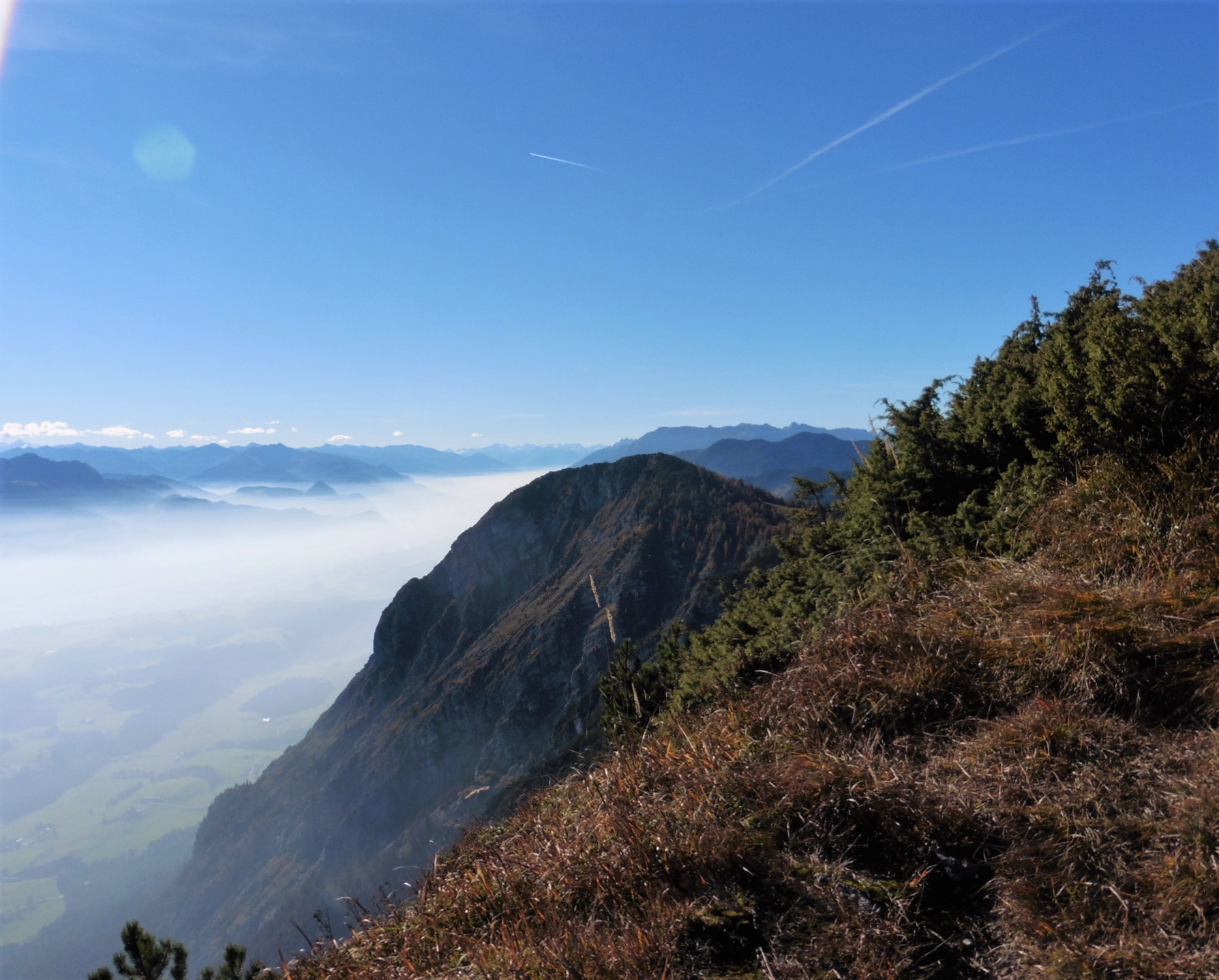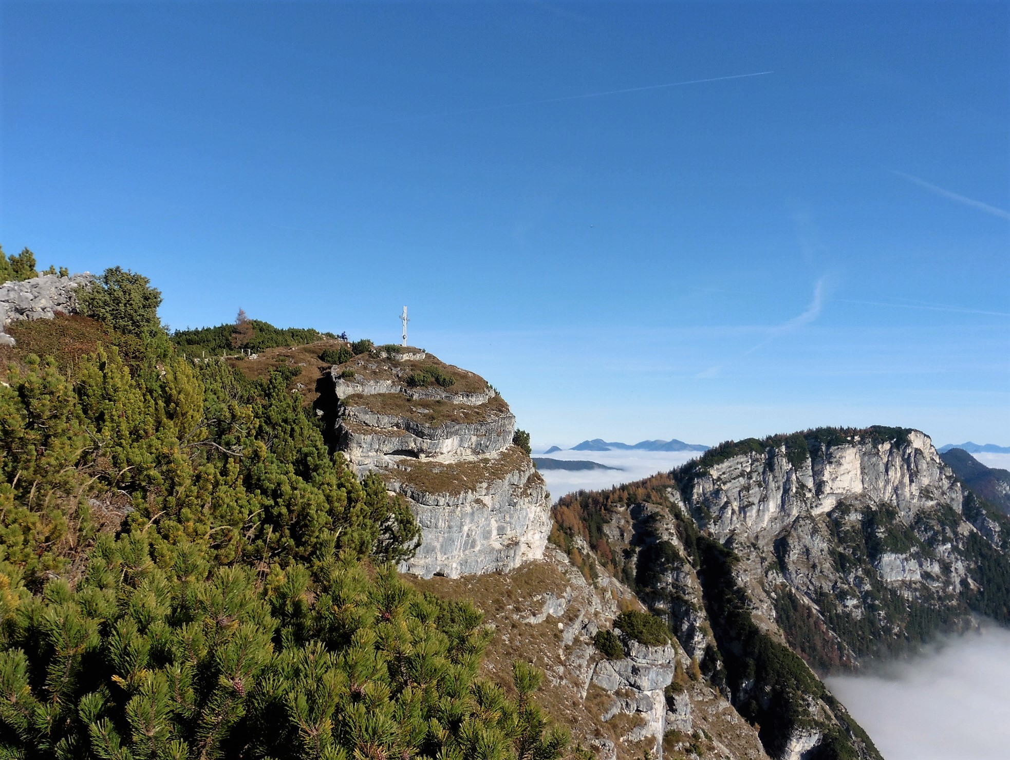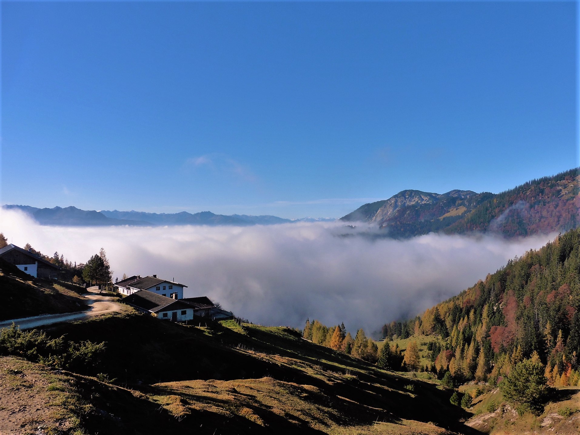Fazit: abgesehen von den Forststraßen - eine traumhafte Tour hoch über den nebelverhangenen Tälern; alle Hütten sind geschlossen;