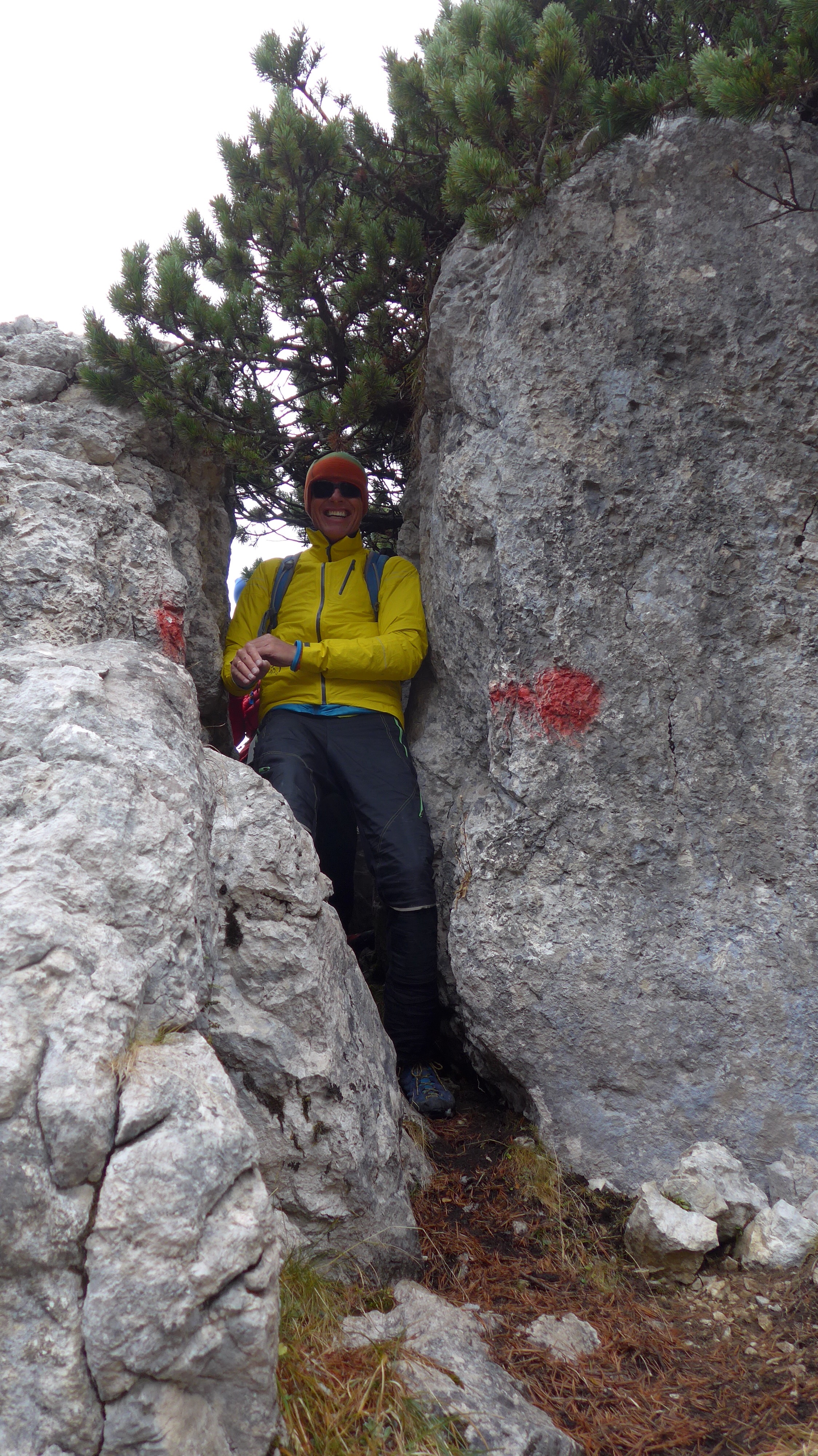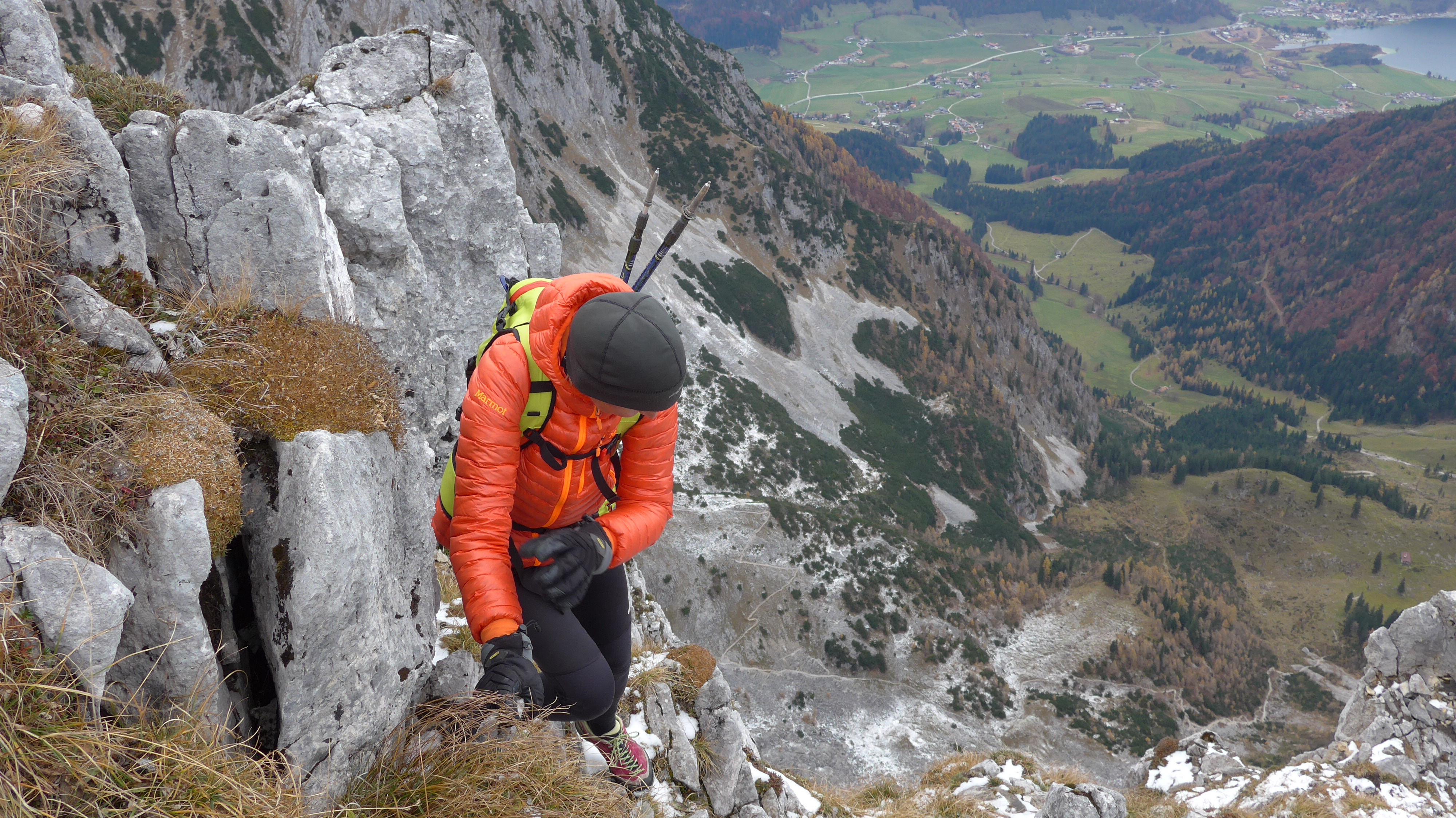 Gefahreneinschätzung: Steinschlag + Absturzgefahr. Absolute Schwindelfreiheit + Trittsicherheit erforderlich im luftigen Gelände . Guter Orientierungssinn gefragt. Bei Nässe und Schnee NICHT.