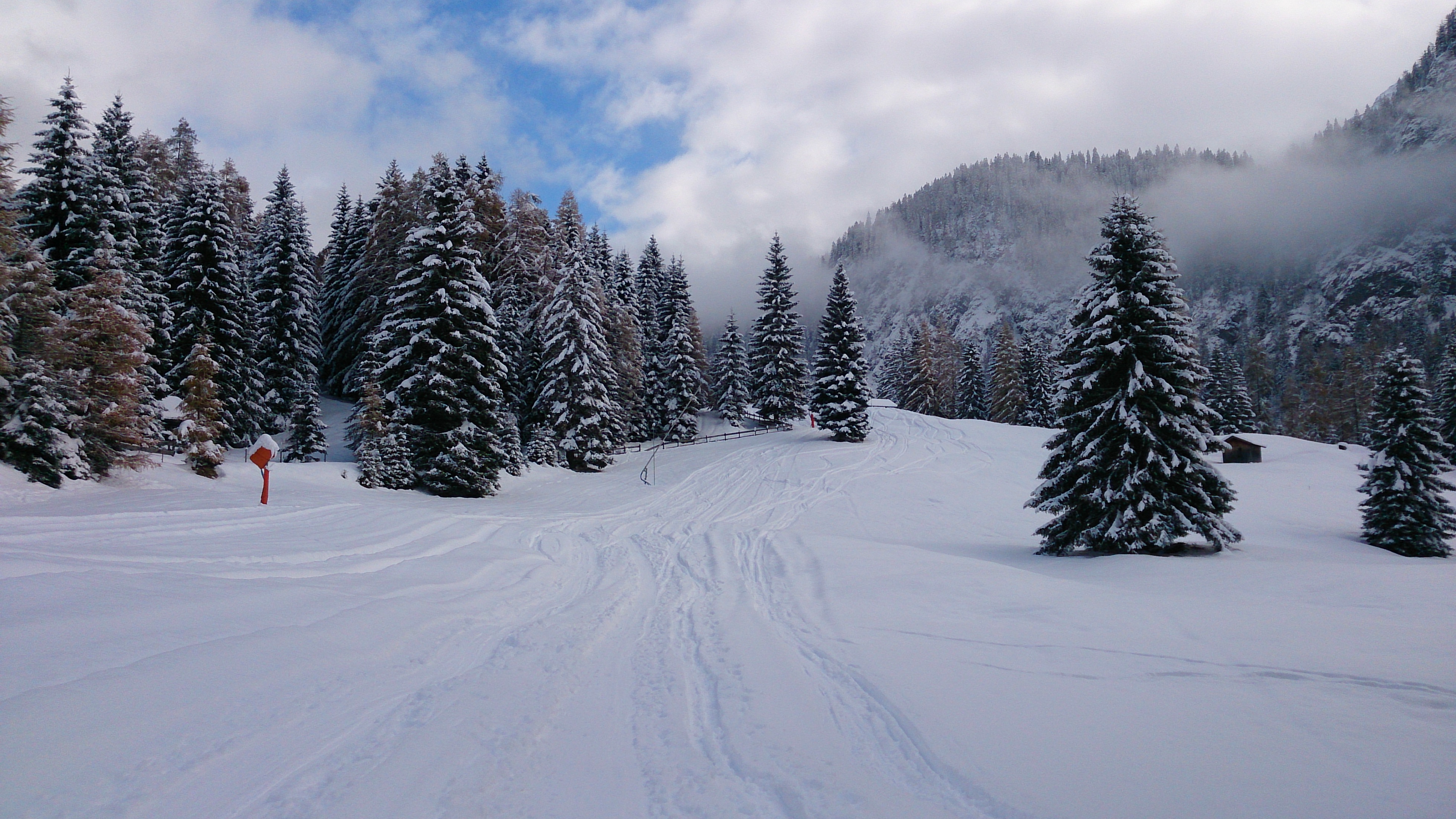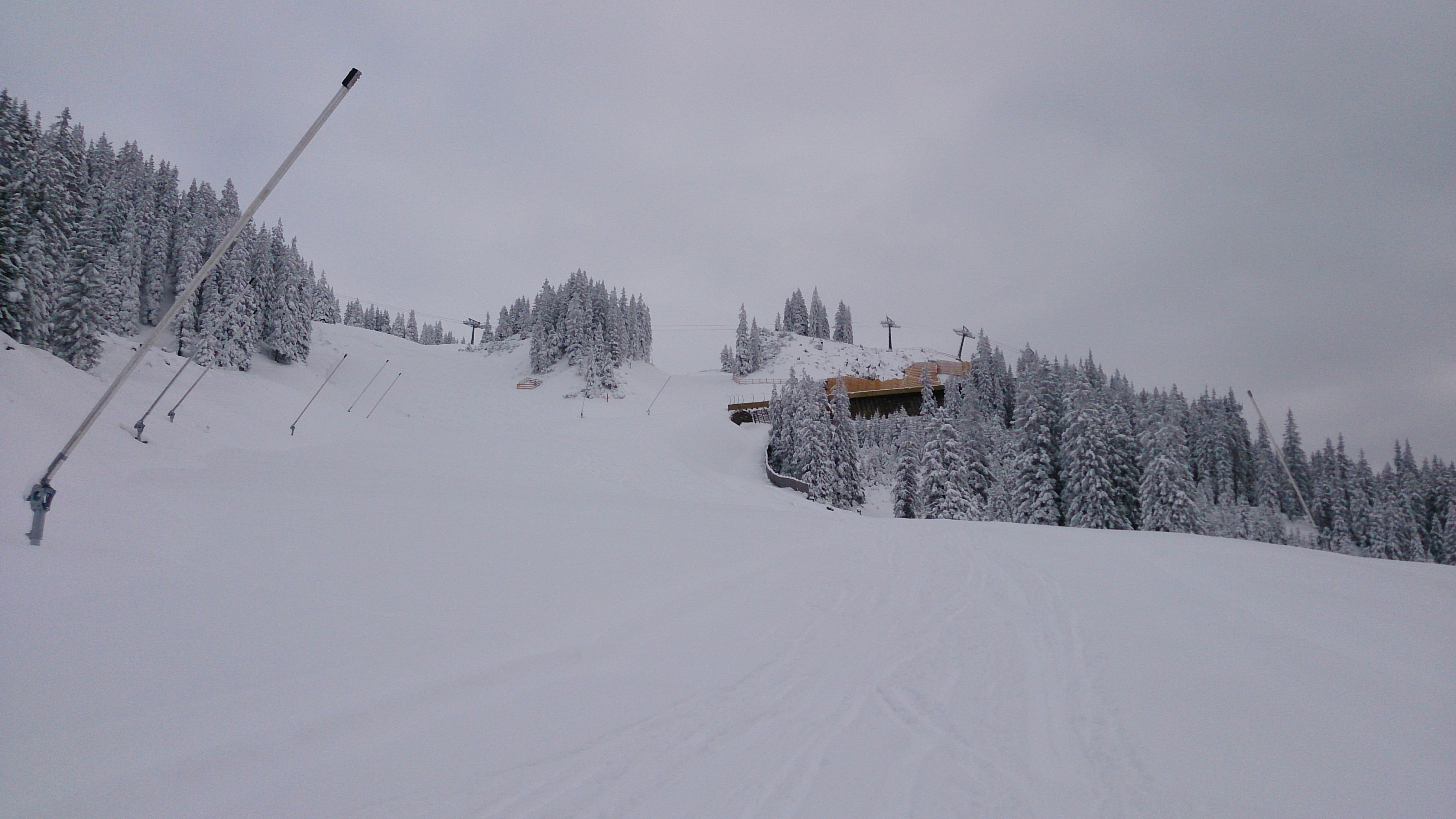 Prognose: bis zur angekündigten Erwärmung sollte es schon noch gehen; wahrscheinlich zunehmend Beschneiung und dann Schneekanonen-Bruchharsch / -Eis - aber vielleicht überdauert es dann auch etwaige Erwärmung