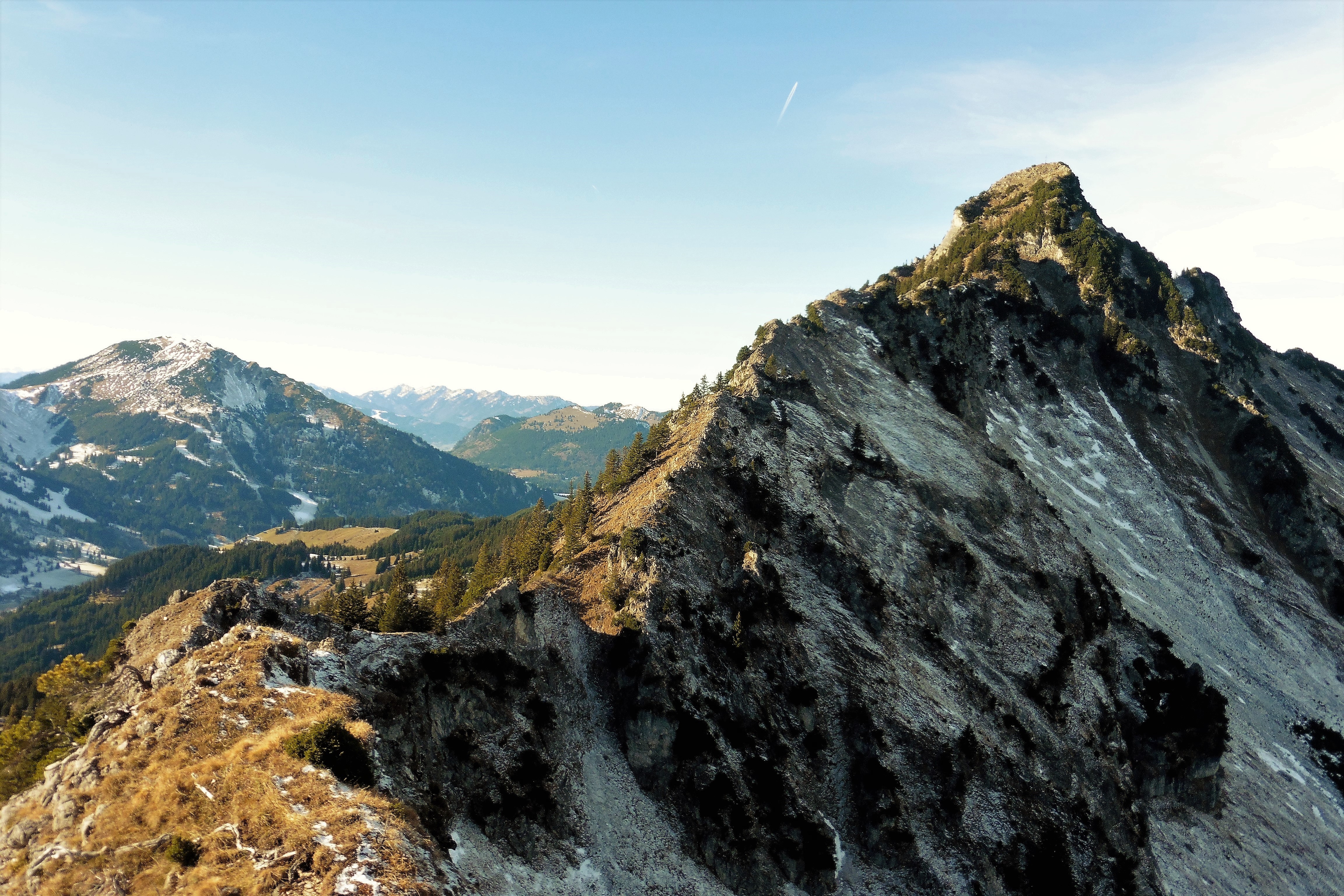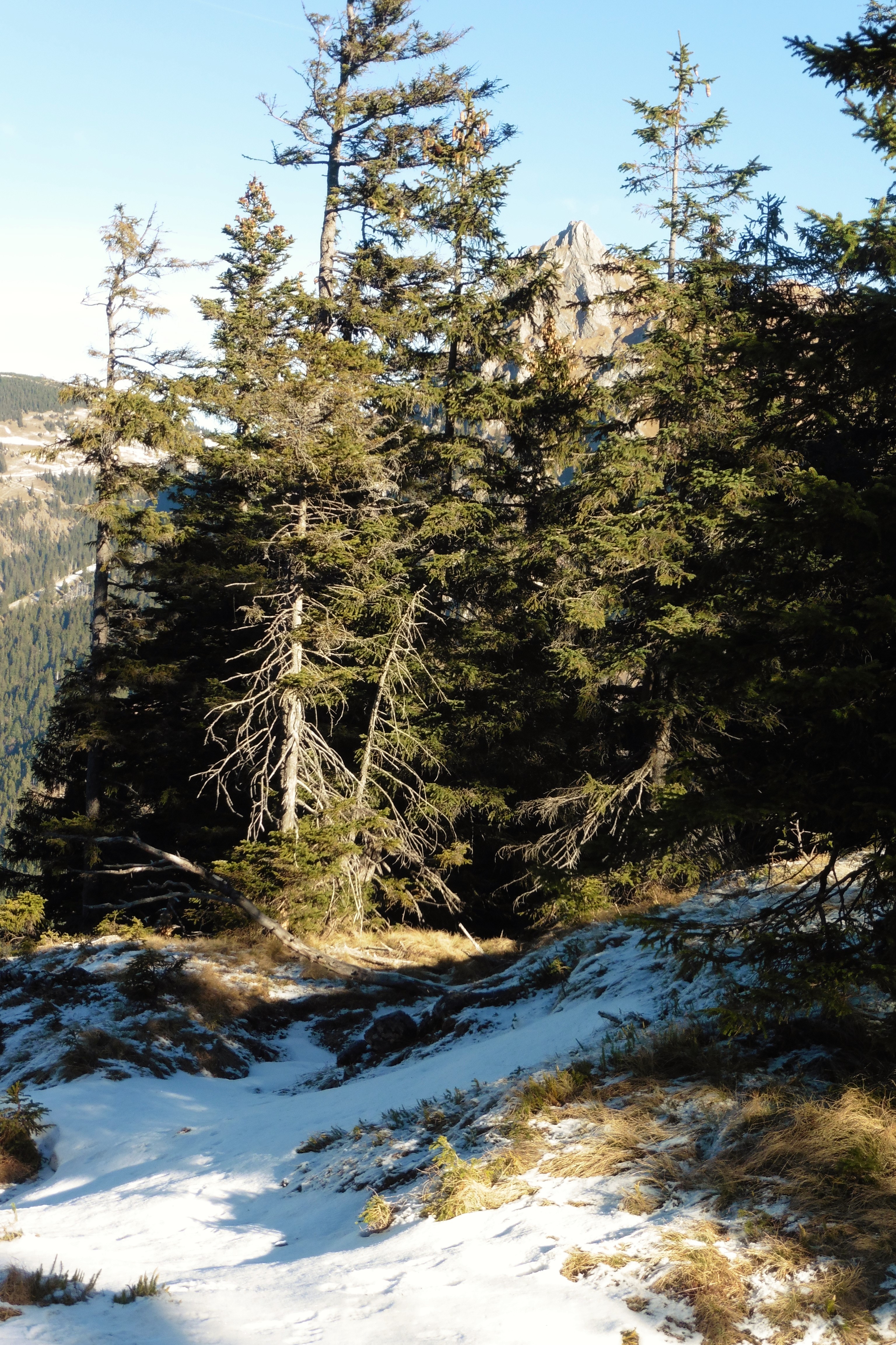 Tourenverhältnisse: günstig, da alles trocken; am Grat ein Hauch von Schnee, der aber nicht stört; ca. 900 Hm;