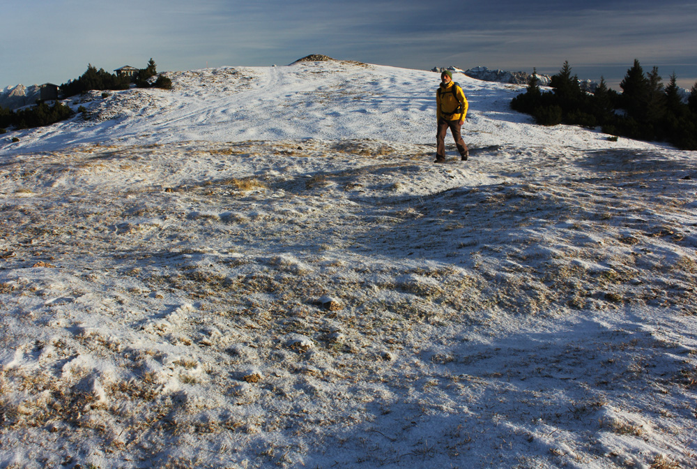 Tourenverhältnisse: Im Waldanstieg in schattigen Passagen dünne Schneeauflage. Am langen Gipfelrücken dann teils dünne Schneebedeckung, teils aper.