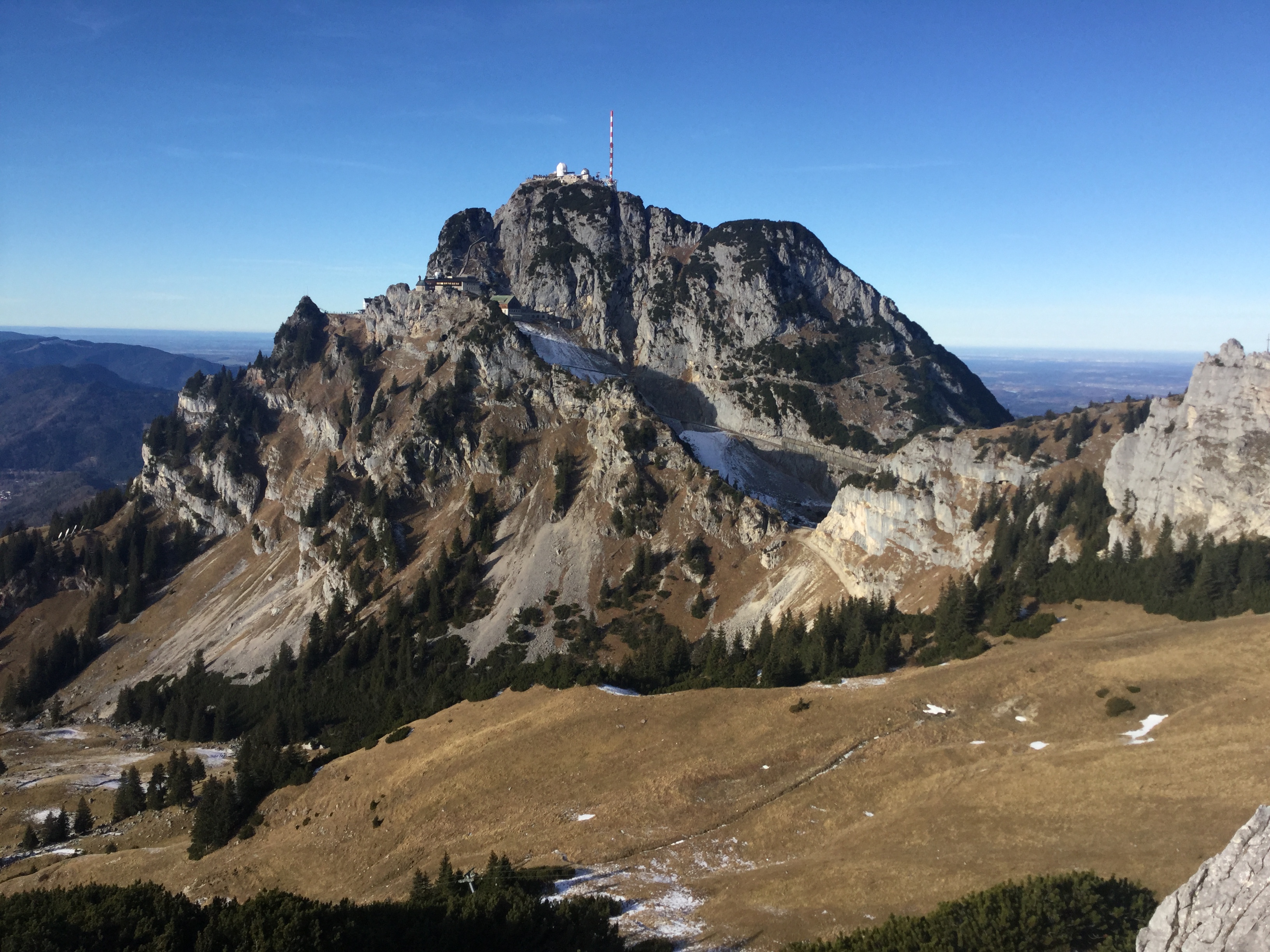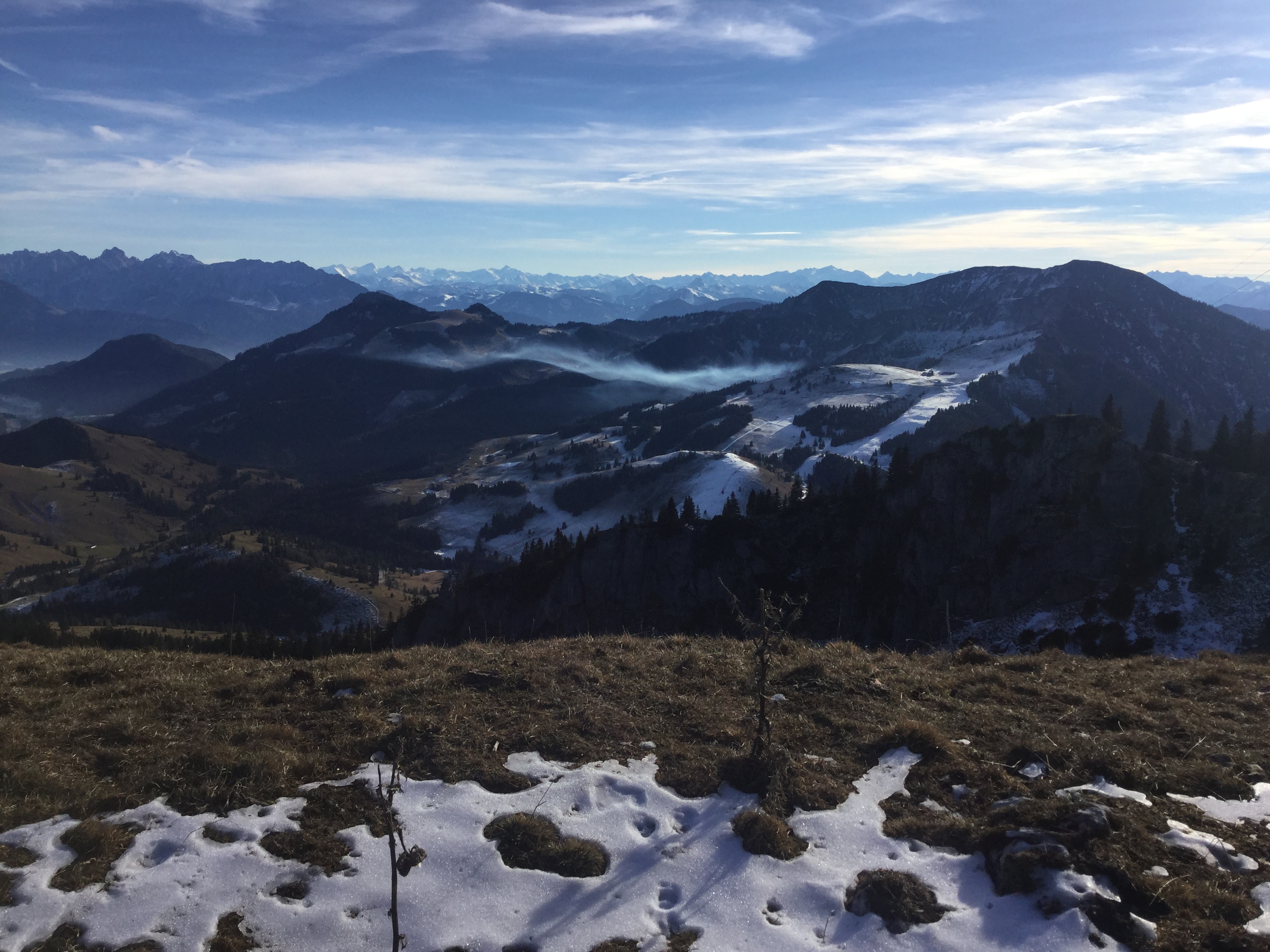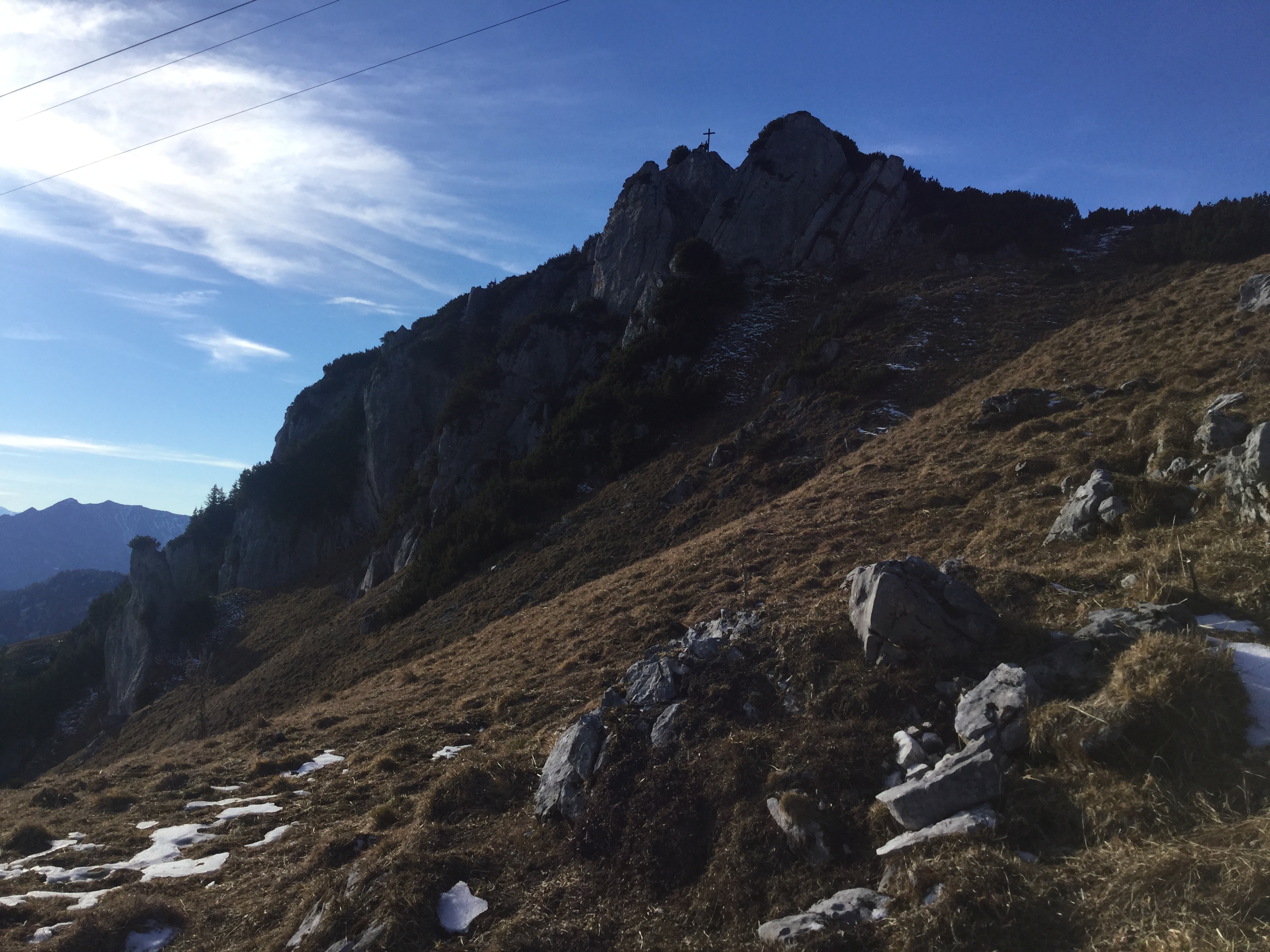 zum Gipfel. Oben Inversionslage. Gipfel kalter Wind.