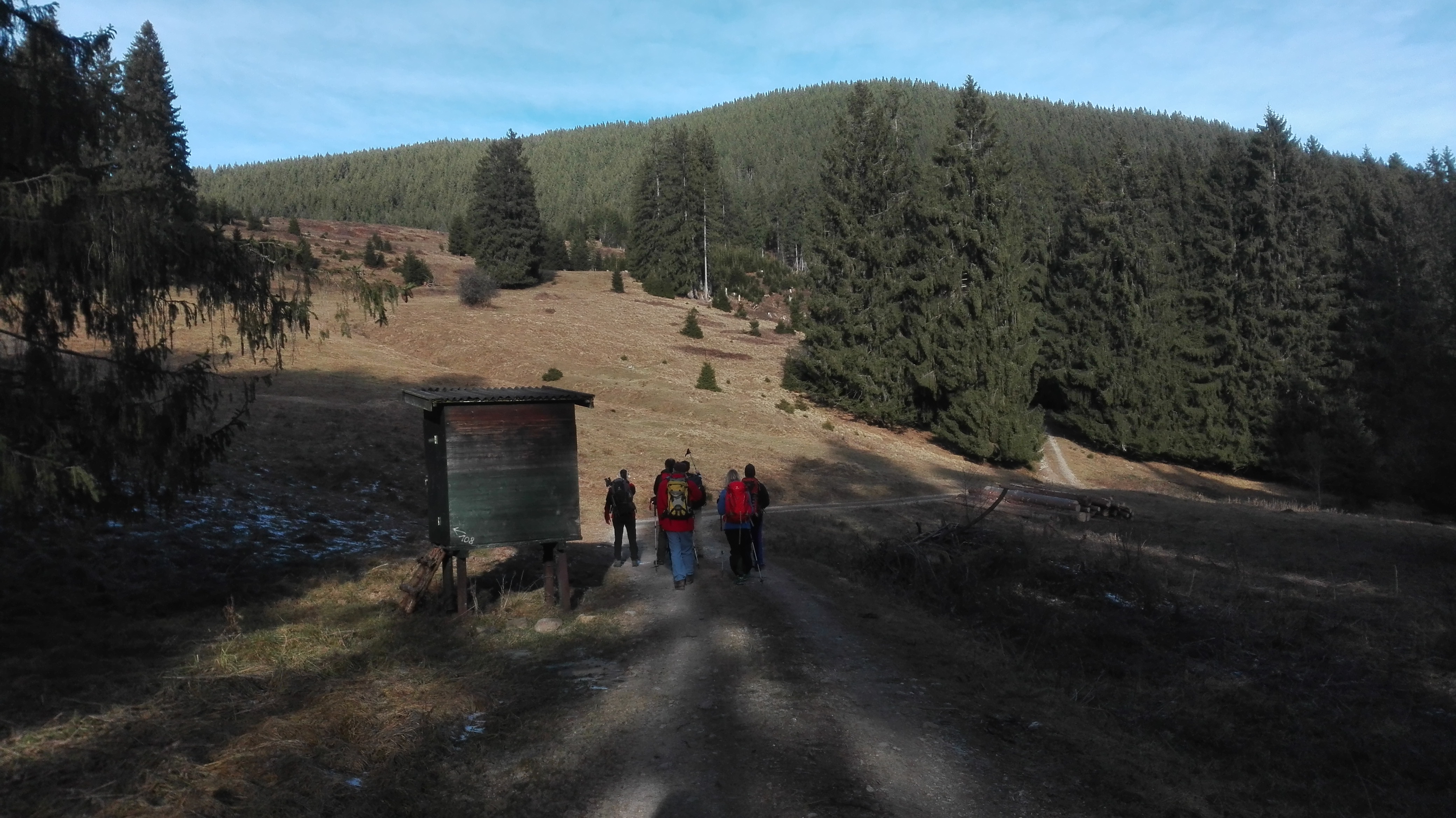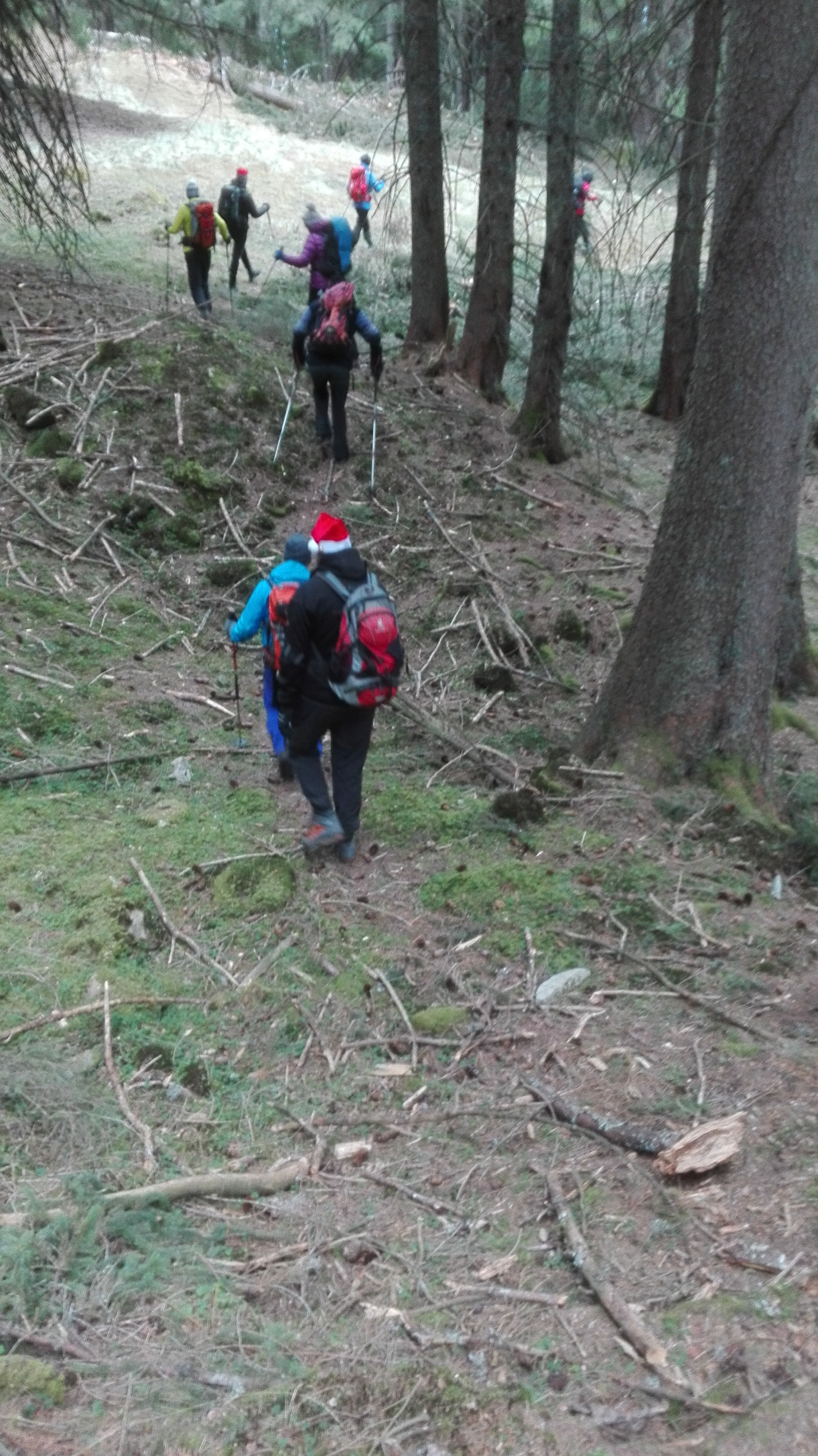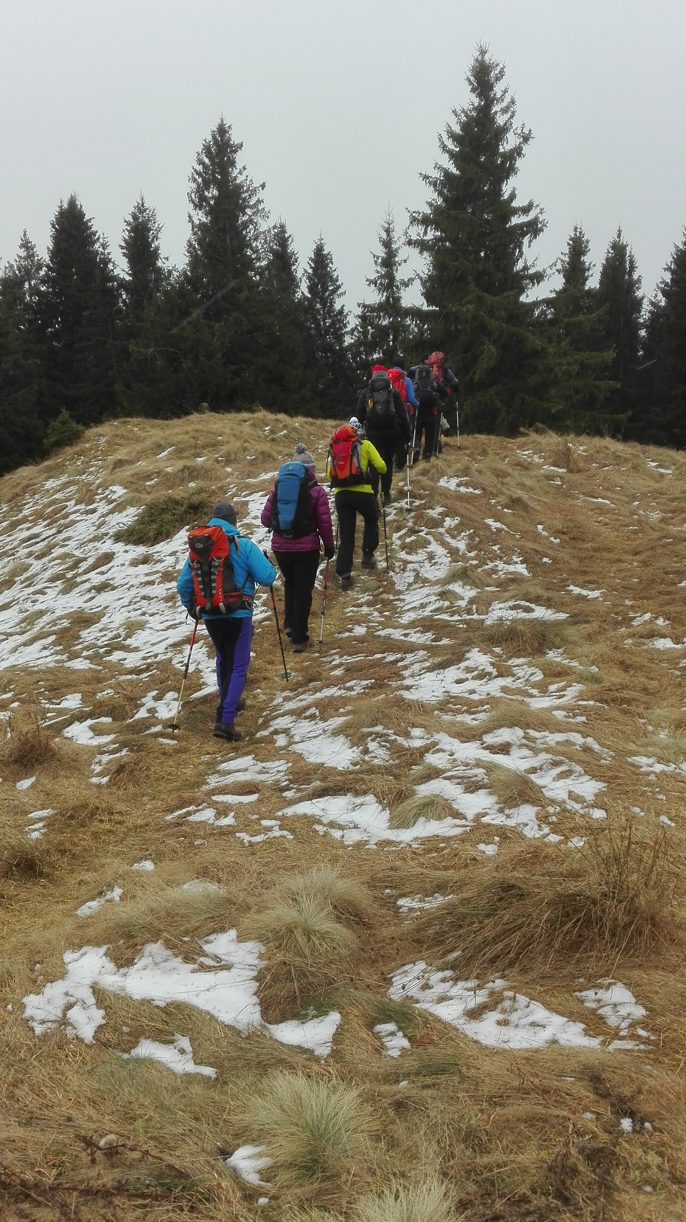 Vormittags sonnig, gegen Mittag zog es zu, es fielen tatsächlich ein paar Schneeflocken und Wind kam auf. Am Gipfel ist es aber windgeschützt, da die Bäume rundherum alle höher sind, daher auch nur sehr eingeschränkte Aussicht. Nachmittags nochmals besser.
