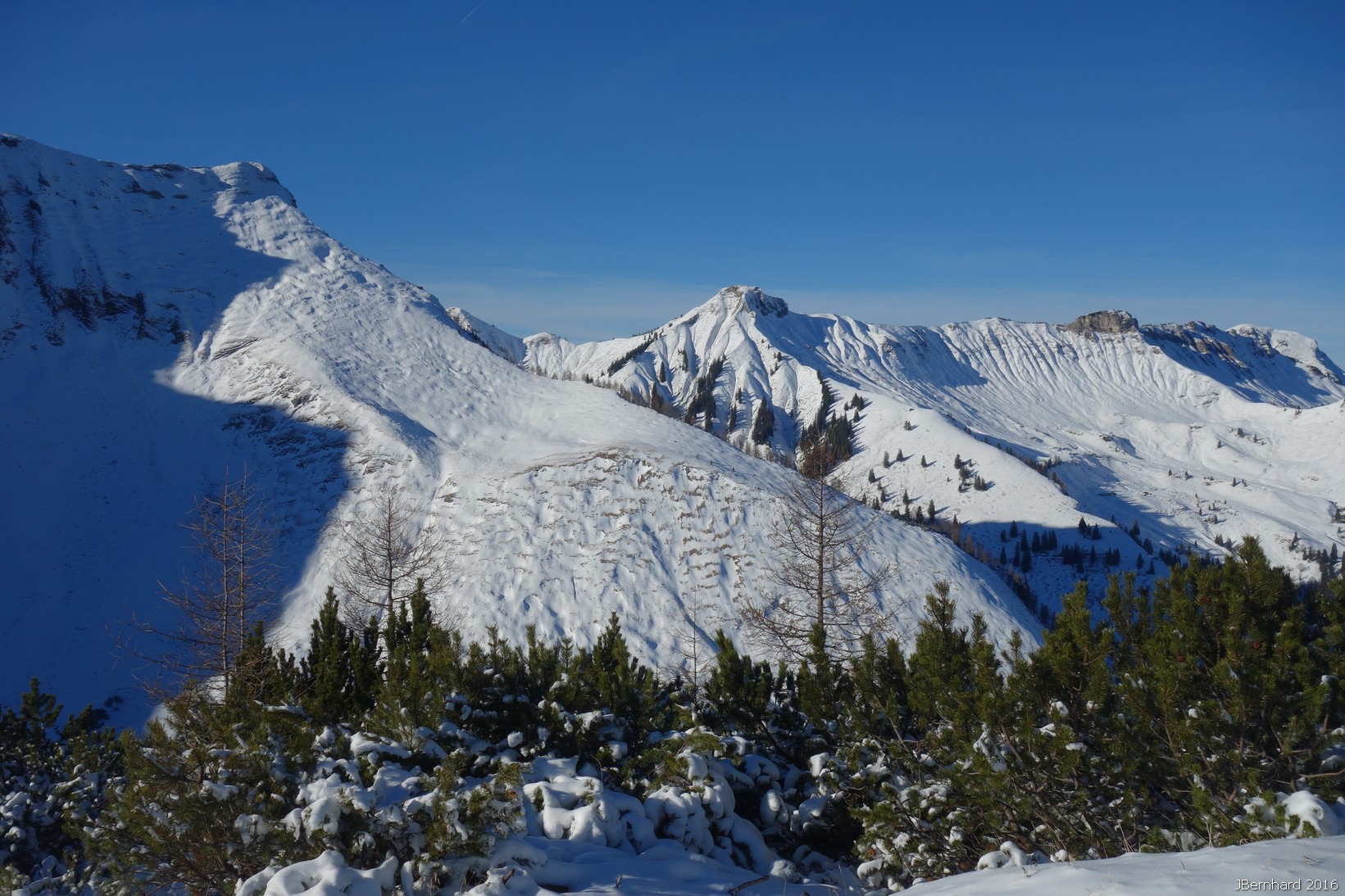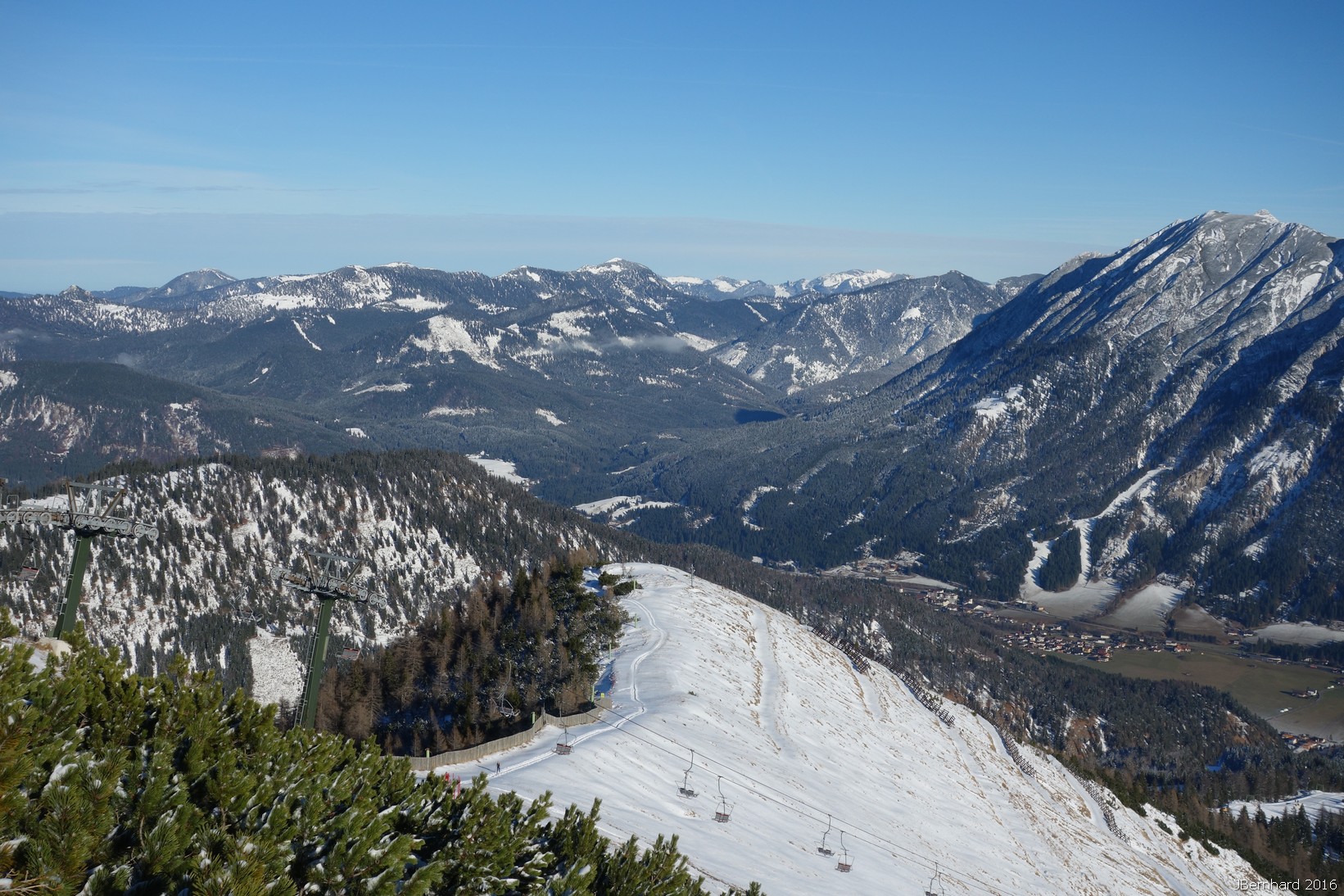 Trotz der sehr dürftigen Schneelage eine lohnende Tour mit Abfahrt auf der sehr gut präparierten Piste.