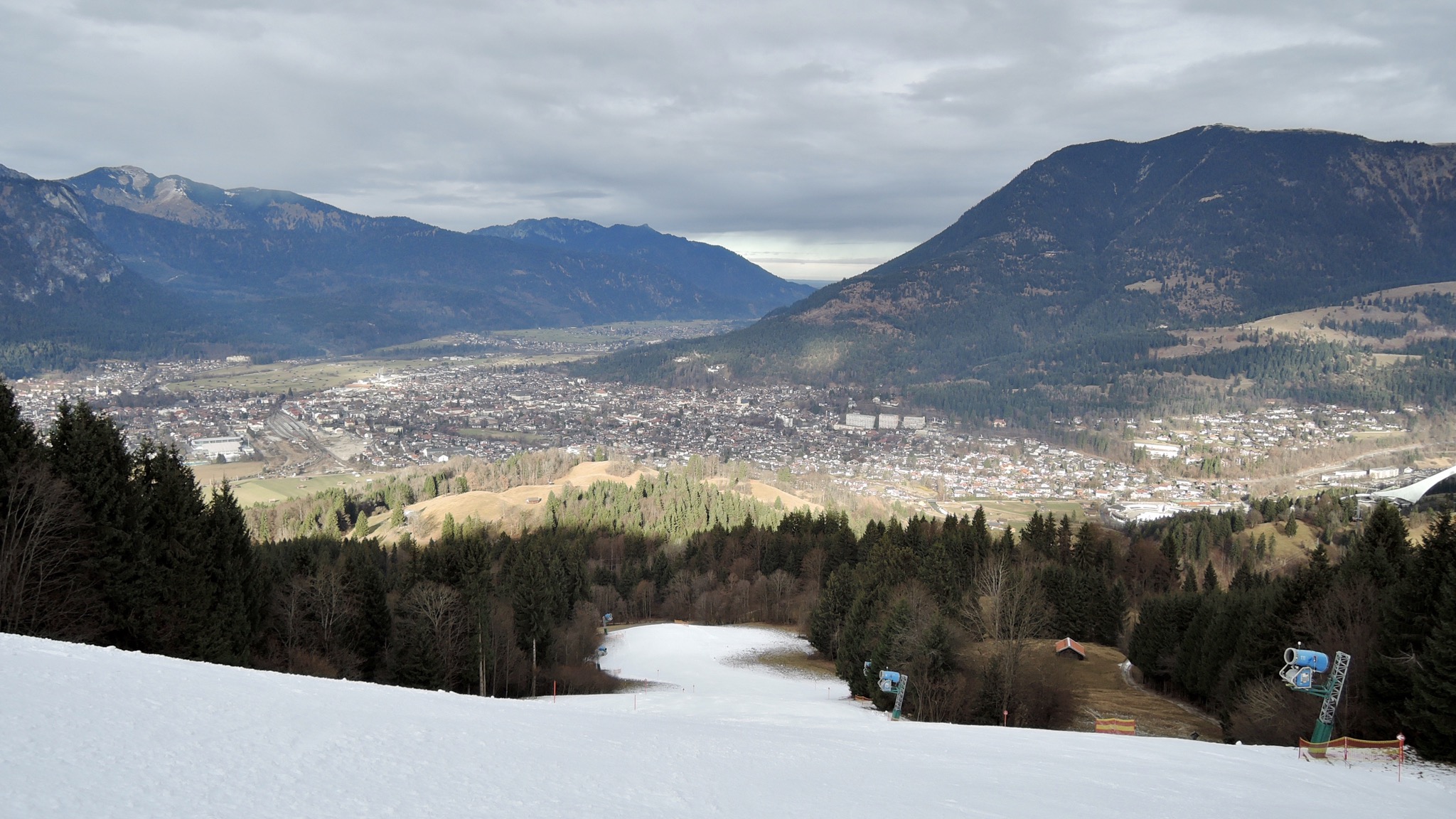 Runter über Kreuzjoch-Hexenkessel, mittleren Skiweg und Kochelberg-Abfahrt.