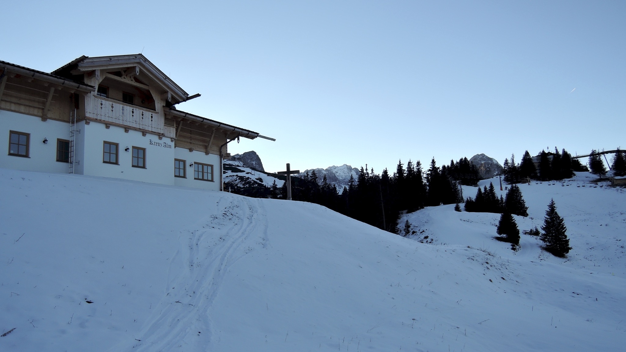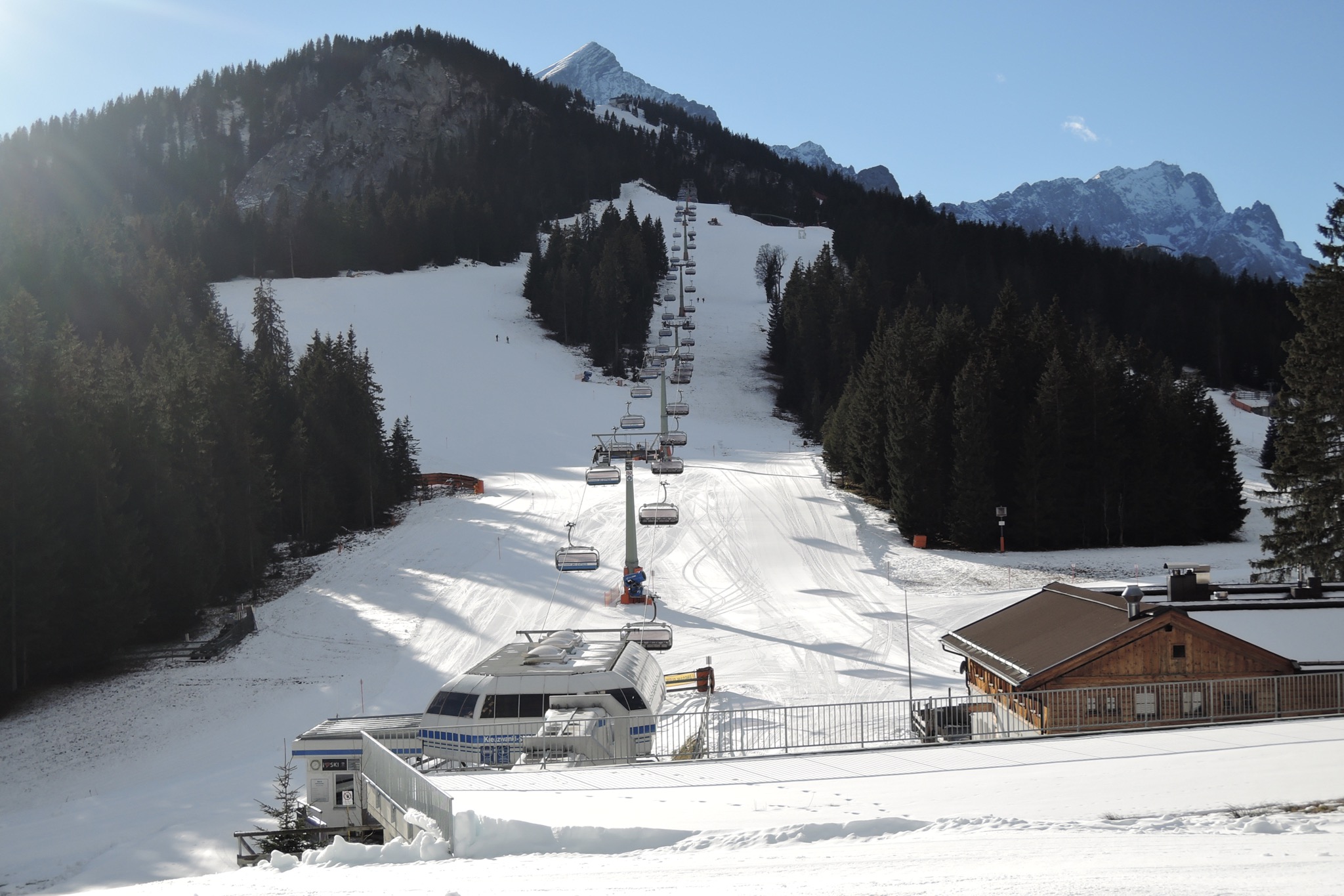 Sonstiges: Vom PP Hausbergbahn (710m) Richtung Horn-Abfahrt und dann weiter über die Kochelberg-Abfahrt auf den Hausberg und weiter Richtung SW zur Kreuzwankel-Bergstation. Weiter auf dem oberen Skiweg Richtung SW bis zum Kandahar-Express und nun Richtung SSO steil nach oben bis zum Kandahar-Starthaus (1690m).
