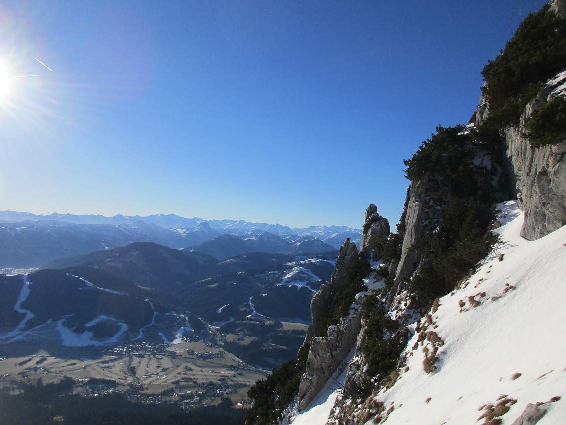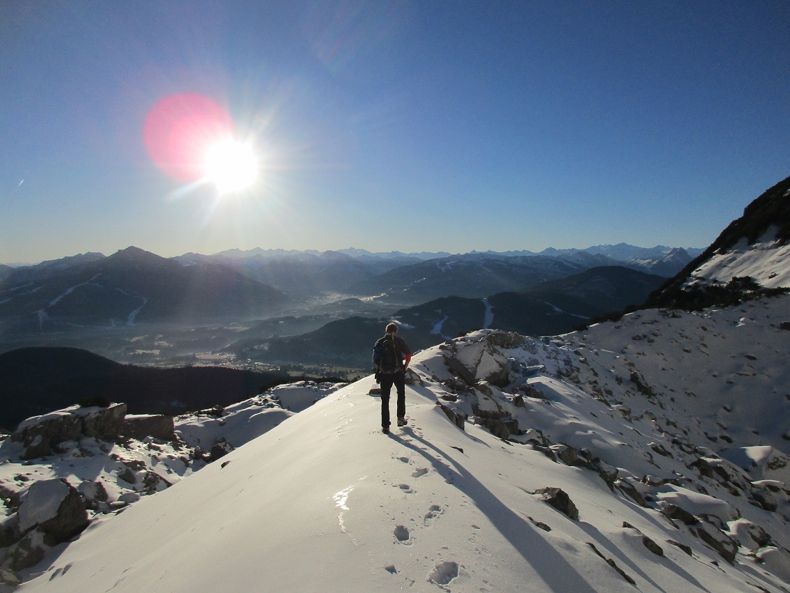 Tourenverhältnisse: Bis knapp 1500 m meist schneefrei aber stellenweise vereist. Danach fast durchgehend mit Schneeauflage. Felsen nur teilweise frei. Meist guter Trittschnee. Angenehme Temperaturen - kein Wind. Allein auf der Runde.