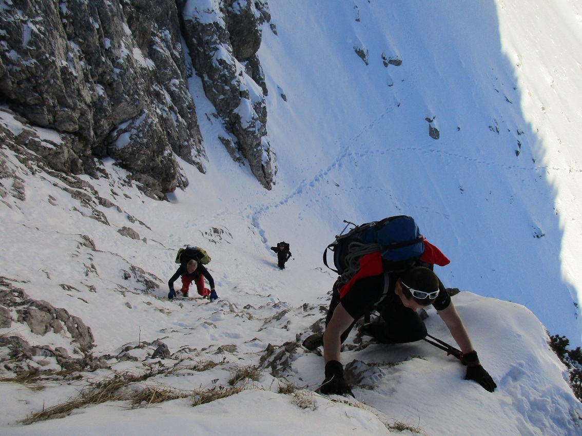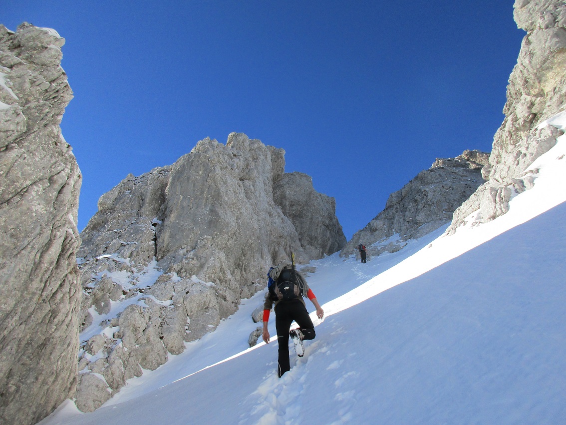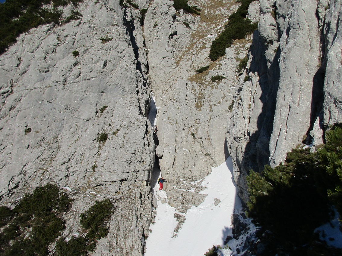 Gefahreneinschätzung: Nicht ganz problemlos aber bei umsichtiger Steigerei noch gut machbar. Pickel + Steigeisen wurden nicht gebraucht