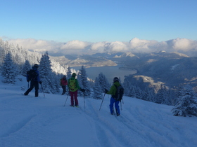 Tourenverhältnisse: - 15° C. Sonnig. Kaum Wind. 40 cm Pulver unten, oben wird´s mehr davon.