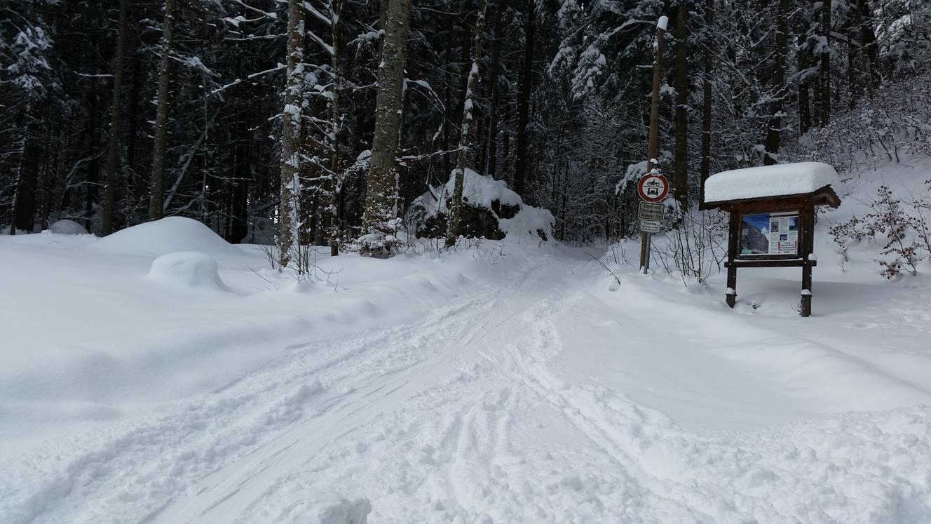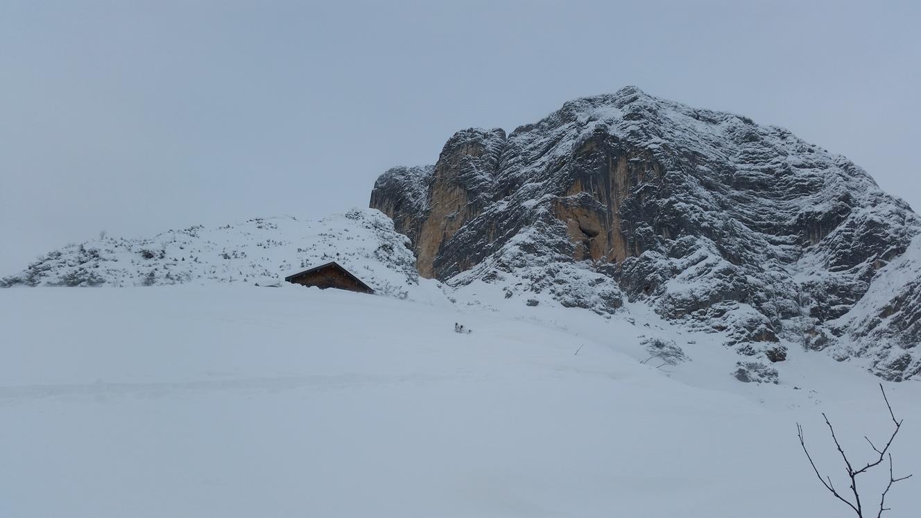 Video: Der Skianstieg zum Scheibenkaser verläuft im Wesentlichen über den Sommerweg (Roßlandersteig, Weg Nr. 466). Man hält sich an den Forstweg, teilweise kann im Wald abgekürzt werden, dann auf dem schmalen Wanderweg bis unterhalb der Jagdhütte. Dort links ansteigen, später aus dem Wald heraus und über einen mittelsteilen Hang zum Scheibenkaser.