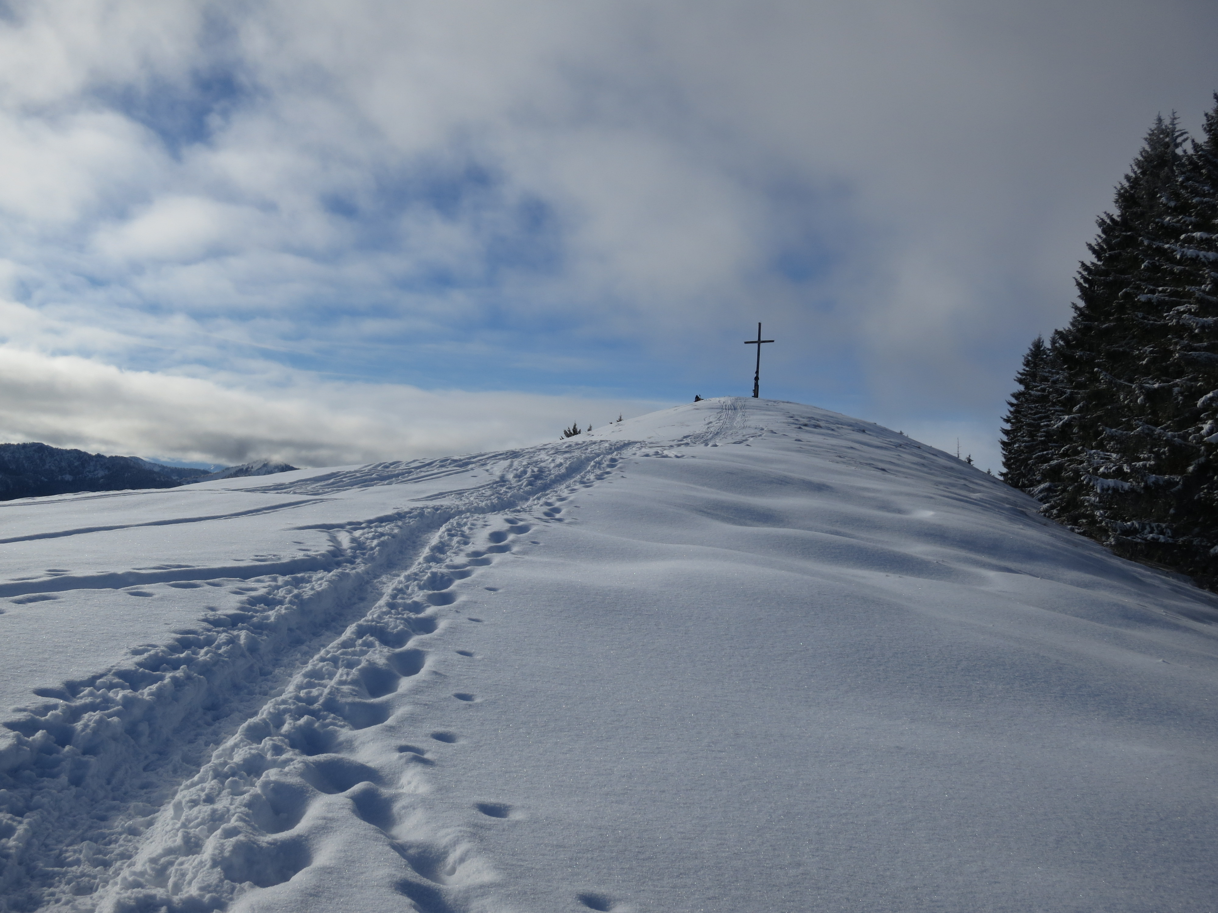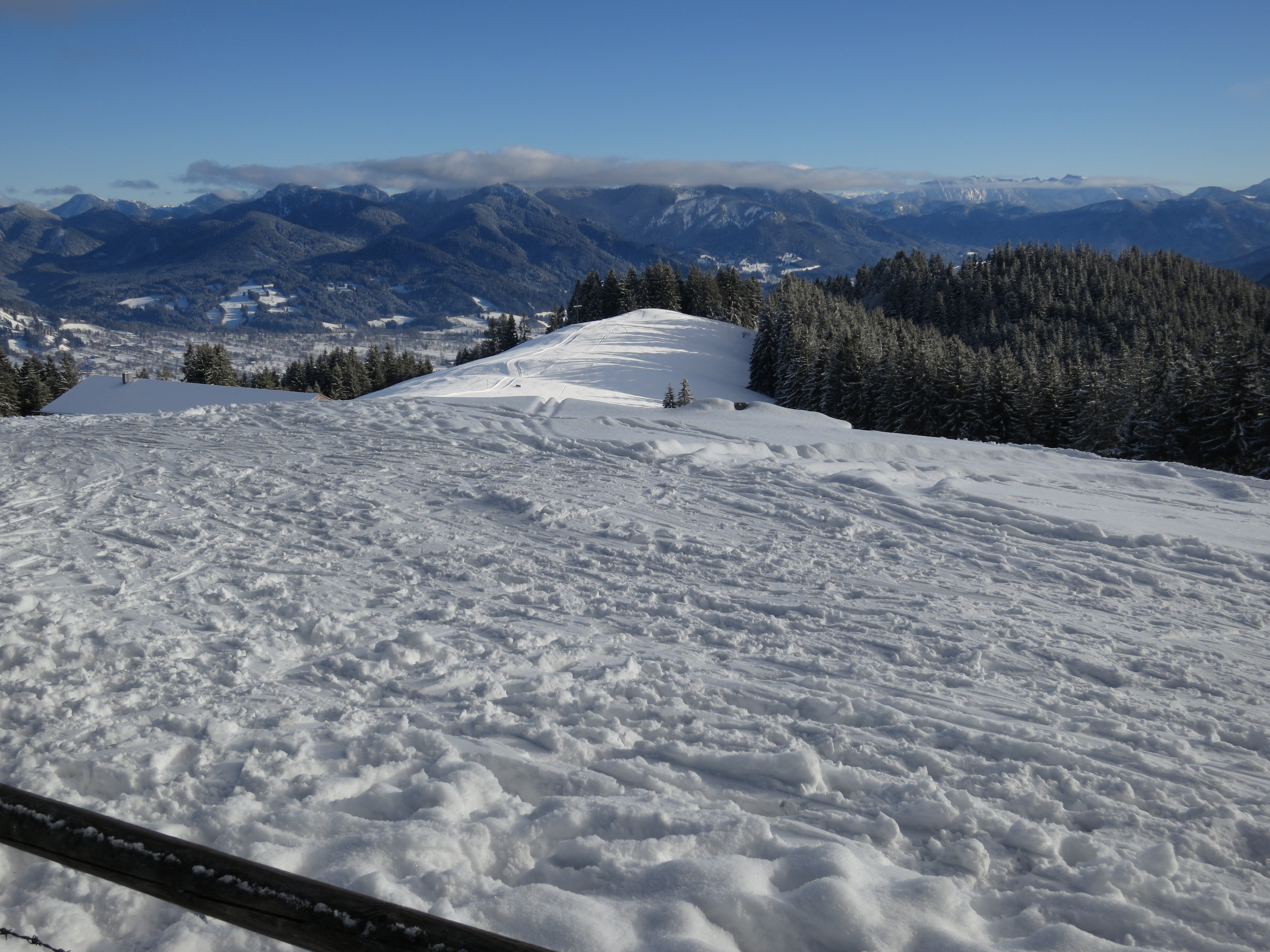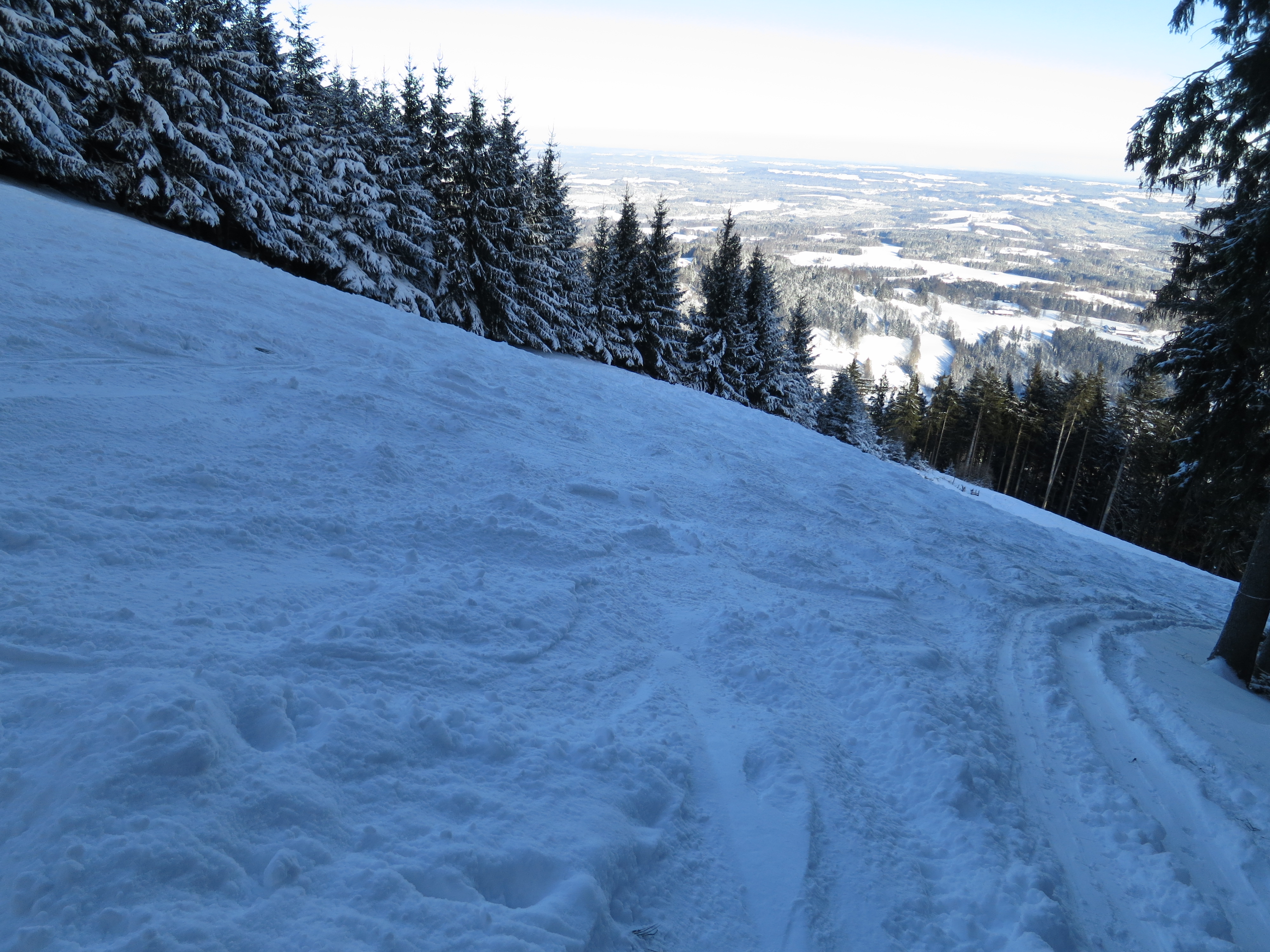 Tourenverhältnisse: Beim Aufstieg über die ausgeschilderte Route "Gamssteig" sehr gute Verhältnisse bis zum Blomberg und zum Blomberghaus. Die Forststraße Richtung Zwiesel war skitourengeherunfreundlich geräumt. Erst beim Wanderweg Richtung Zwiesel war es wieder besser; allerdings war der obere Teil nicht zum Abfahren geeignet (Steine und Wurzeln). Am Gipfel heute Sonne und Wolken, kein Wind und relativ warm. Abfahrt vom Gipfel nach Osten Richtung Zwieselalm und dann nach links auf einem Ziehweg mit meist leichtem Gefälle zurück zum Aufstiegsweg (ging sehr gut). Dann auf der geräumten Forststraße weiter zum Blomberghaus und zurück zum Blomberg. Die Abfahrt zur Talstation war noch in relativ gutem Zustand, aber natürlich schon zerfahren. Einzelne Feinde blinzelten auch schon aus dem Schnee heraus (besonders an den Engstellen wie "Gehirnerschütterer"). Insgesamt haben die Ski aber keine markanten Schäden abbekommen.