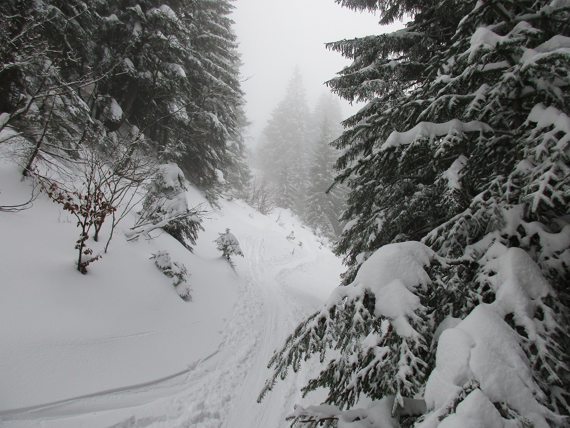 Tourenverhältnisse: Unten Tauwetter / oben winterlich / Der Schnee hat sich nun gut gesetzt / Keine Steine etc. / Pisten super zum Abfahren / z. Zt. lohnend / Schlechtwetter sorgt auch am Brauneck für eine einsame Tour