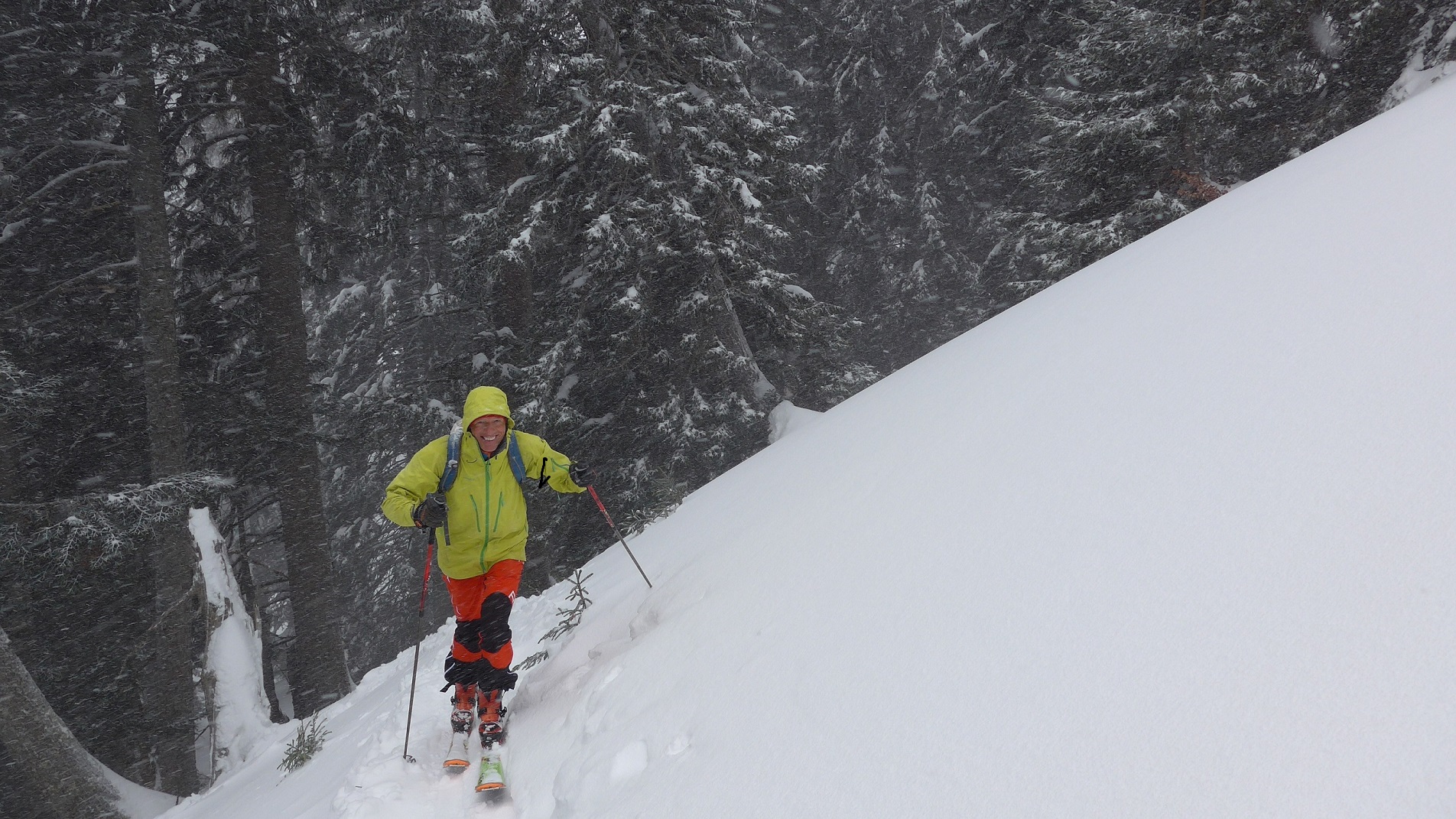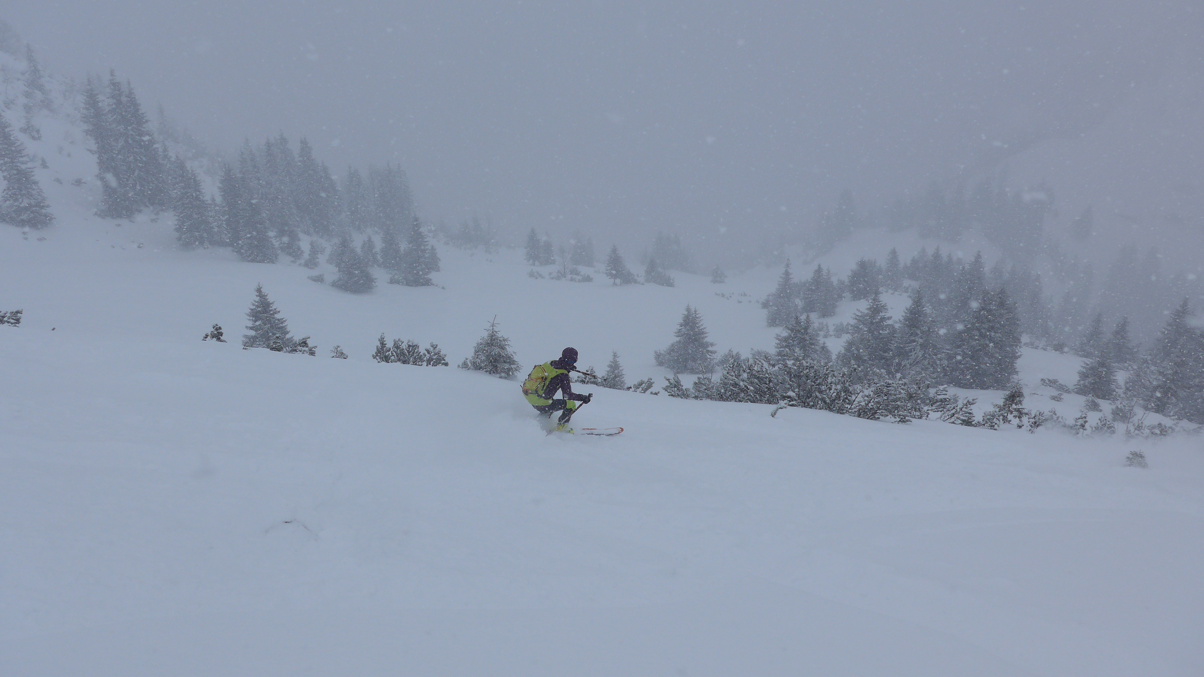 Tourenverhältnisse: Aufstieg über die Skiroute bis zum Vorgipfel. Ungemütlich. Zugig. Schneefall. Abfahrt bis zur Raueck mit etwas Umsicht ohne Steinkontakt (bissl abgeblasen). Ab der Alm feiner Powder - natürlich schon etwas zerfahren. Hüttenhang nochmal rauf. Hang nördlich der Raueckalm - Puder!! Schnee löst sich hier leicht von der "Harsch-Regen-Schicht" -> aufpass´n!