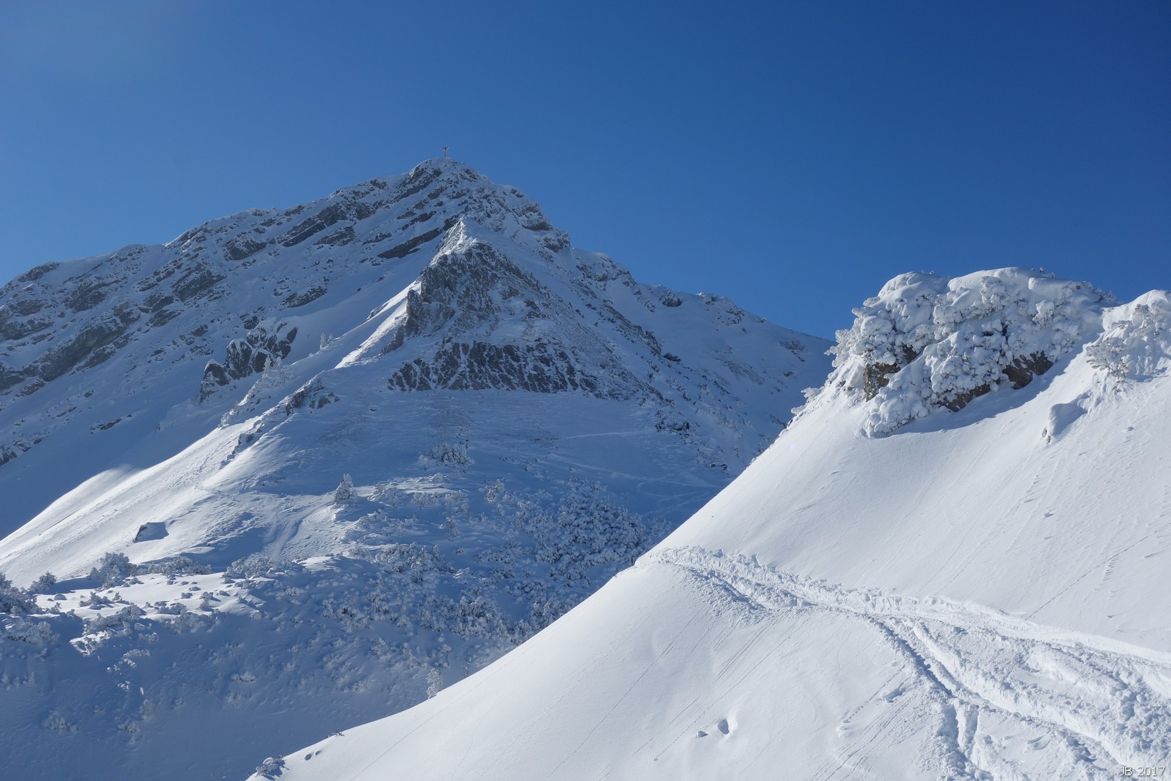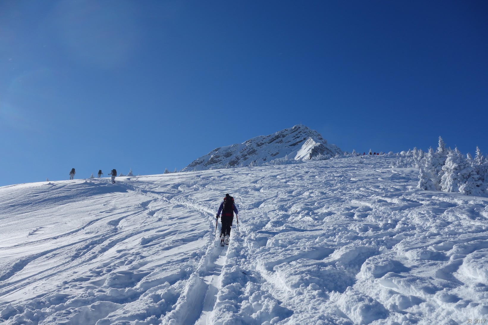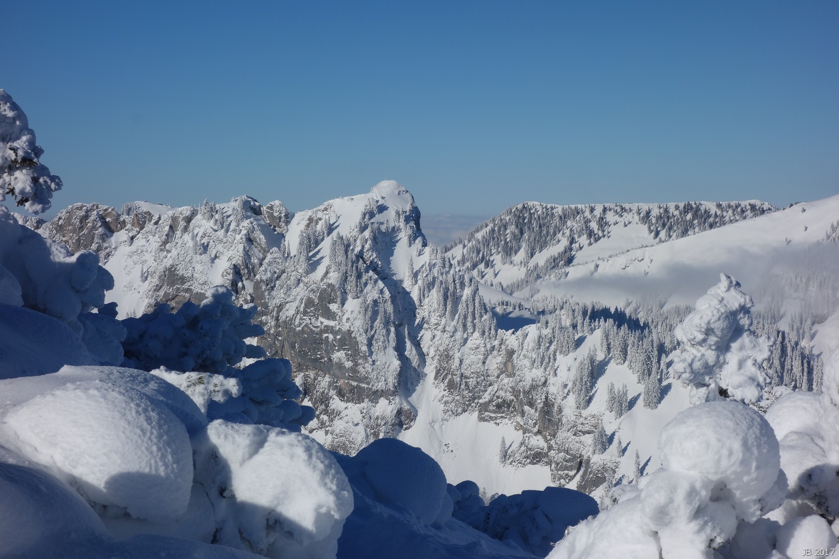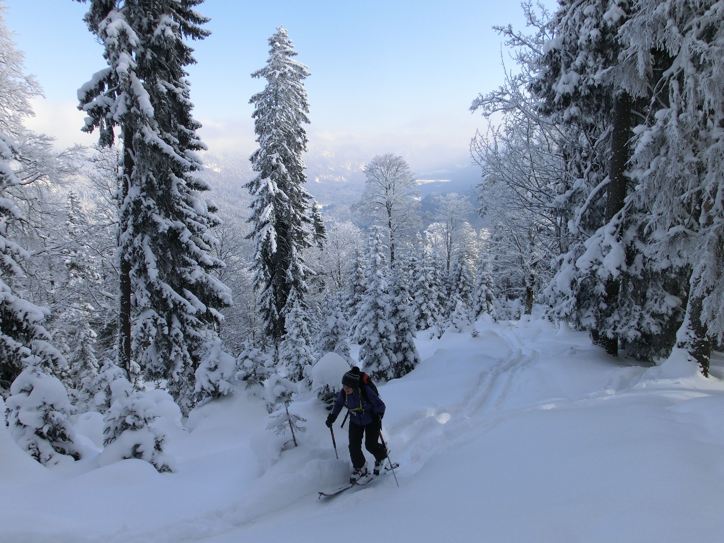 Die Tour führt sehr lange durch den Wald, erst im letzten Drittel schöne Blicke in die tief verschneite Umgebung. Das Abfahrtsvergnügen beschränkt sich auf die oberen Hänge, aber Freunde des tief verschneiten Winterwalds kommen voll auf ihre Kosten.