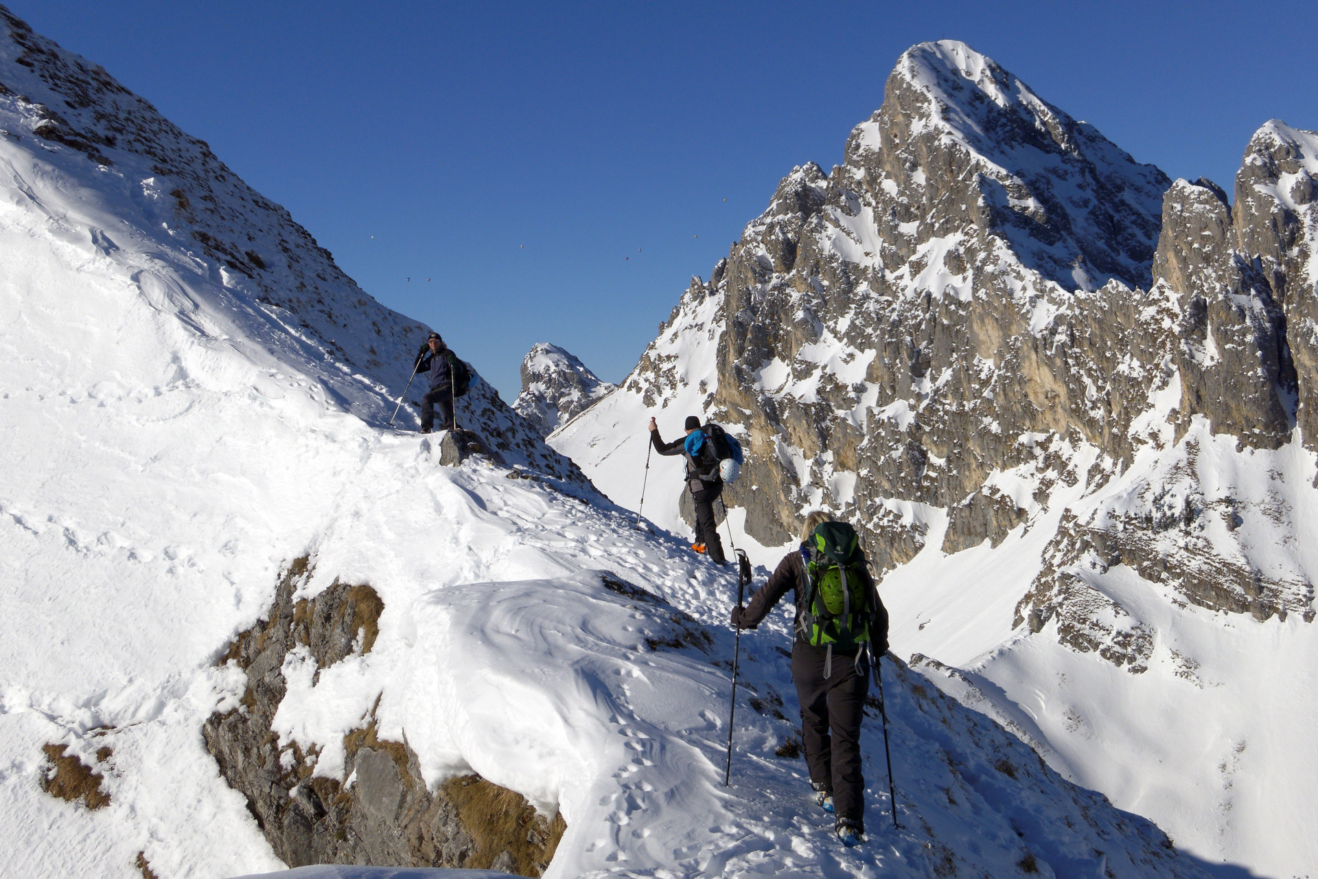 Auf Rippen Achtung vor versteckten Felsen. Gipfelgrat benötigt etwas Konzentration.