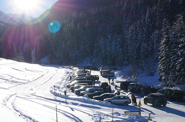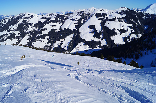Tourenverhältnisse: nahezu perfekt! Da wo die Sonne direkt wirksam war, gab es bereits eine leichte Kruste, ansonsten Pulver satt. Am Donnerstag und Freitag war es noch relativ ruhig in der Gegend, aber am Wochenende war die Hölle los. Der Tourengeherparkplatz im Luegergraben war um 9:30 Uhr bereits fast voll. Die meisten hatten glücklicherweise den Joel auf dem Programm, der bereits am Donnerstag schon sehr stark verspurt war. Der Saupanzen war oben super, im Mittelteil na ja und unten raus war es teilweise grundlos bei wenig Schnee. Sehr gute Bedingungen am Gr. Galtenberg bis zum steilen Gipfelfinale. Und die Touren weiter taleinwärs lohnen ebenfalls bei weniger Andrang und noch wenig Spuren:-)