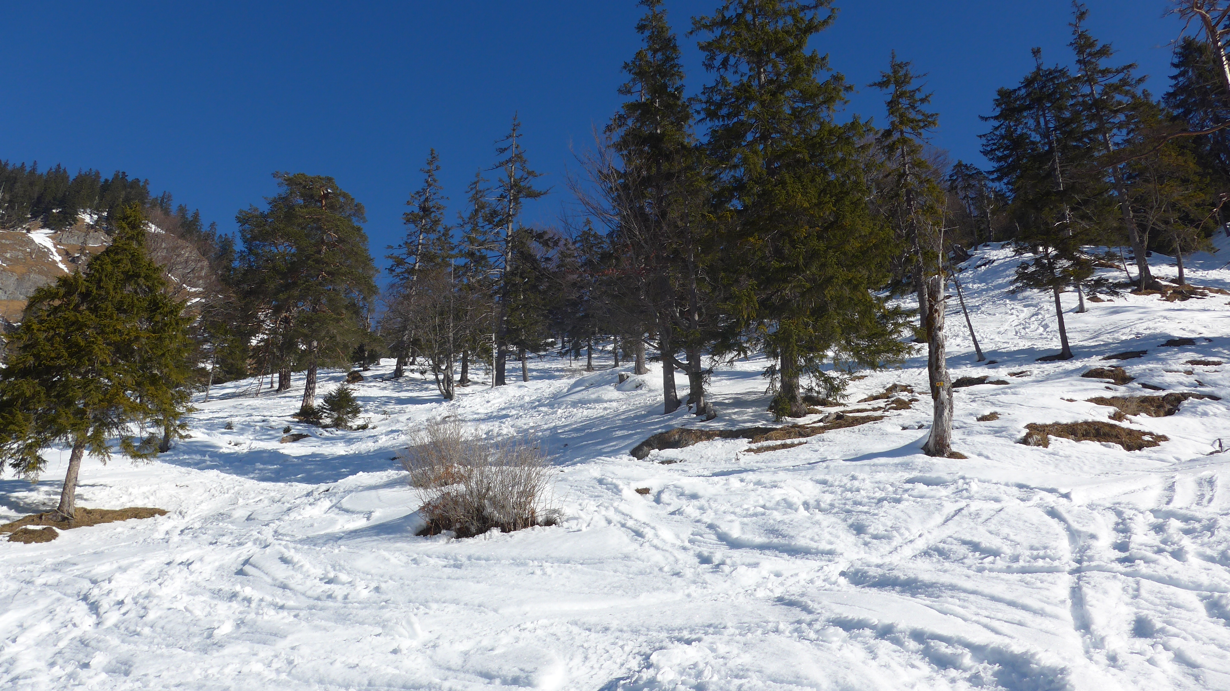 . Bis 13 Uhr wurde der Schnee kein bisschen weich. Das brauchte heute sehr gutes "Stehvermögen". 3-4 Schwünge am Stück max. Erfreulich war heute: nur 1 x Steinkontakt. Die Steine konnte man gut sehen.