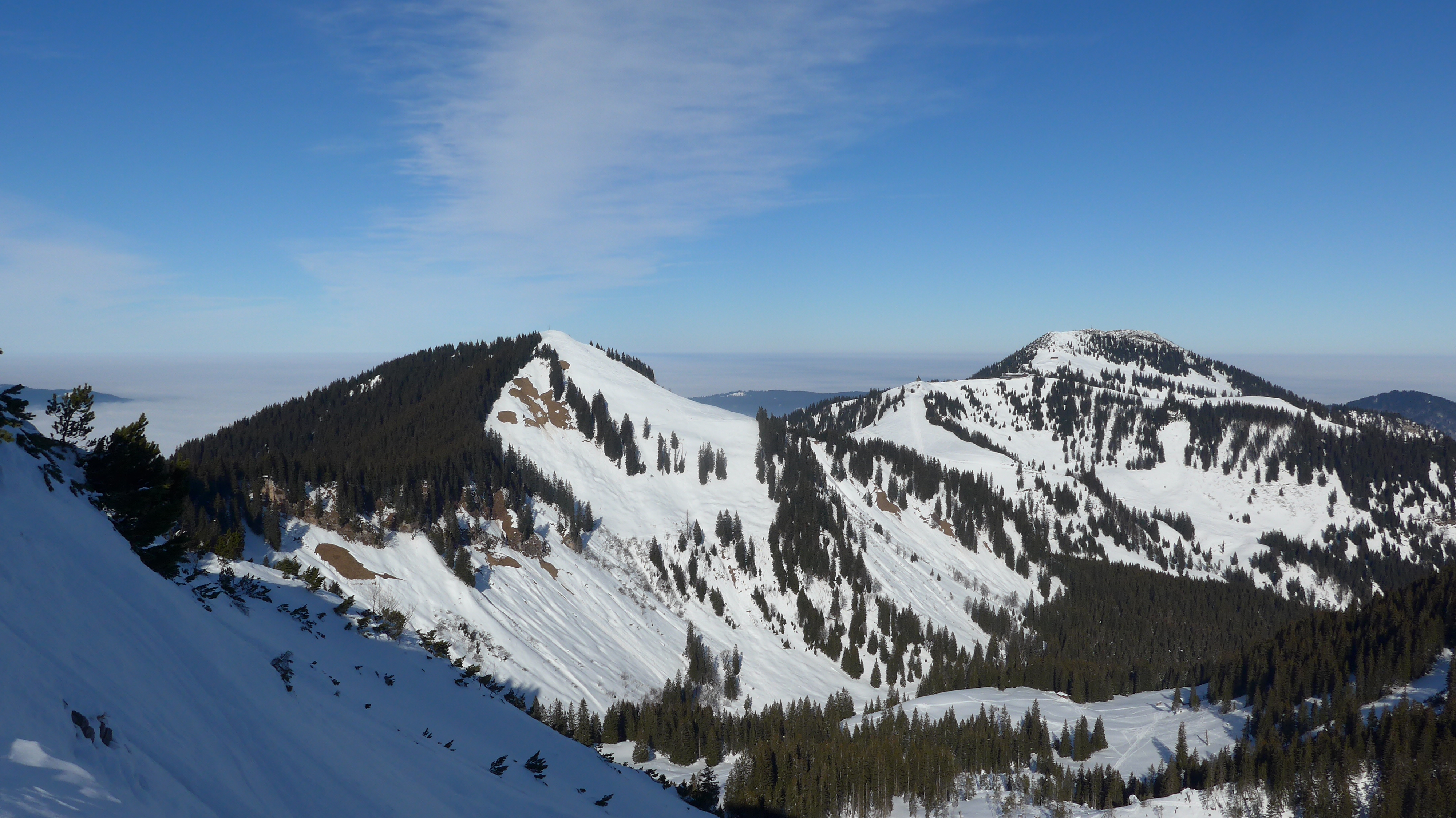 Tourenverhältnisse: Start bei - 15°C und Nebel. Nach wenigen Hm in der Sonne. Der Aufstieg war durch den verspuhrten gefrorenen Schnee heute sehr mühsam. Am Gipfel sehr mild + windstill. Kurzes Sonnenbad und die Stille genossen.