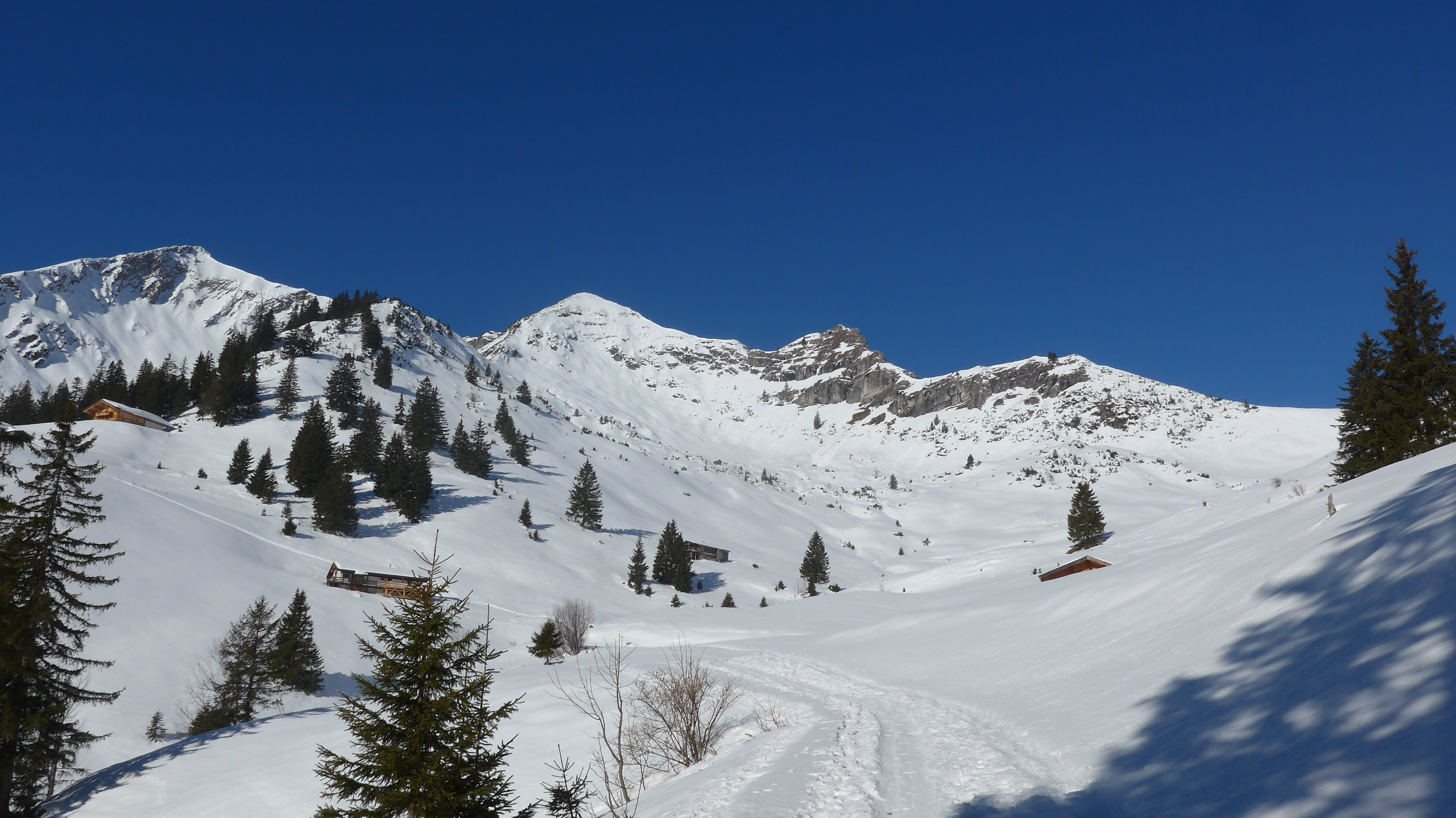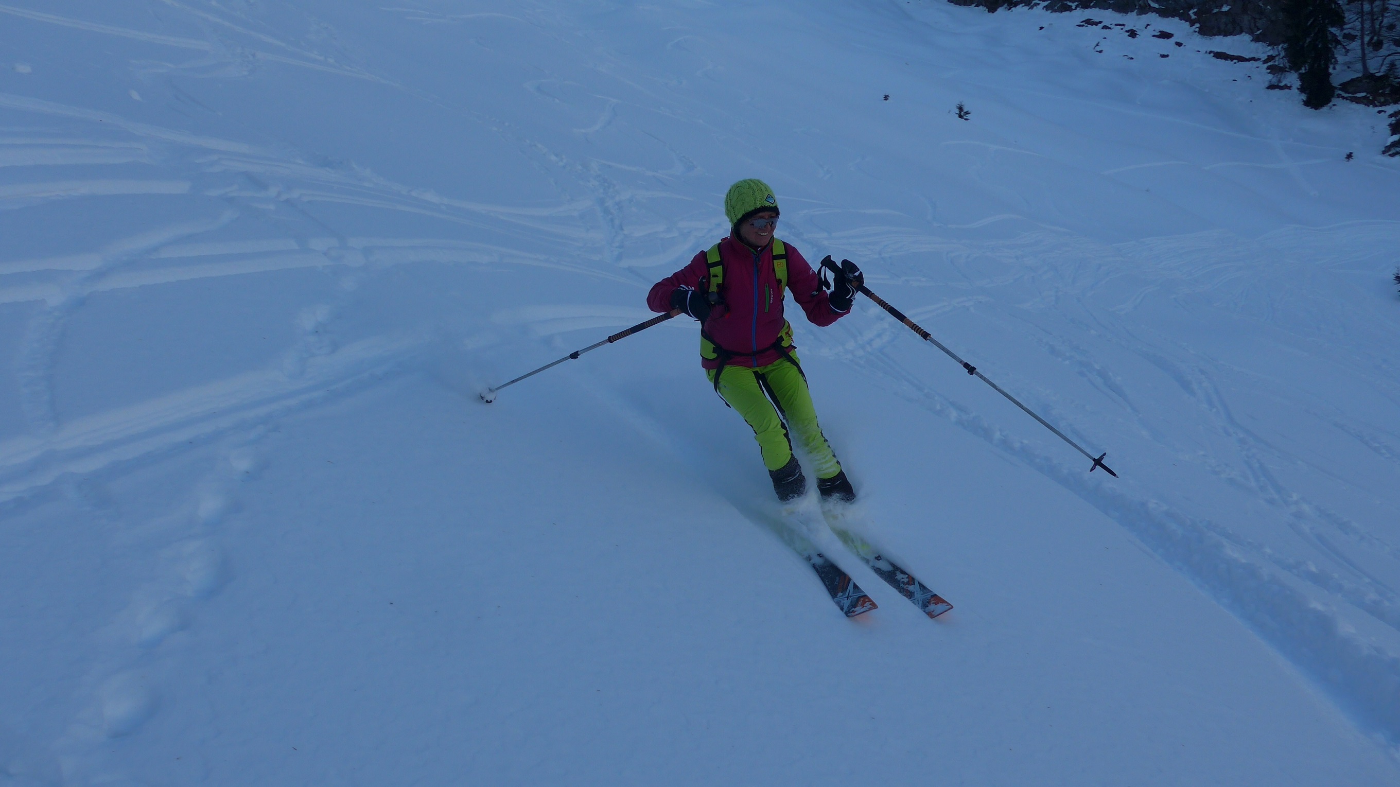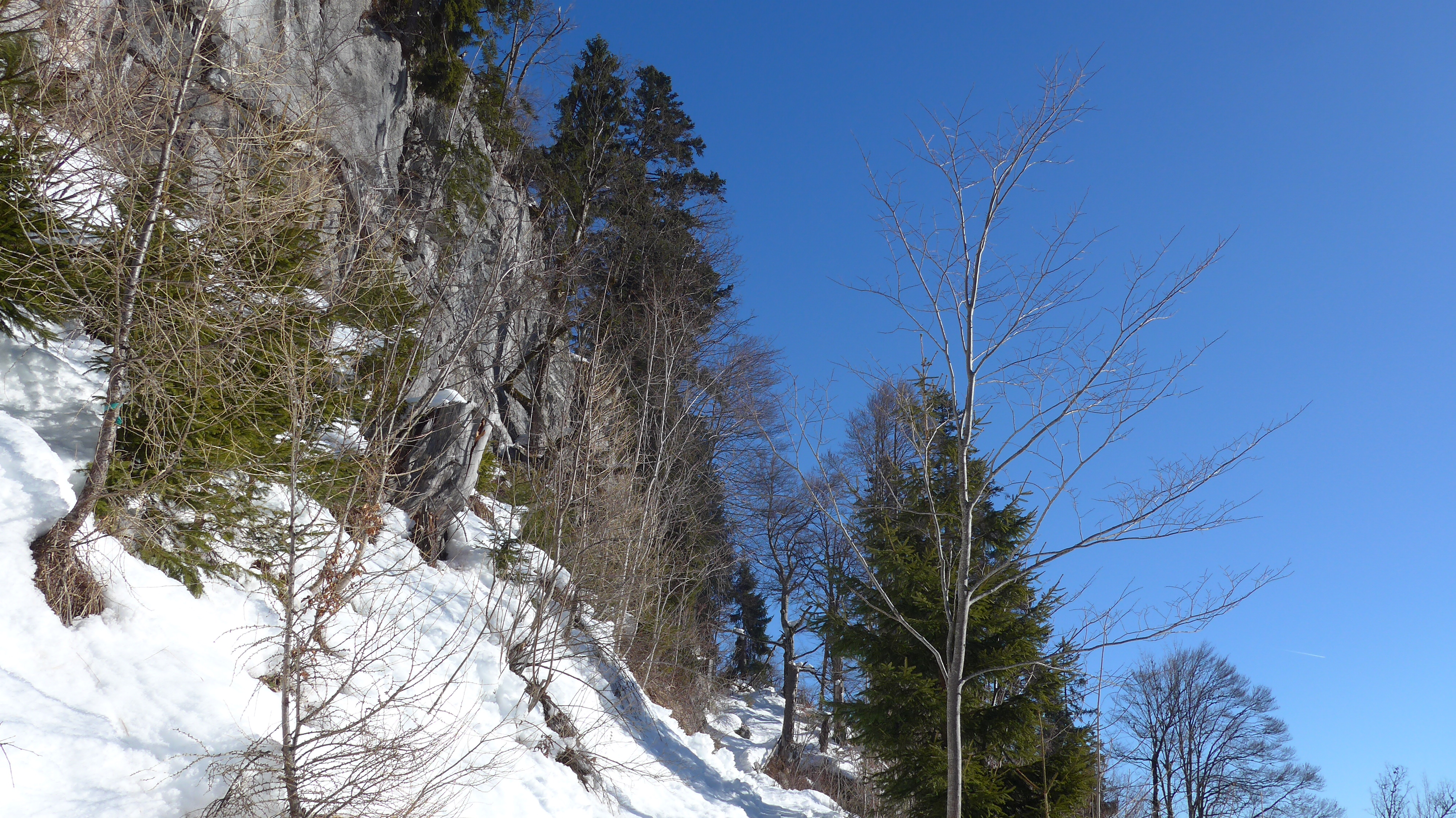 Tourenverhältnisse: geschlossene Schneedecke vom Auto weg. 1 h auf der Straße entlang bis zum Abzweig Wildenkar Alm (wie in AV Karte eingezeichnet) Abwechslungsreicher Aufstieg.