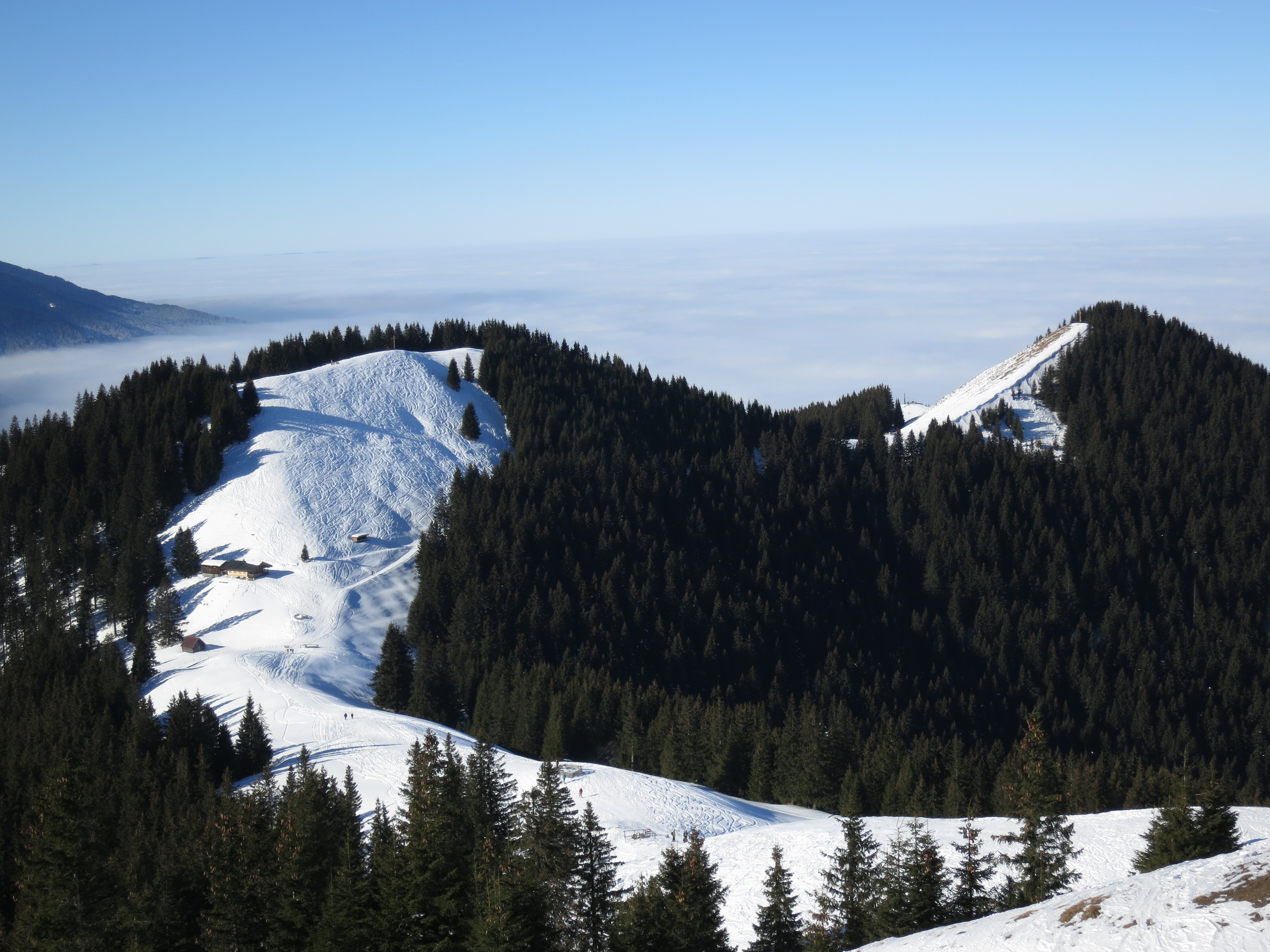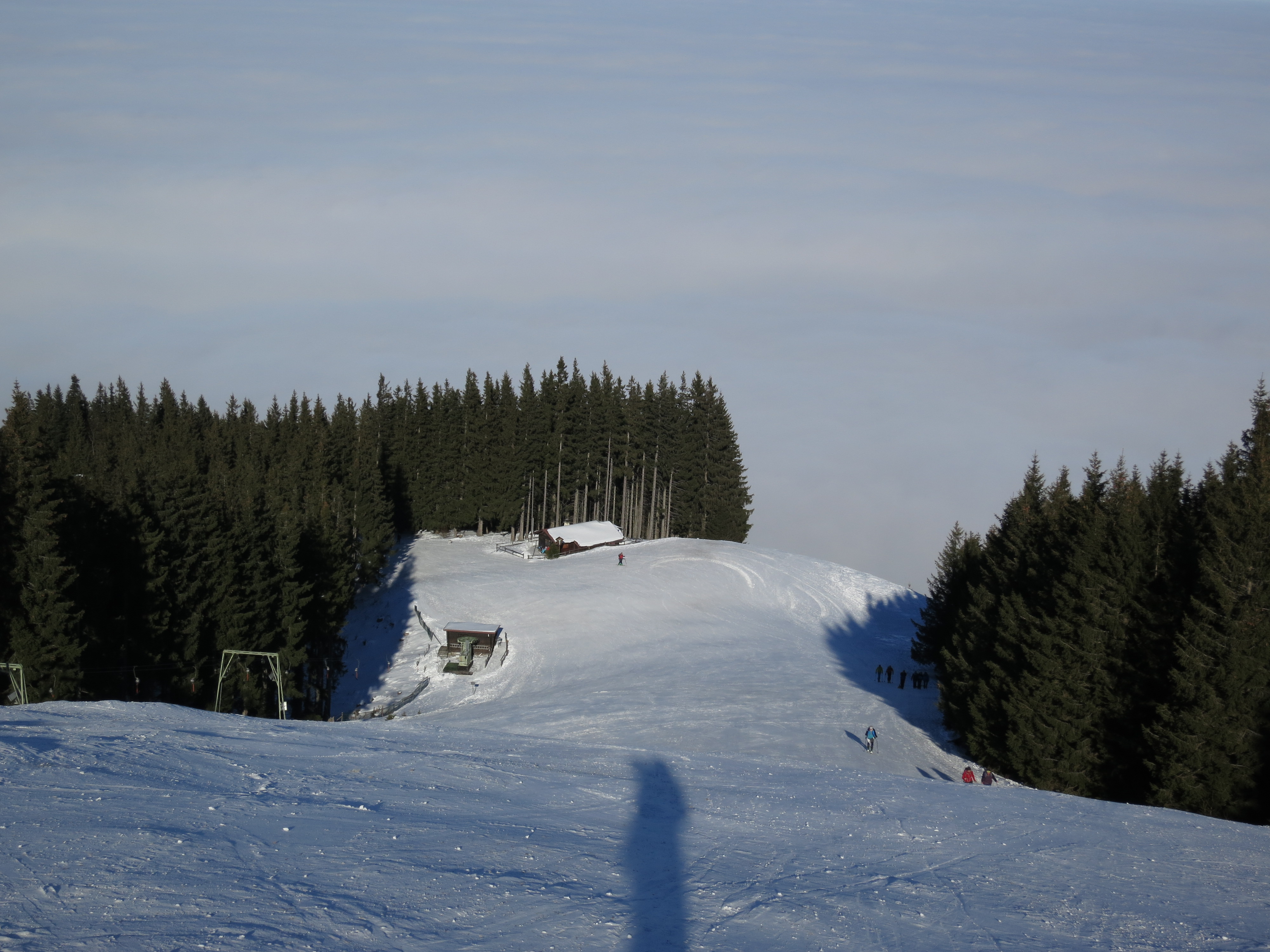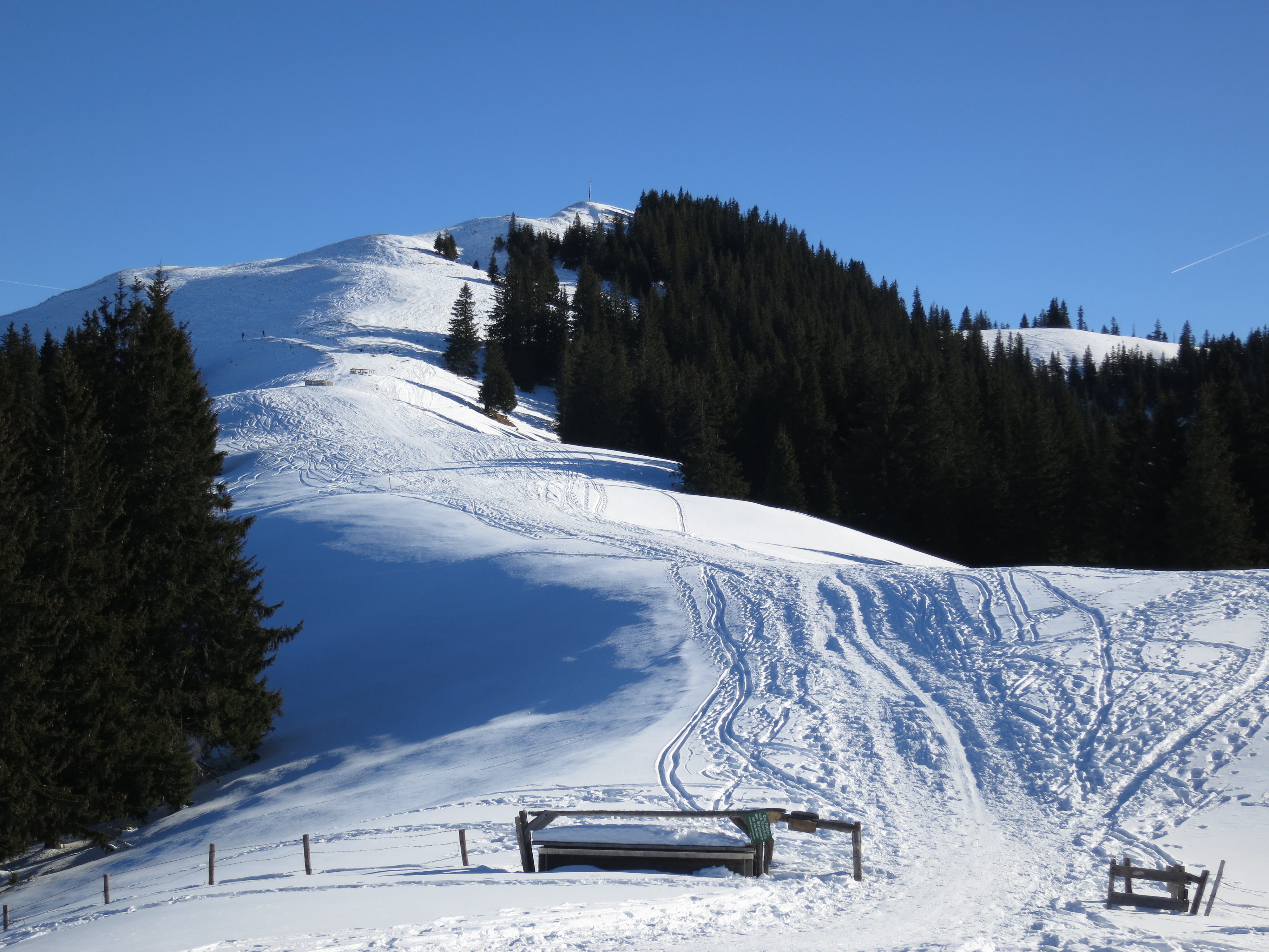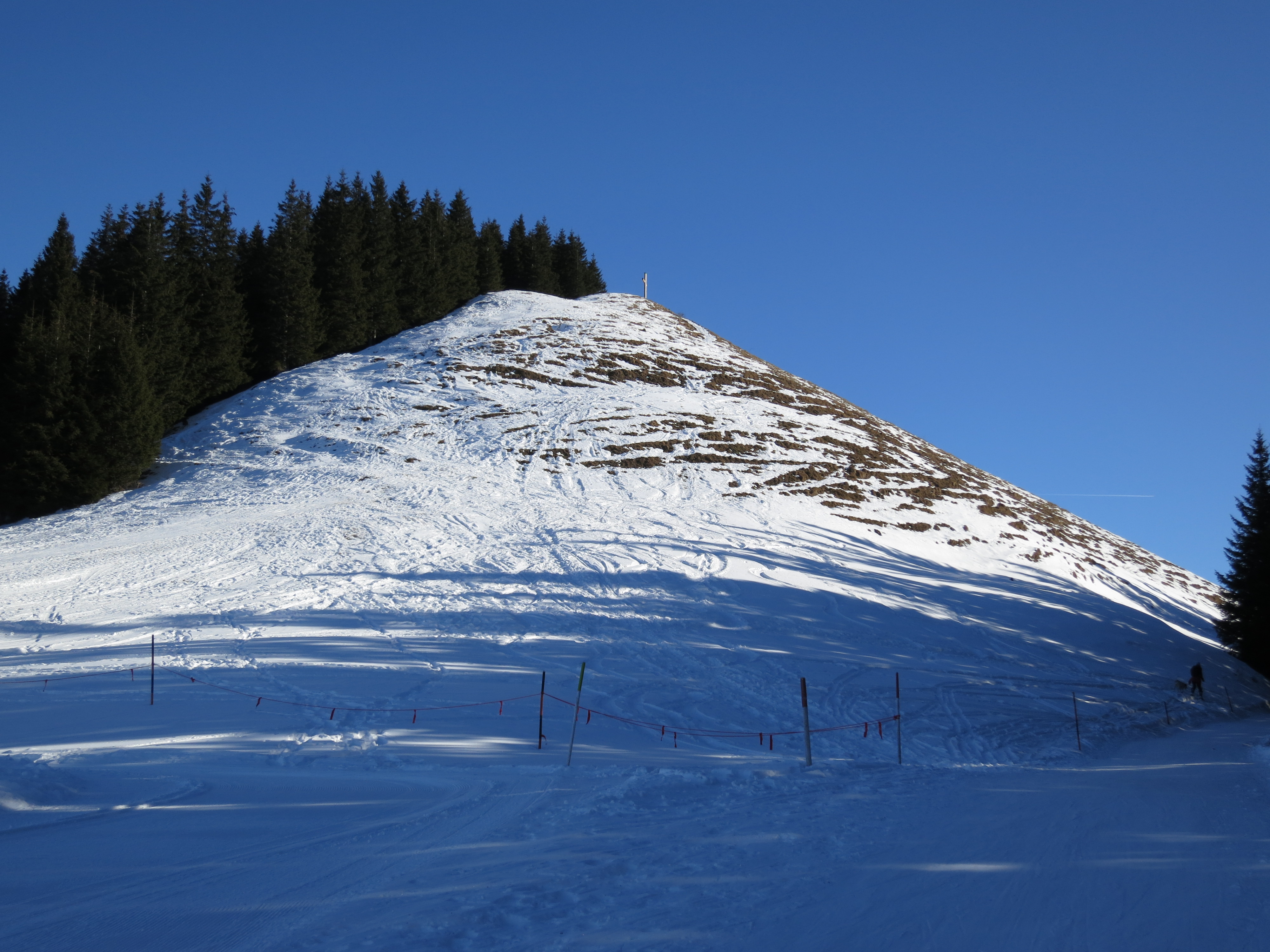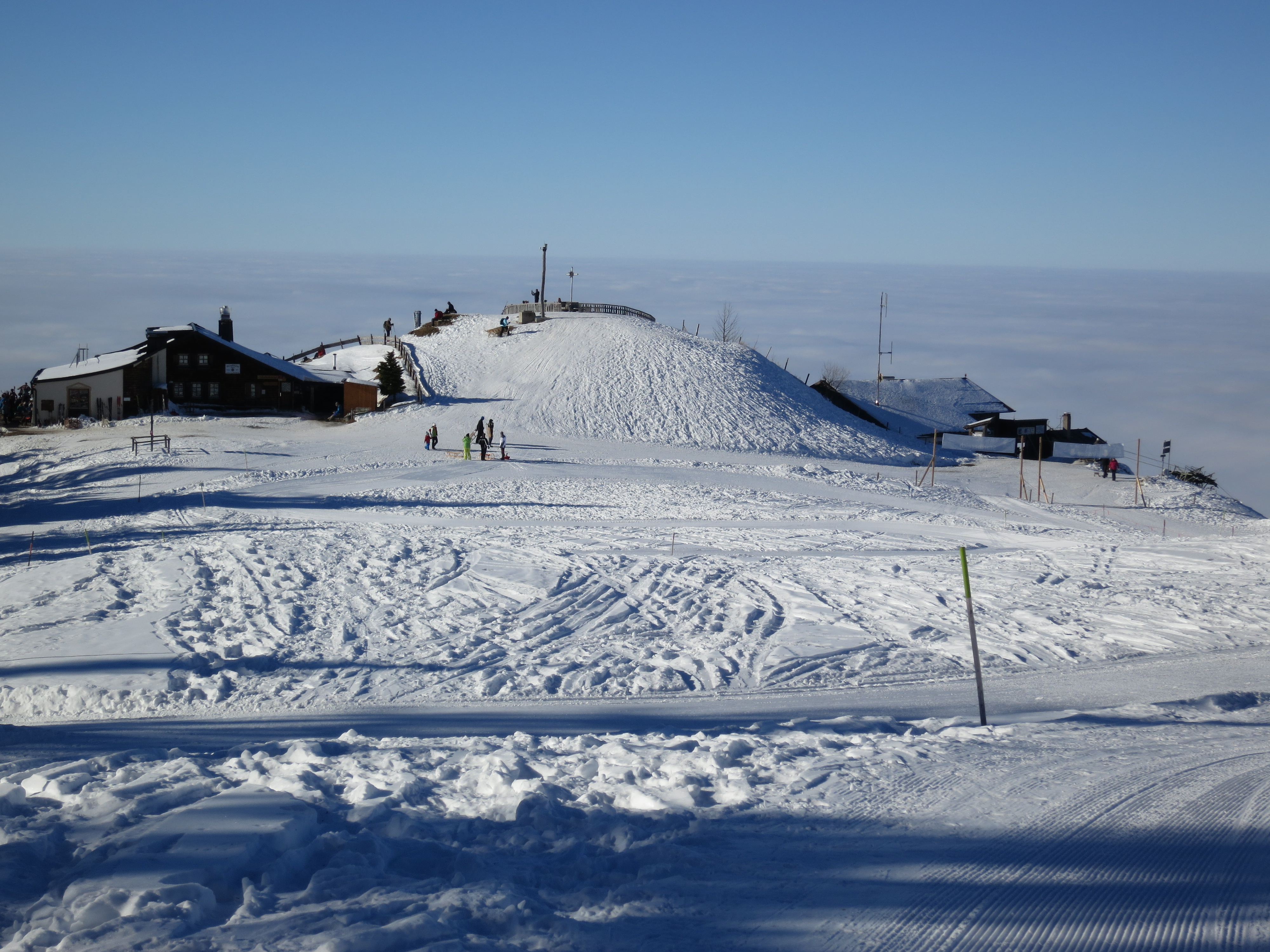 Sonstiges: Sesselbahn in Betrieb (aber nur ganz selten ist da ein Pistler drin gesessen). Am Hinteren Hörnle waren mehr Fußgänger und Schneeschuhgeher als Skitourler (die meisten sind wohl gleich in der Hütte eingekehrt) unterwegs.