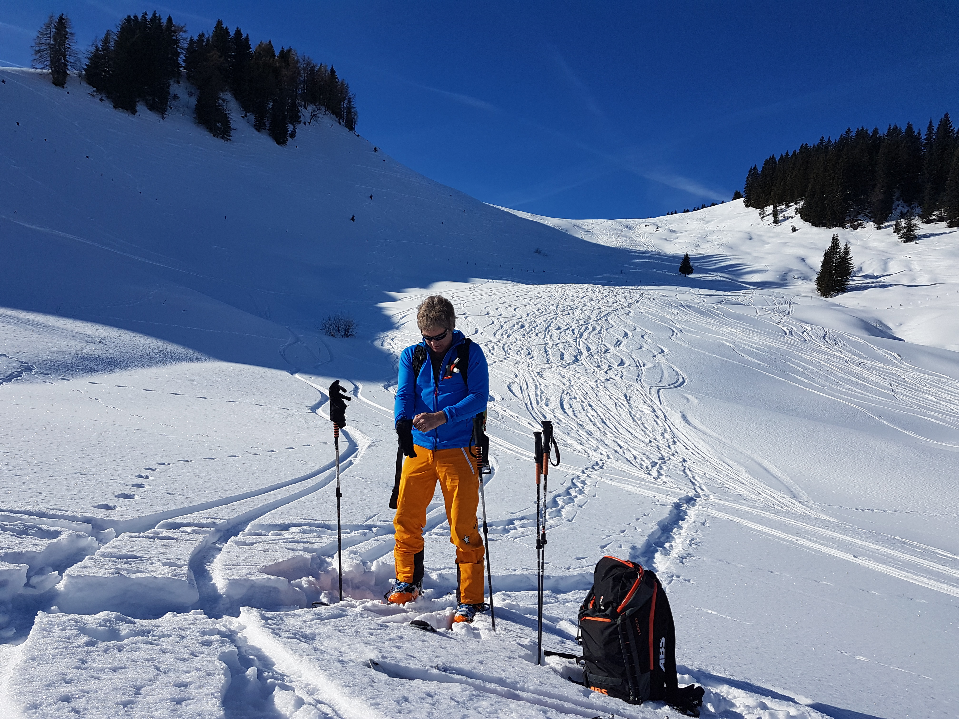 Tourenverhältnisse: Erstaunlich gut. Nachdem die touren unter der Woche in überwiegend grauenhaftem Schnee stattfanden, waren wir sehr überrascht hier noch guten Pulver, bzw. schon netten Firn vorzufinden. Daher sind wir auch noch Richtung Lochnerhorn rüber.
