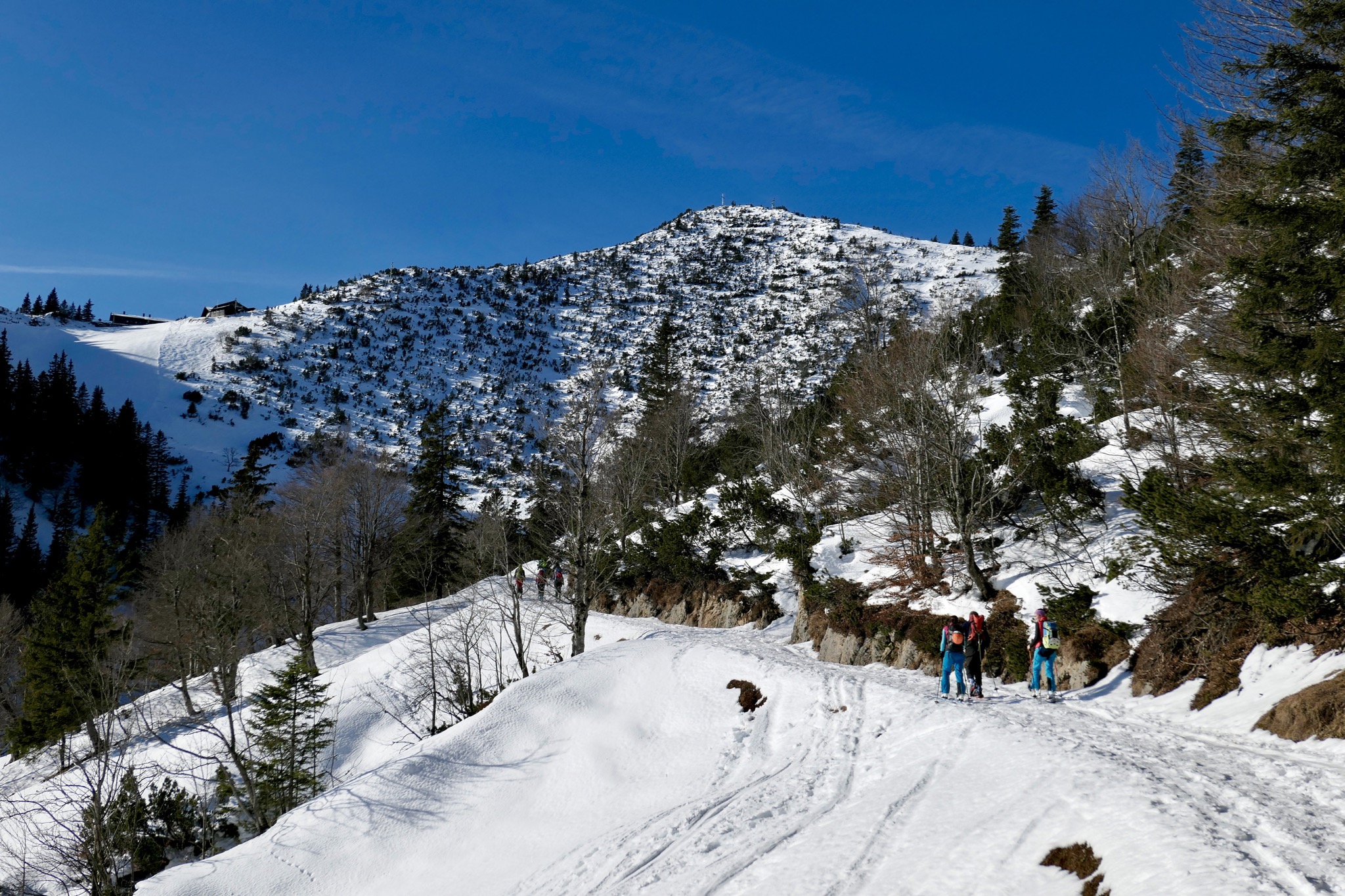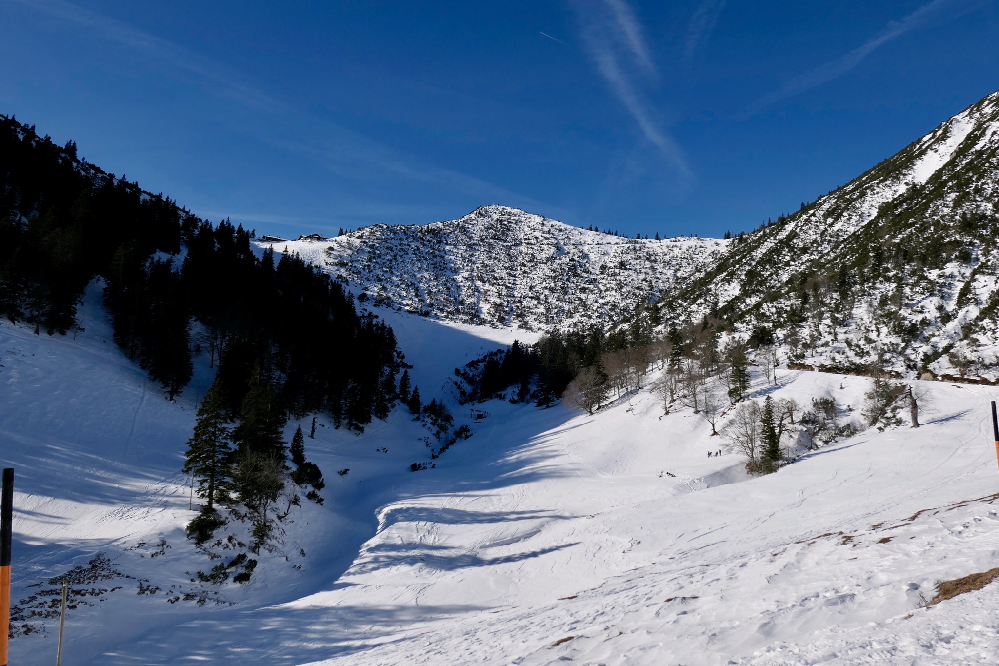 Nach einer Pause im rege frequentierten Herzogstandhaus über die Skiroute zurück ins Tal.