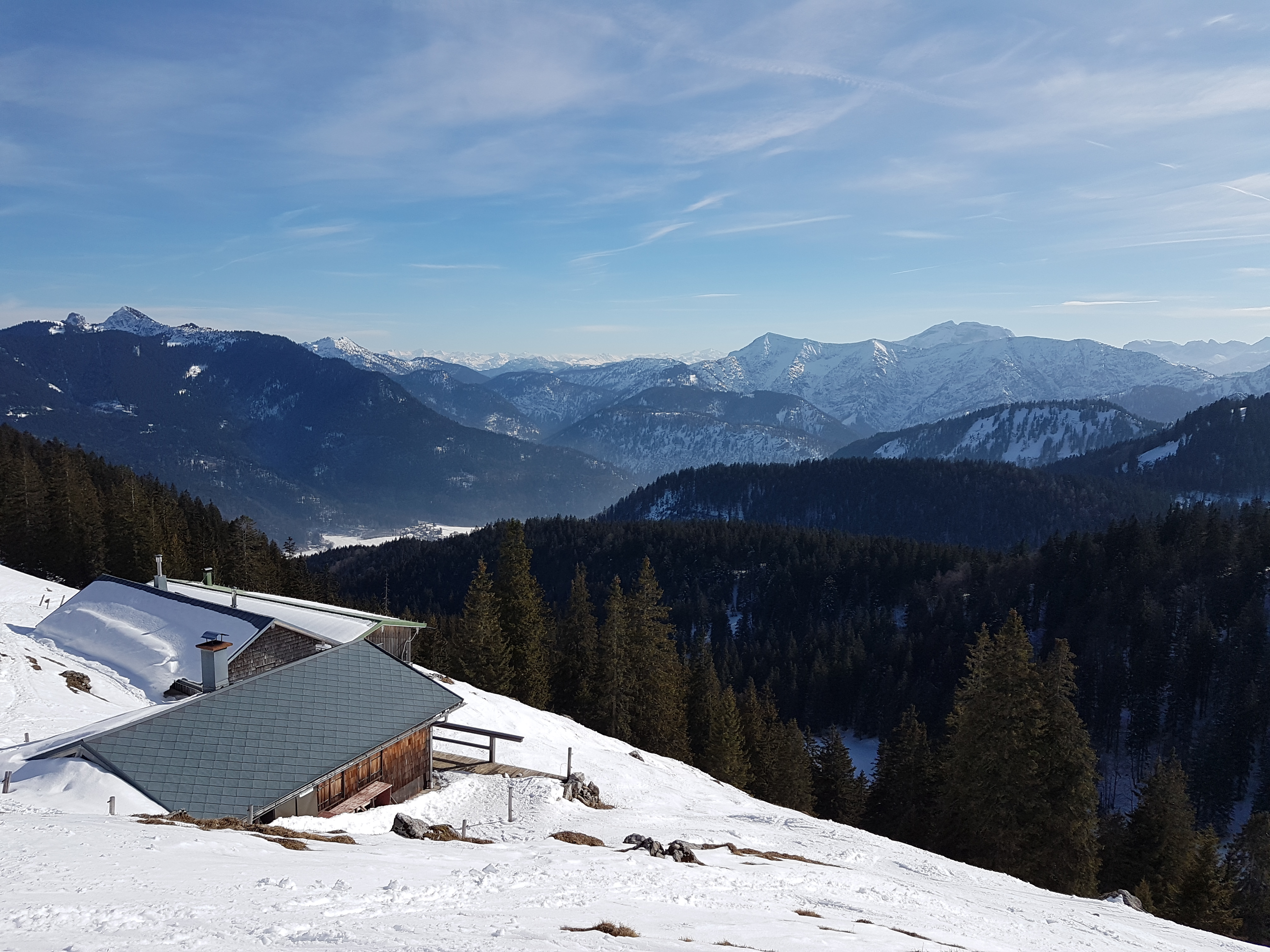Tourenverhältnisse: Gut. Ausreichend Schnee, nur im obersten Bereich der Piste (Steilhang) schaut der Dreck raus, ebenso kurz unterhalb der Rauheckalm im Südhang. Schön angefirnter Schnee in der Sonne, im Schatten zur Piste zusammengefahrener Pulver. Ideal Abfahrtszeit wäre heute um Mittag gewesen. Ich war etwas später dran und wenn die Sonne weggeht, dann wird es in Schattenbereichen sofort wieder harschig.