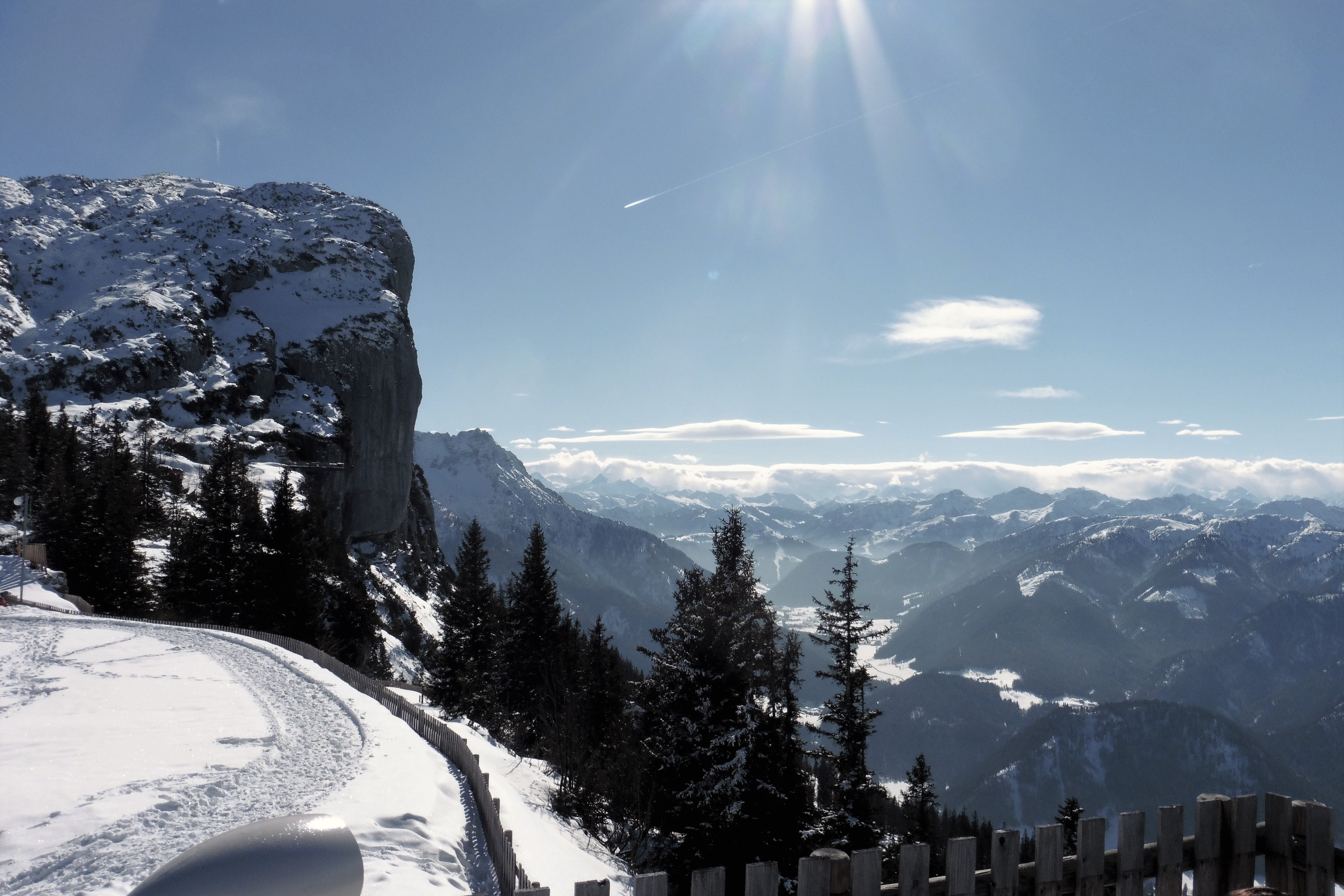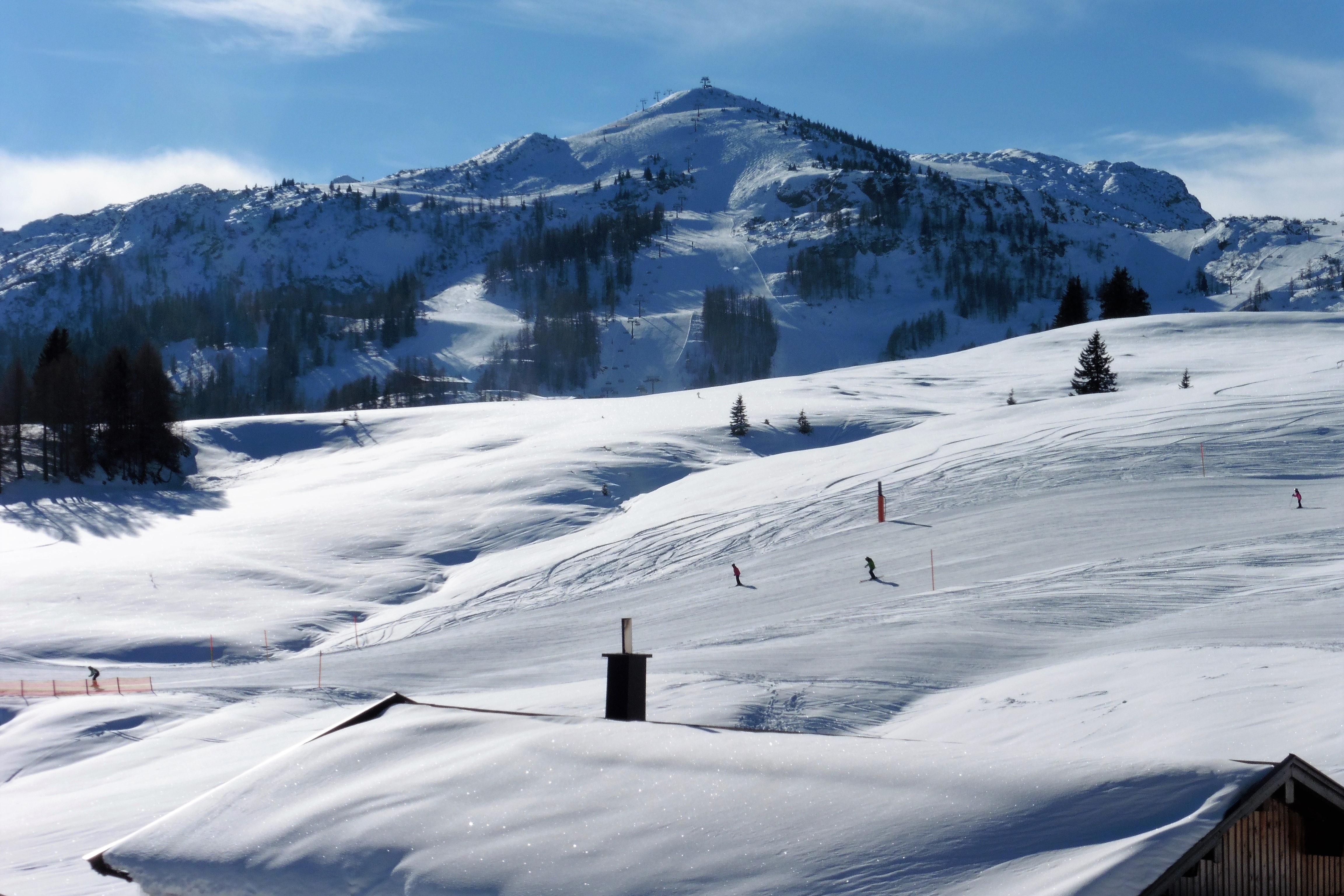 Sonstiges: durch den Schwarzlofergraben, weiter über die Roßalm, die Mösernalm und die Stallenalm zum Kammerkör; der Schwarzlofergraben ist zwar offiziell für Tourengeher gesperrt (Aufstieg über die Loipe zur Winklmoos Alm und dann weiter wie oben), doch am frühen Morgen vor Beginn des Seilbahnbetriebes ist man hier ganz allein unterwegs; charakteristisch für diesen Anstieg sind viele flache Teilbereiche, die - bei schnellem Schnee - lange genussvolle Schussfahrten garantieren;