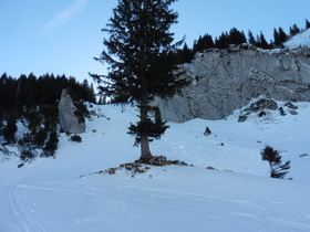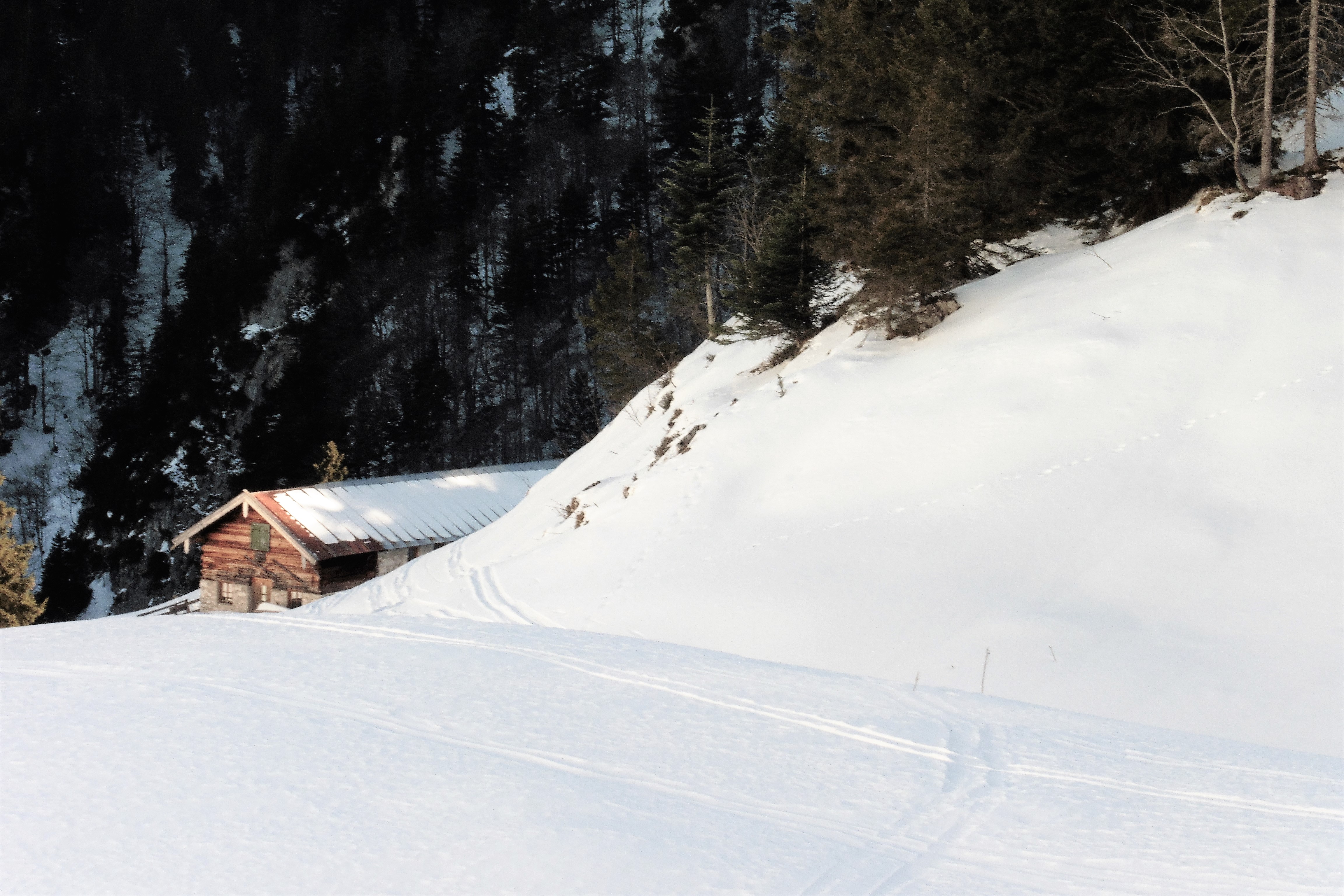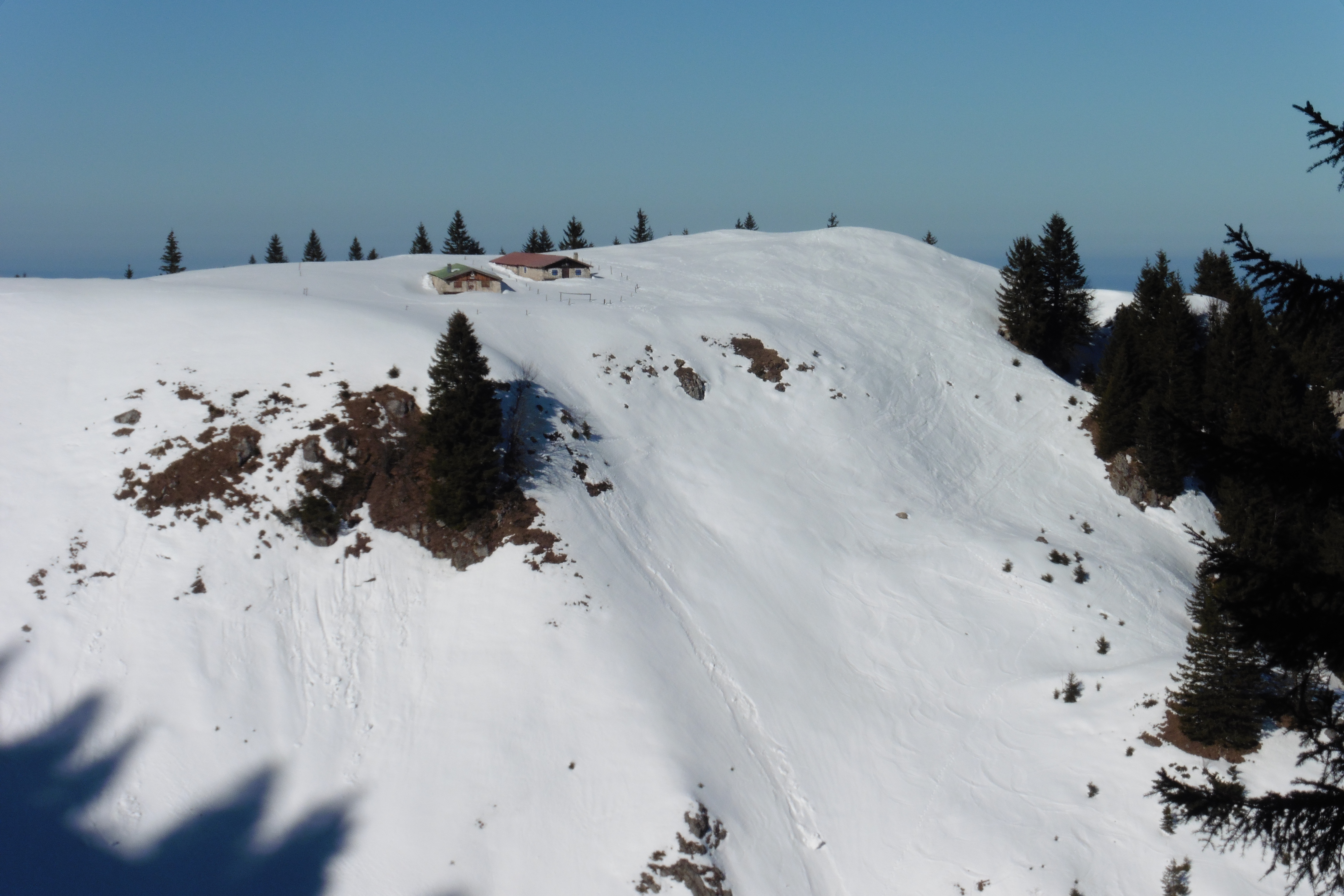 Tourenverhältnisse: auf der Forststraße einige apere Stellen; im oberen Bereich des Anstieges - Harschdeckel mit einem Hauch von Pulverschnee; dazwischen kurze Stellen mit Bruchharsch; ca. 850 Hm;