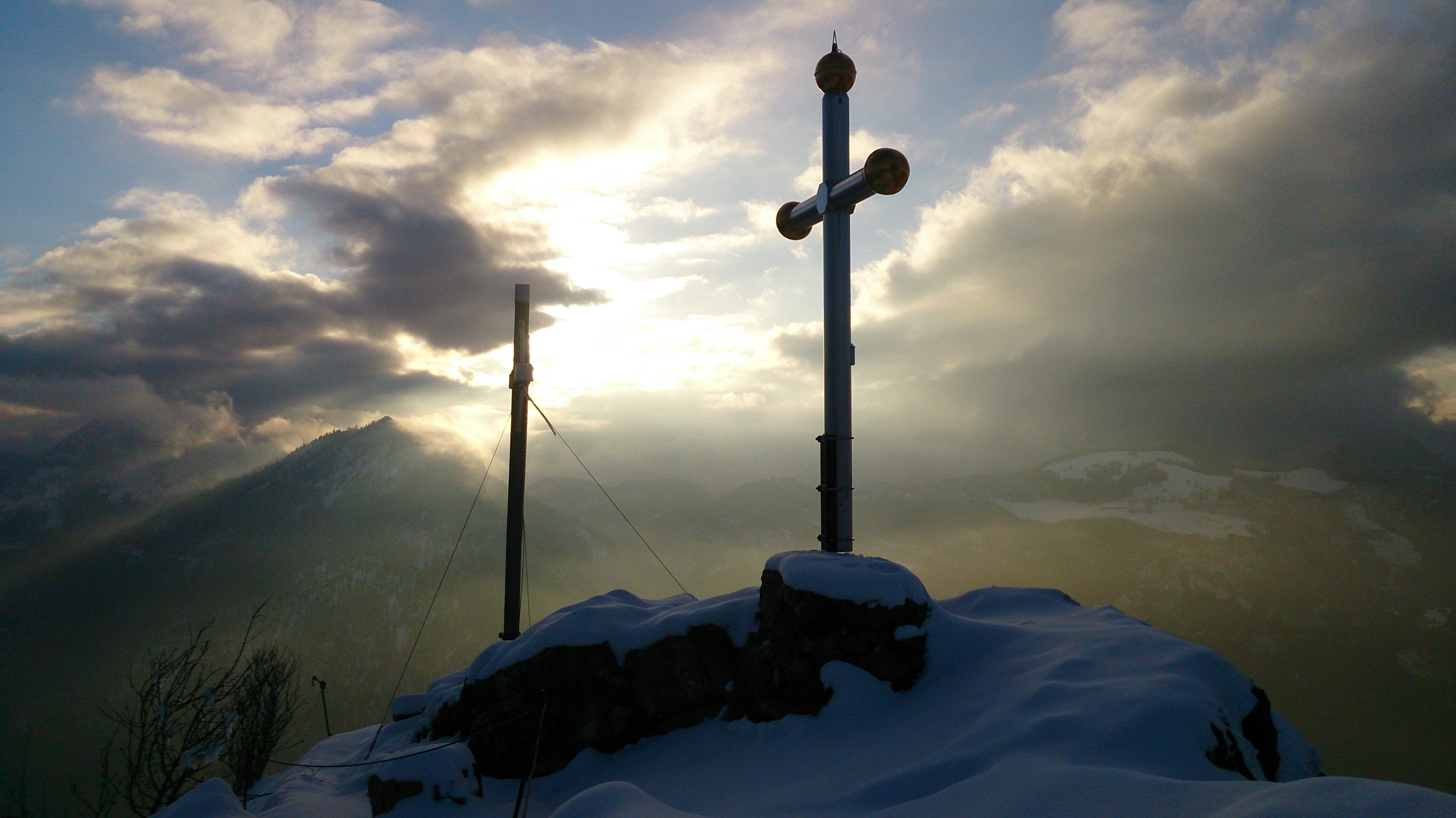 Die beiden markanten Gipfelkreuze am Kranzhorn-Gipfel: