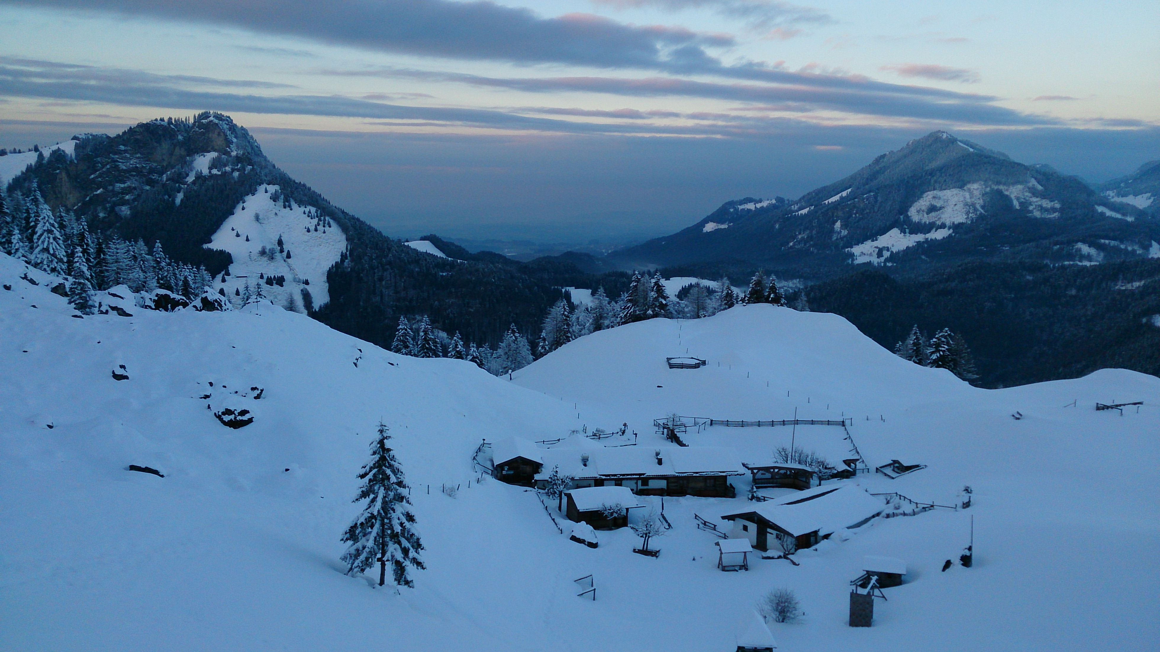Die schön gelegene Kranzhorn-Alm (im Winter geschlossen):