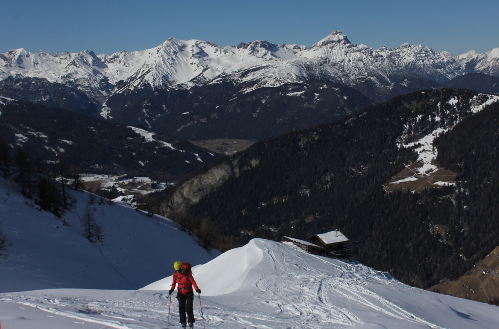 Tourenverhältnisse: Insgesamt wie überall wenig Schnee aber nordseitge Touren machbar.