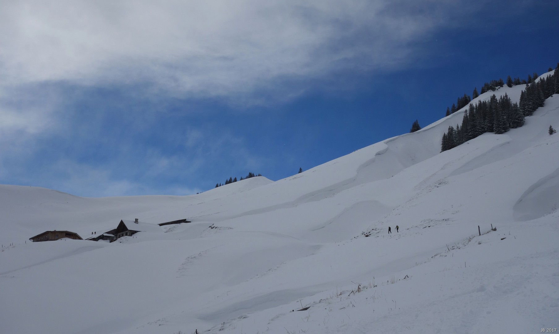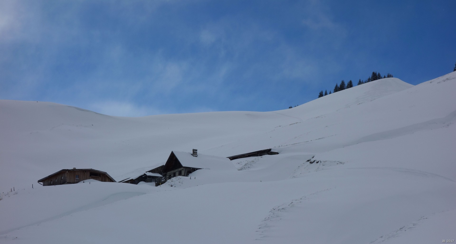Tourenverhältnisse: für diese Höhenlage noch sehr gut: ca. 10 cm feuchter Pulver auf tragfähiger Unterlage