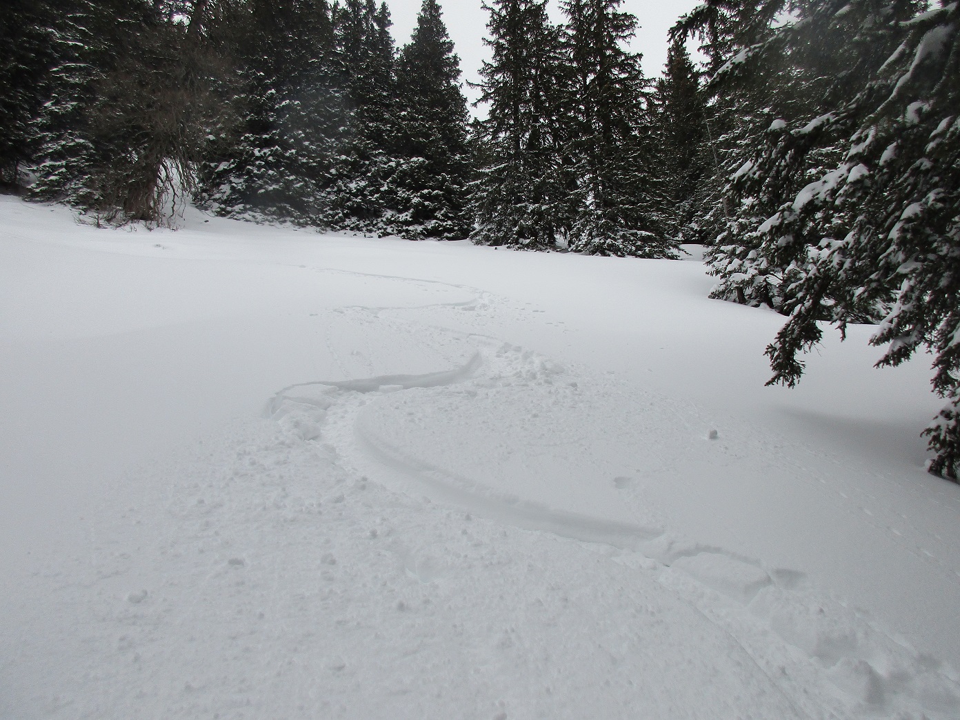 Gefahreneinschätzung: Auf der Linie o.k. / der Neuschnee deckt teilweise schon aper gewesene Stellen zu !
