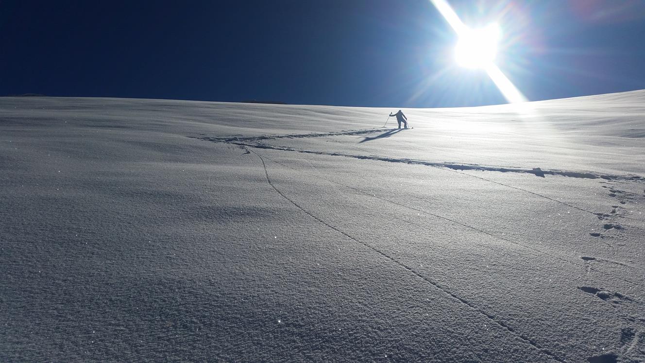 Tourenverhältnisse: Unverspurt und 10-30cm feinster Pulver, windstill. Geht kaum besser.