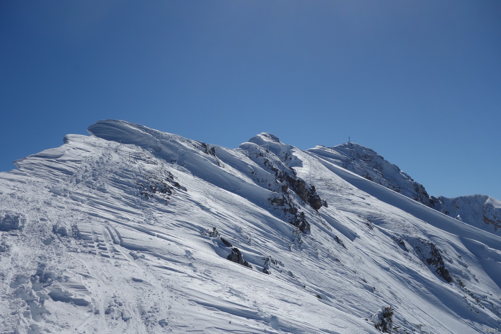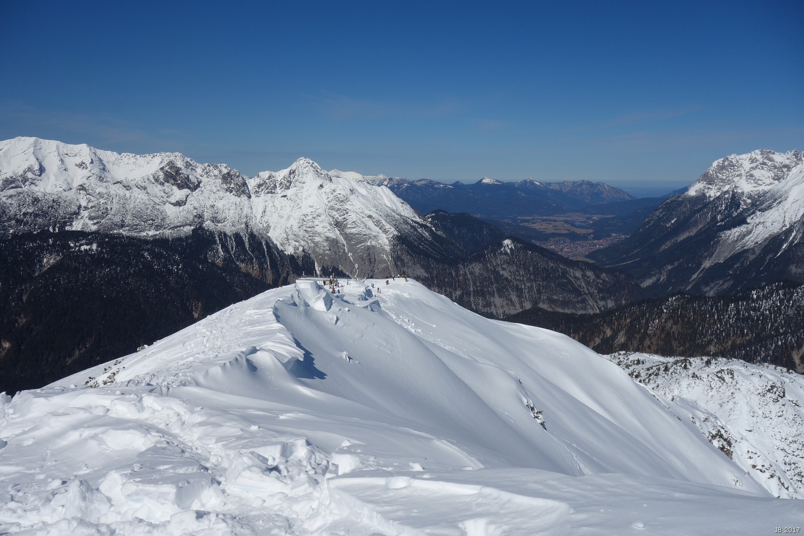 Der Grat zur Seefelder Spitze sah nicht sehr einladend aus, große Wechten zwangen zum Skitragen.