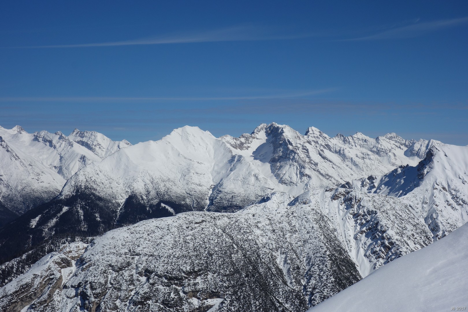 im W die Lechtaler Alpen, rechts die Hohe Munde