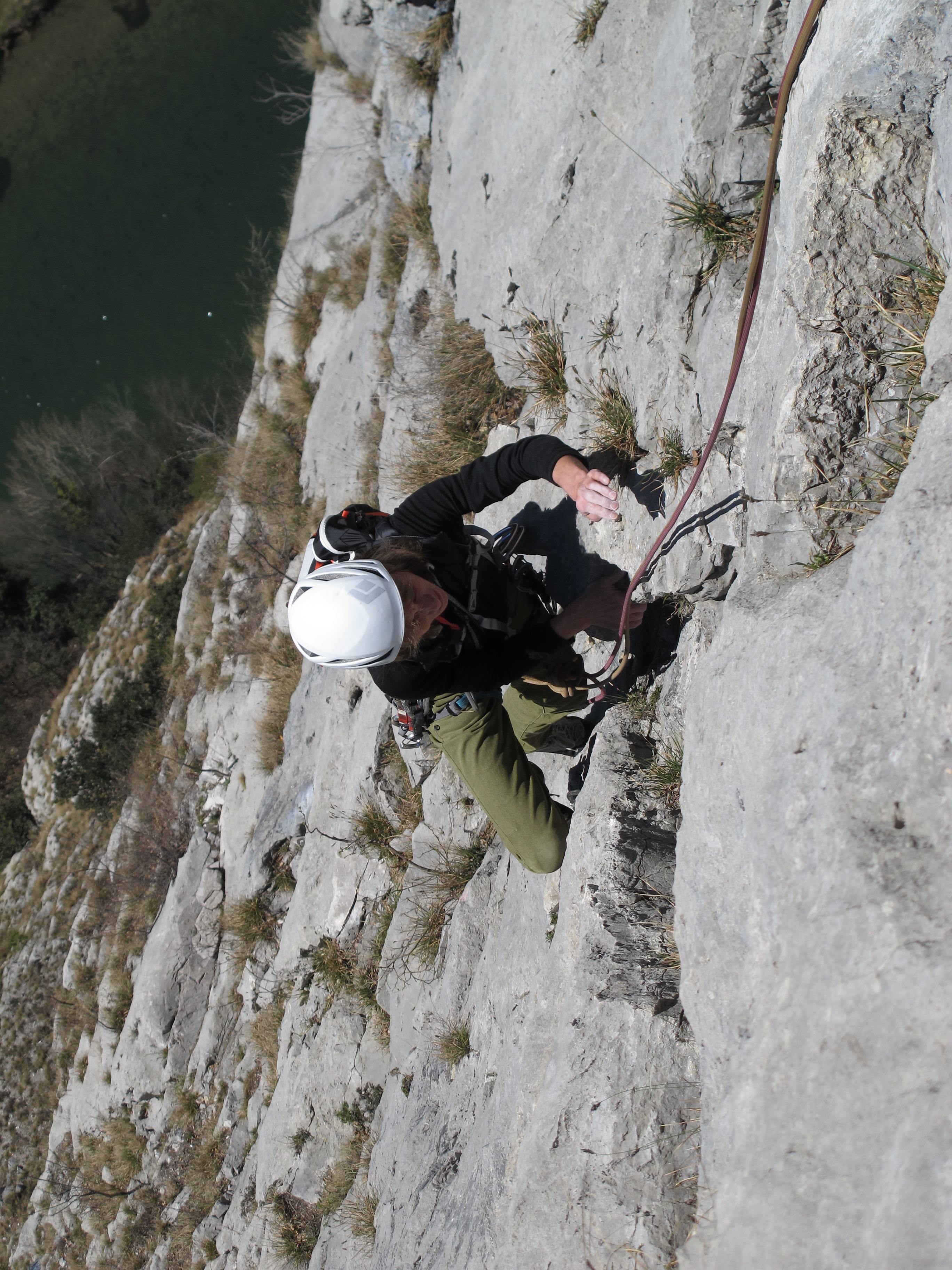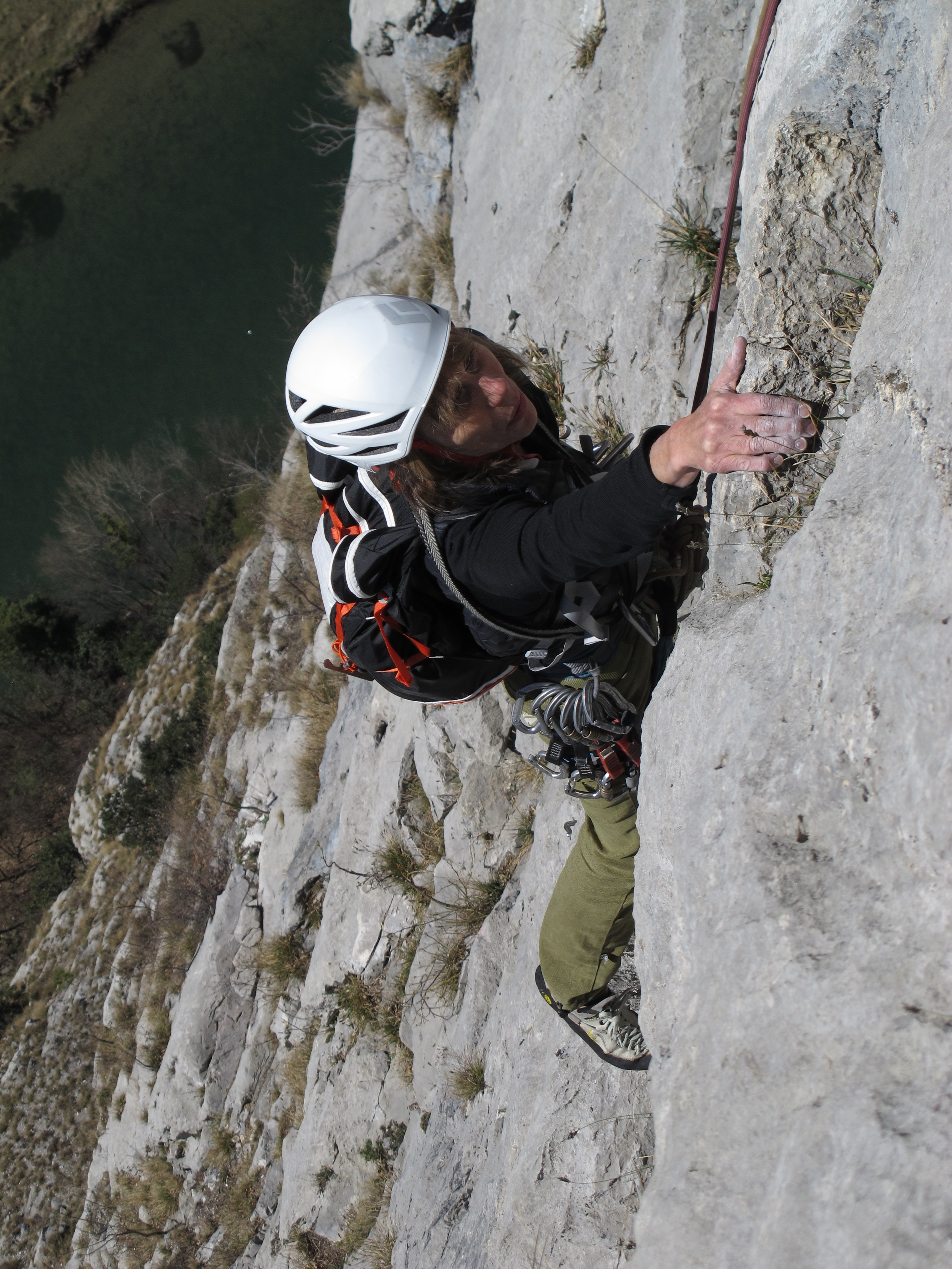 Sonstiges: die links der Orizzonte verlaufende Tour ist fast einen Grad schwerer und in den meisten Längen anspruchsvoller. Technisch anspruchsvolle und elegante Kletterei ist in der fünften, sechsten und neunten Seillänge angesagt. Sehr schöne Tour. Gerade richtig zum Sechzigsten, nach dreimonatiger Zwangspause.