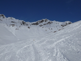 Sonstiges: Aufstieg von der Lawinengalerie die ersten 5 Minuten mit Ski am Rucksack, dann Richtung Kreuzjoch mit Ski bevor die Spur auf ca. 2200 m nach rechts Richtung Narrenböden abbiegt. Hier etwas steiler empor, am Felsriegel vorbei und wieder nach Norden den Gipfelhang aufwärts. Vom Skidepot in ca 20 Minuten über guten Stapfschnee am Gipfel. Abfahrt hoch Richtung Süden und über den letzten Hang über schönen Pulverschnee abwärts Richtung Aufstiegsspur zum Mitterzaigerkopf. Dort Auffellen und hoch zum Kreuzjoch. Von dort in 5 Minuten über den Grat zum Gipfel. Abfahrt vom Skidepot in das Becken unter den Hochalter und dann über schöne Pulverhänge zurück in den Talgrund.