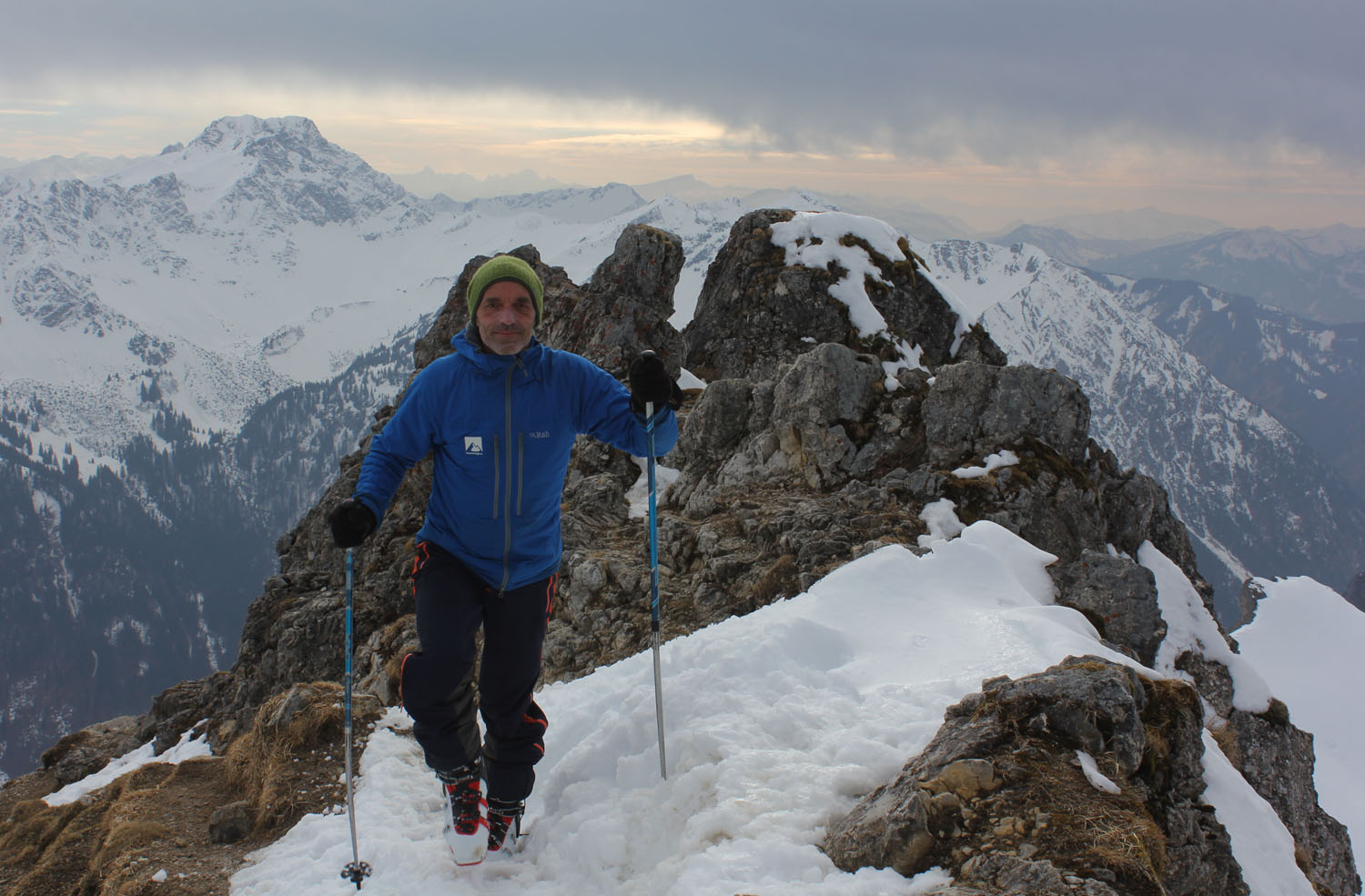 Tourenverhältnisse: Die nordseitigen Touren im Tannheimer Tal haben noch Schnee. Insgesamt Verhältnisse heute besser als erwartet: Keine Tragestrecken, untere Latschenzone gut zu durchqueren gut gesetzte Unterlage und weiter oben endlich viel Schnee.