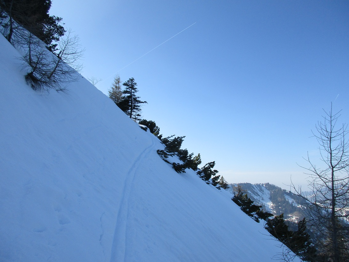 Gefahreneinschätzung: Einsamkeit !! / Aufstiegsspur teilweise hart ( u.U. Harscheisen ) / Abfahrt NW Flanke und Stopselzieher : ausrutschen nicht ratsam / Nordabfahrten wurden soweit ich es sehen konnte nocht nicht gemacht