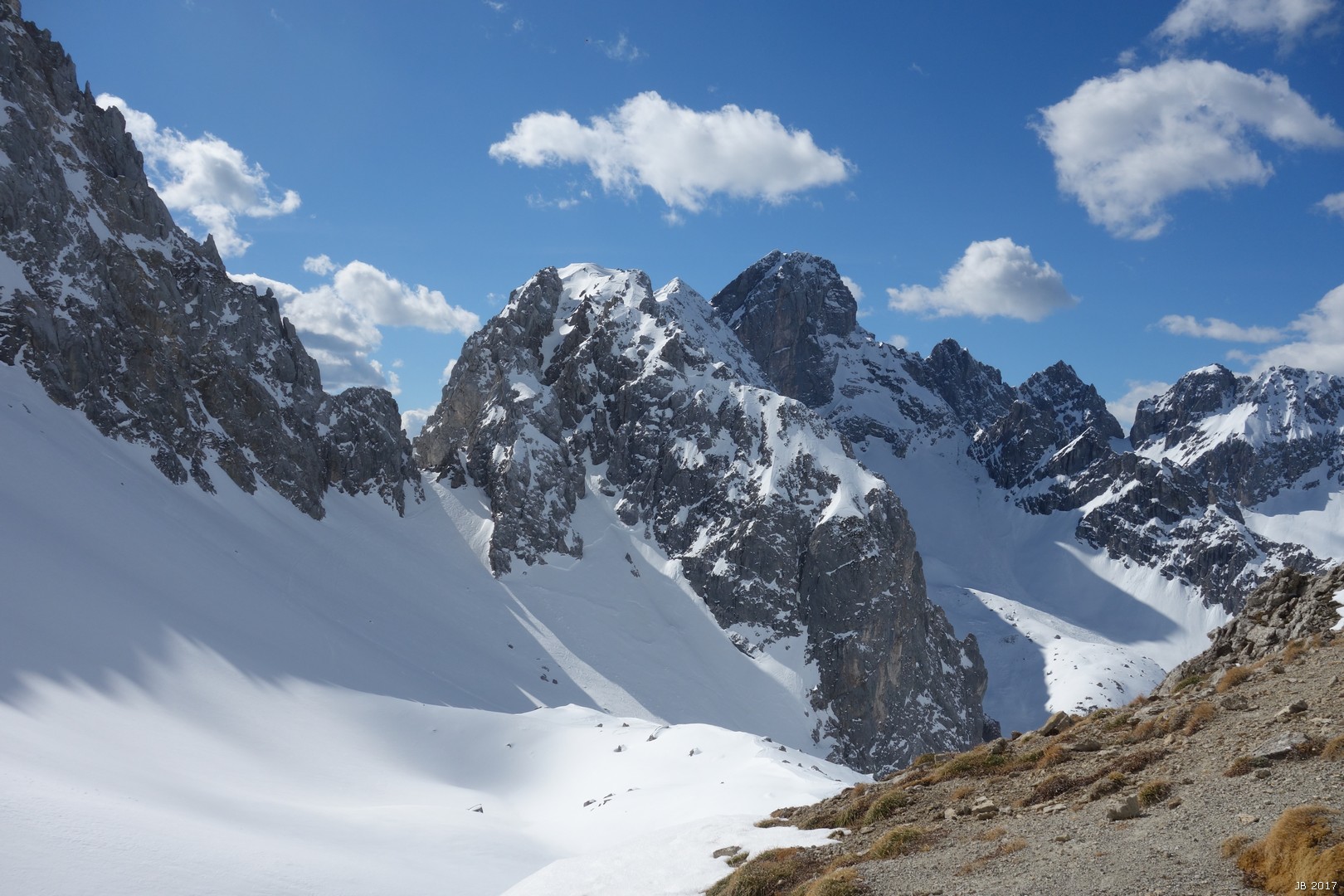 Tourenverhältnisse: sehr gut, meist Firn oder gut fahrbarer weicher Schnee auf den Nordseiten