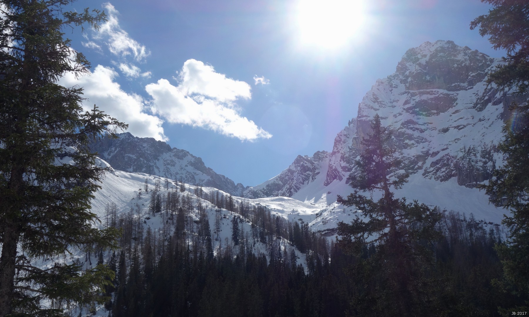 Mit den Liften für 14 € Tourengeher-Karte bis zum Marienbergjoch (1789m). Die Südhänge waren schon um 9:30 Uhr griffig bis zum Hölltörl (2125m).