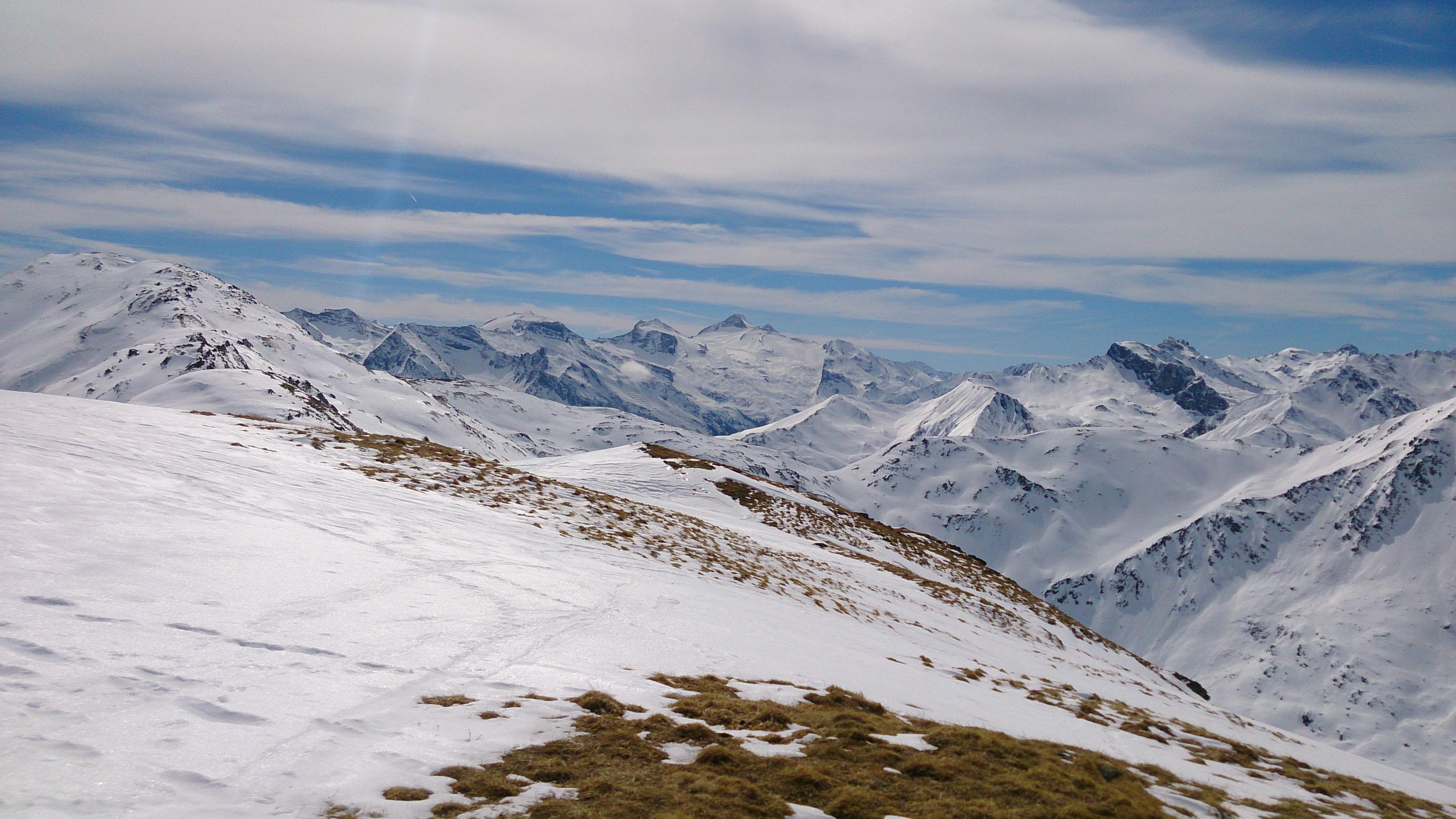 Blick vom Nafingköpfl zu Hohem Riffler, Gefrorne Wand-Spitzen & Olperer: