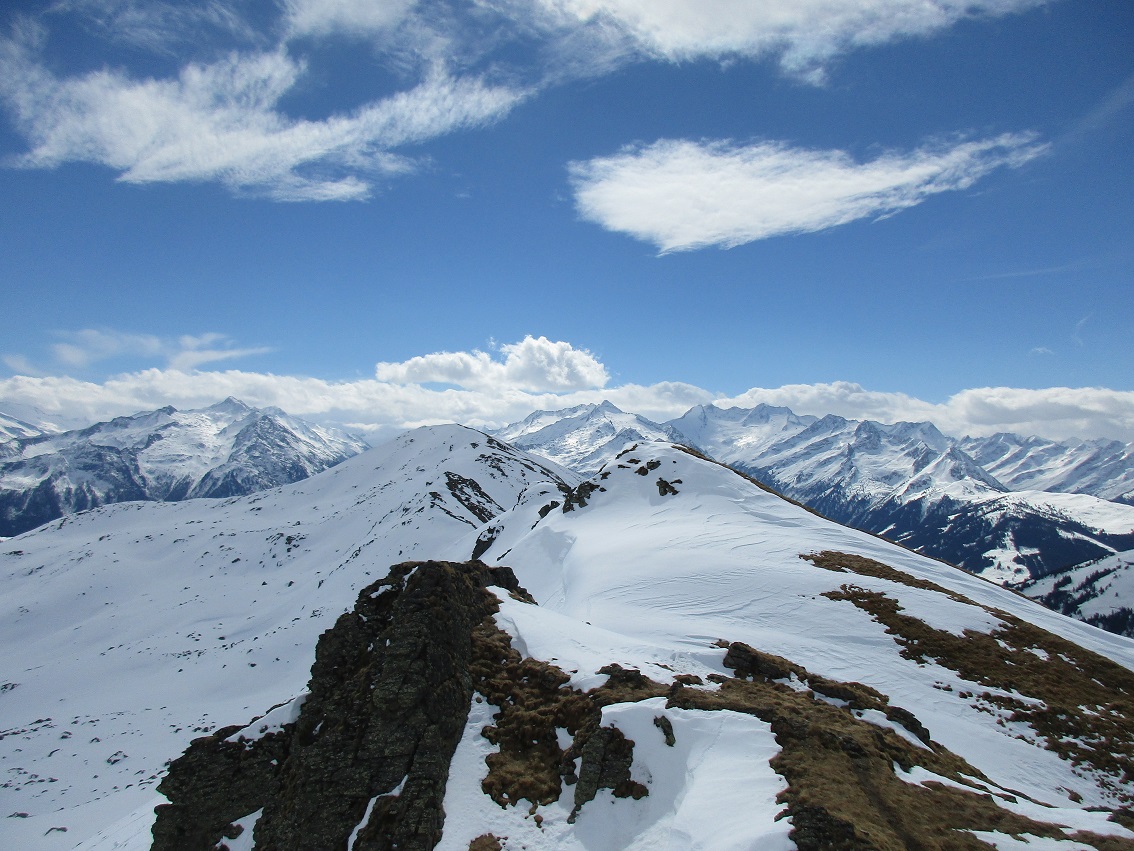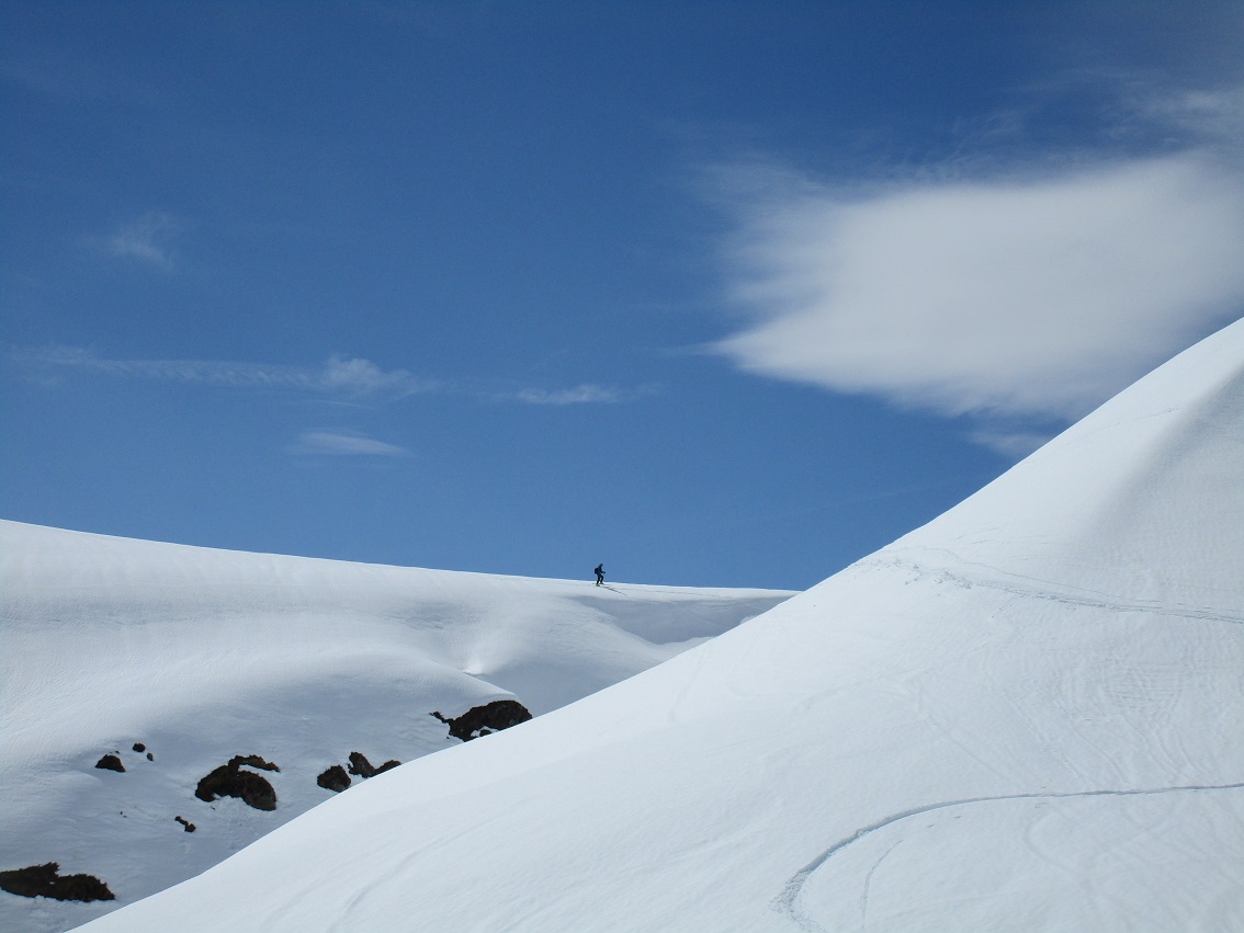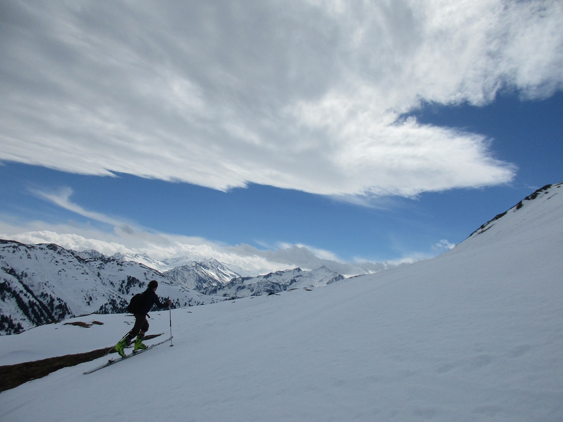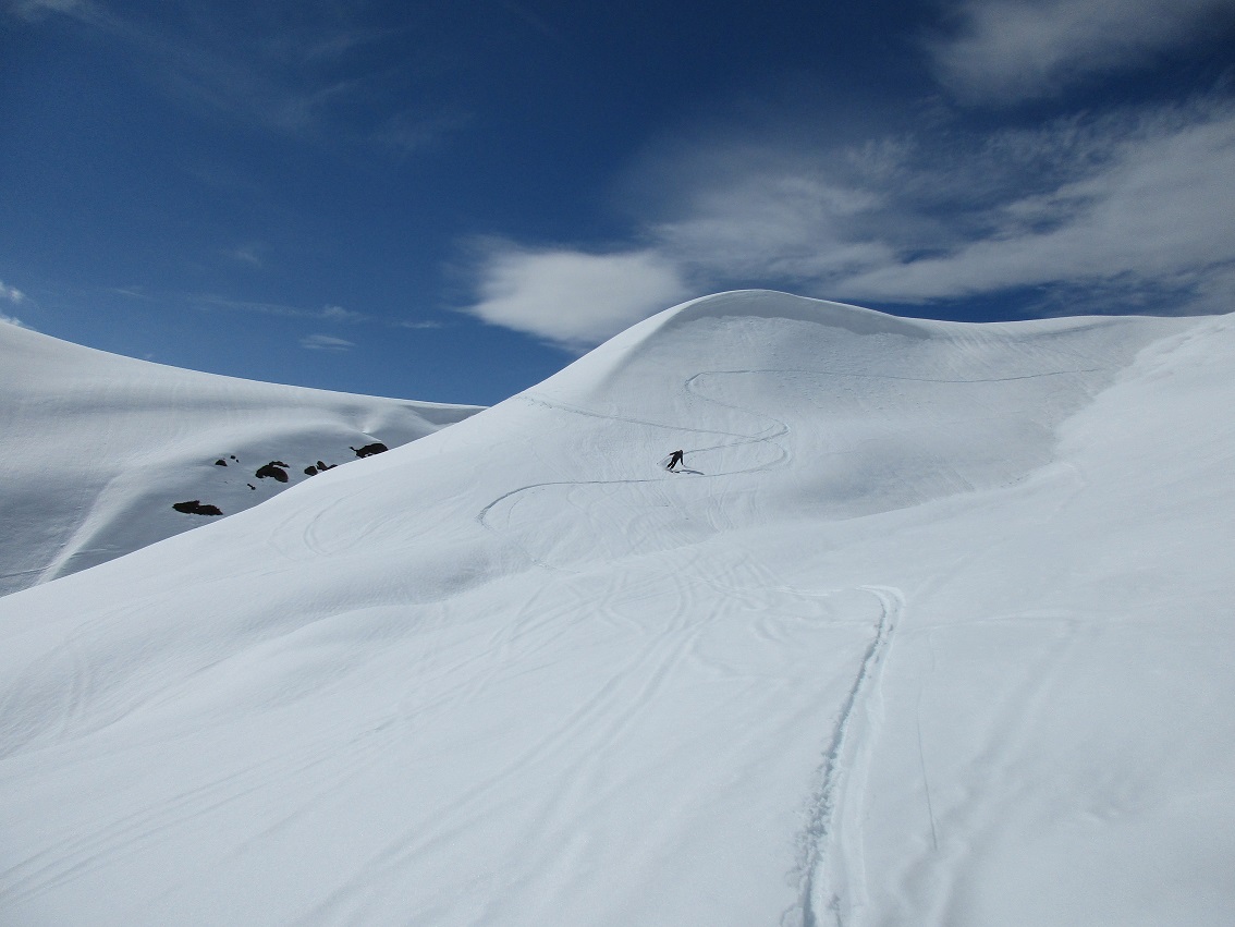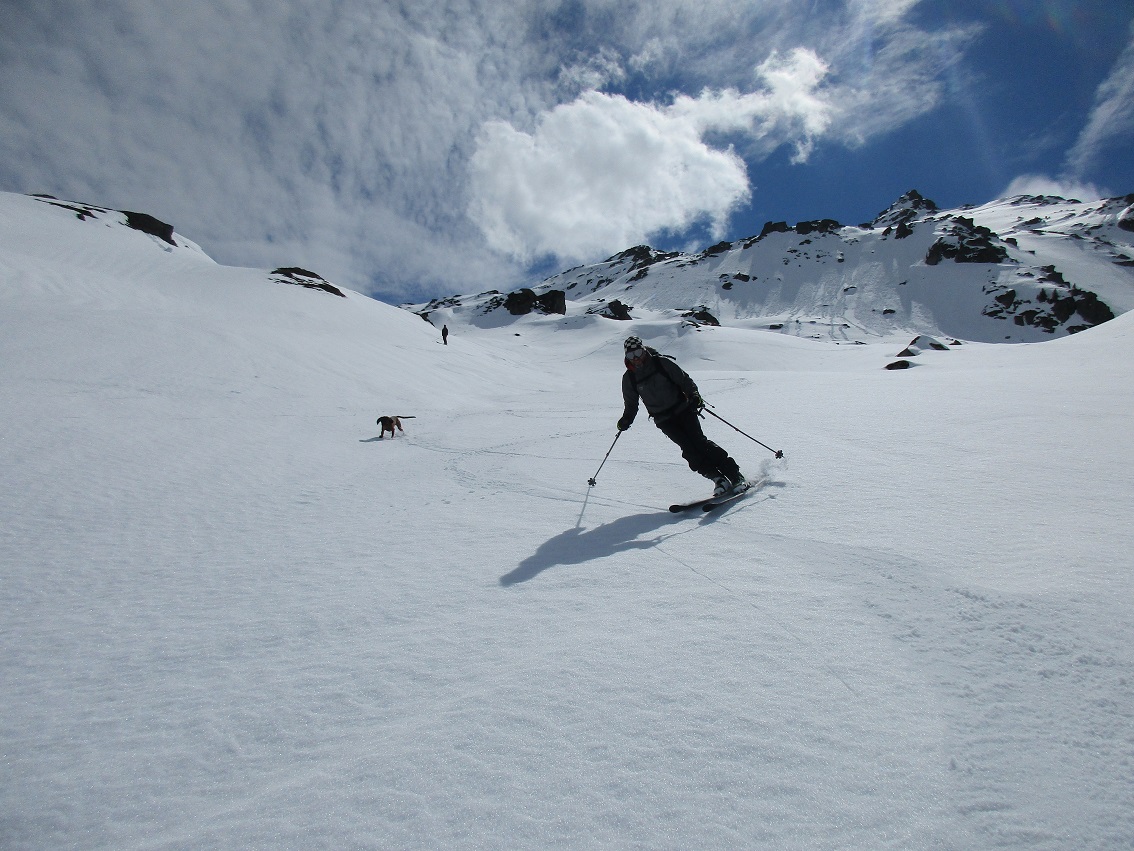 Tourenverhältnisse: Eigentlich ganz gut / unten werds scho langsam eng ( am Winterweg besser ) / droben noch genug Schnee / wegen Sonne ist der Tristkopf dort droben wohl die beste Wahl / Osthänge früh sulzig / am Tristkopf fest + hart / schöne Abfahrt / wegen unlohnender Hüttenabfahrt ... nochmaliger Anstieg Richtung Schwebenkopf, von dort zügige Abfahrt zur Hütte